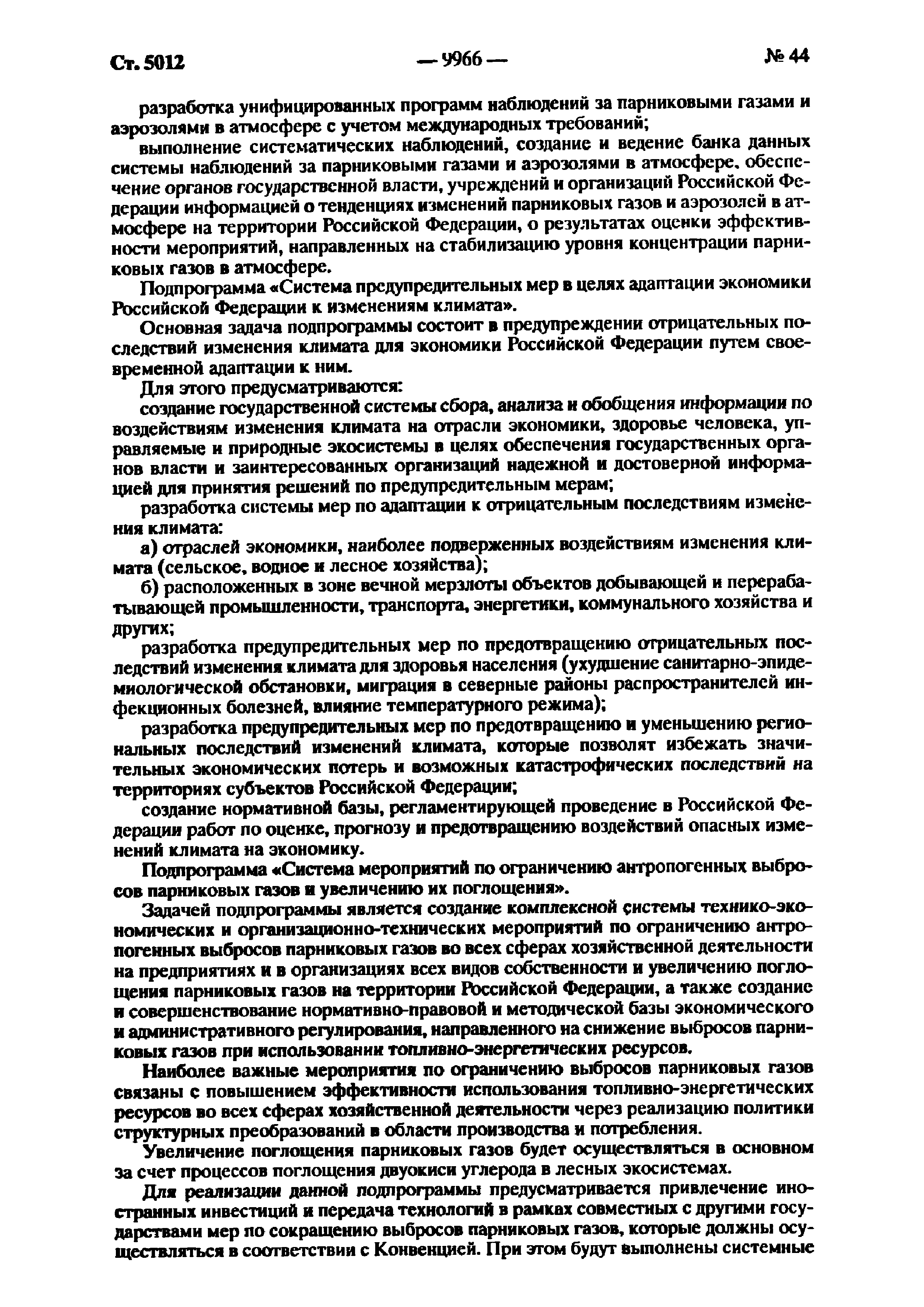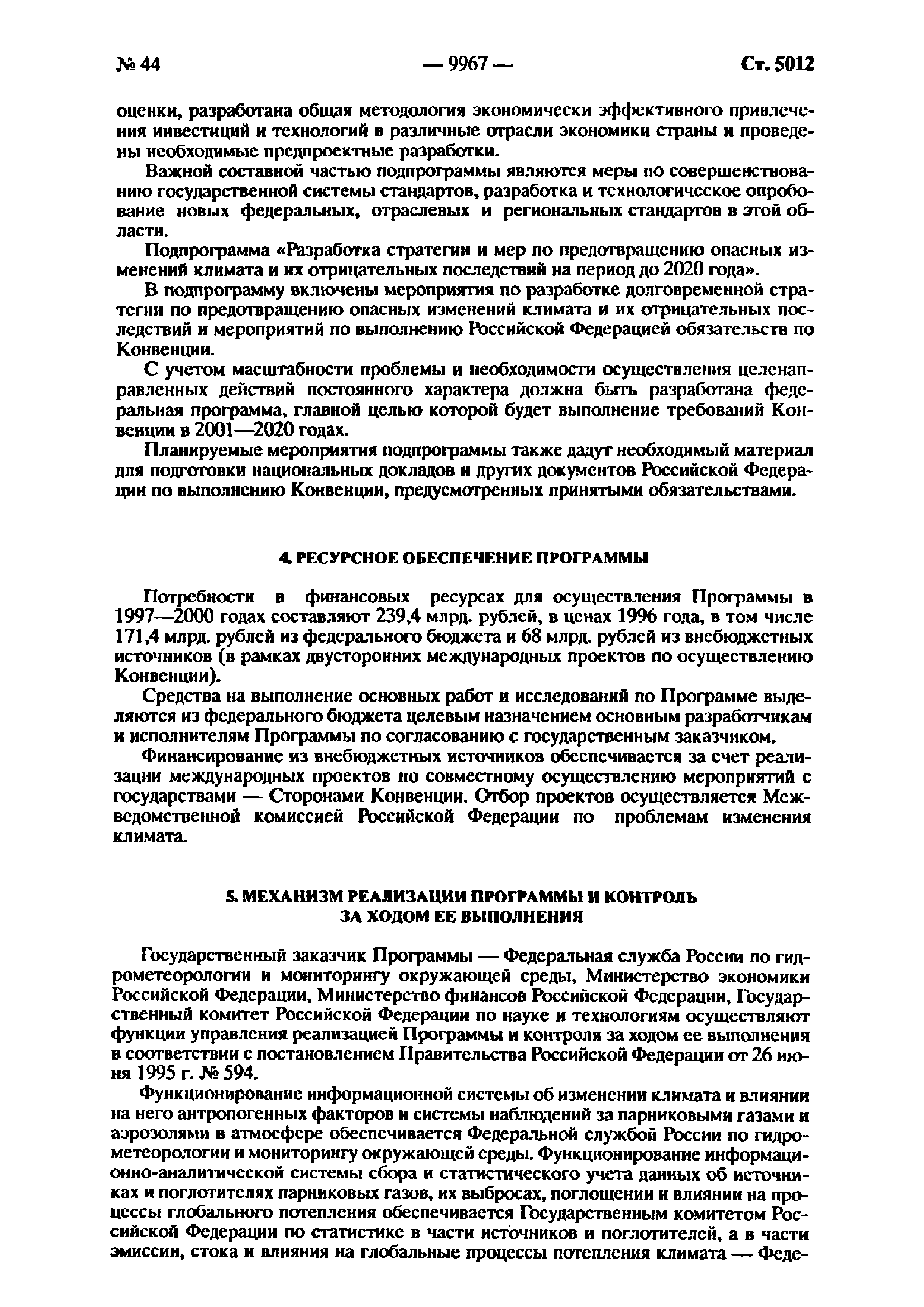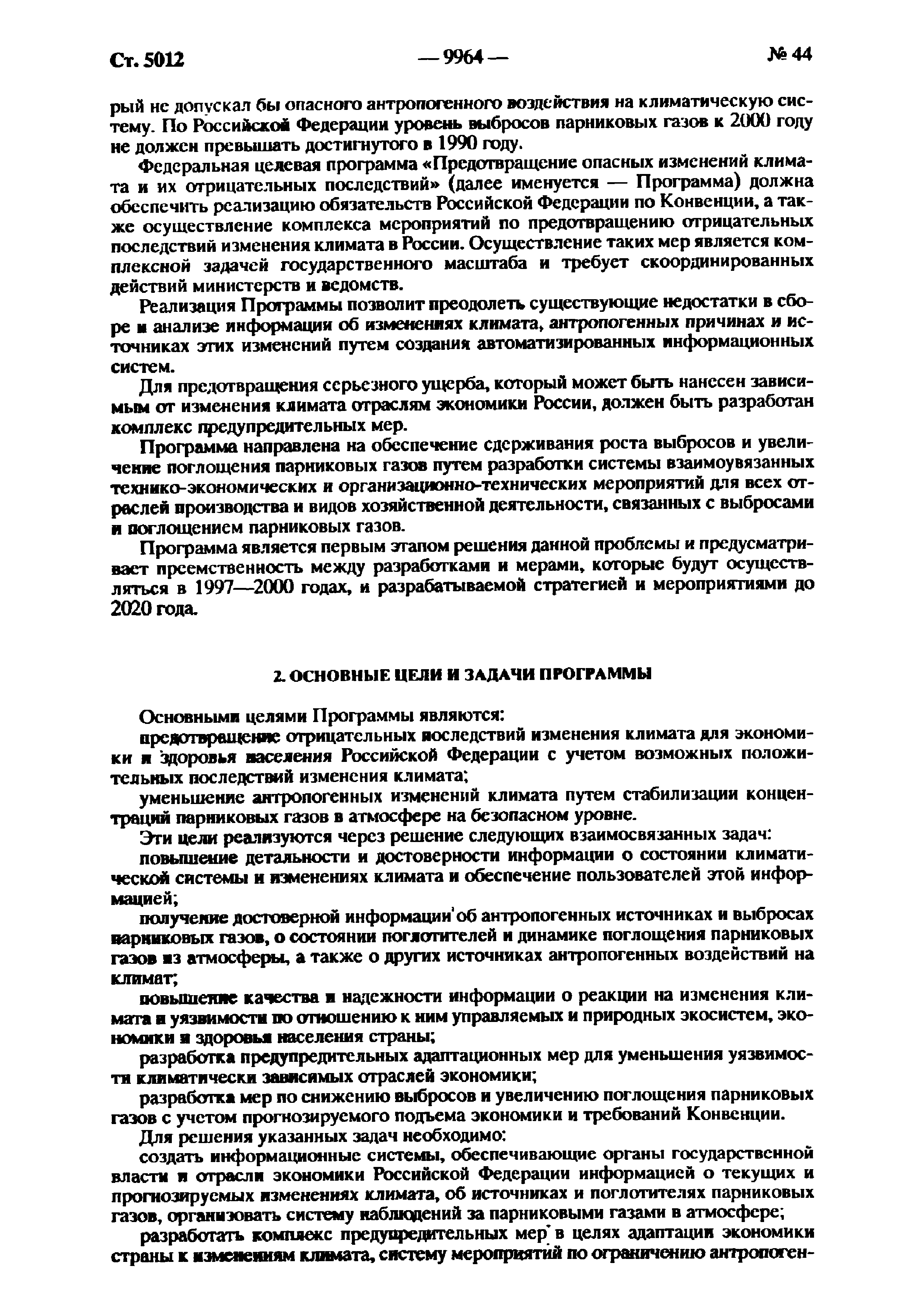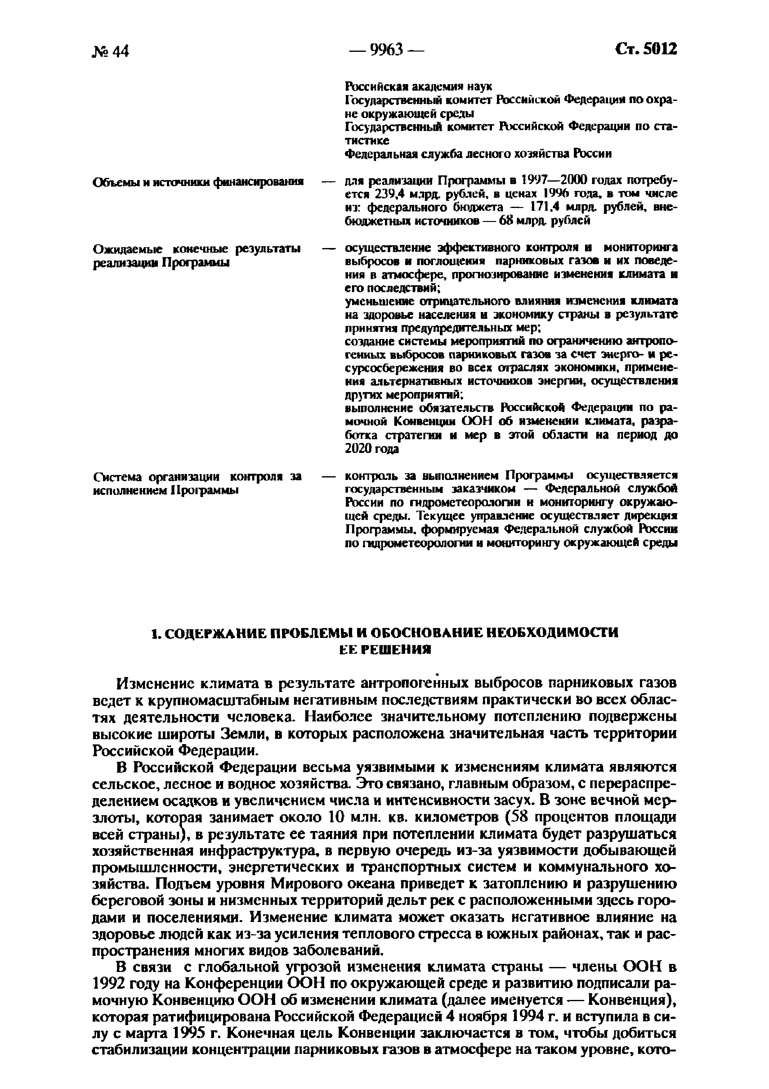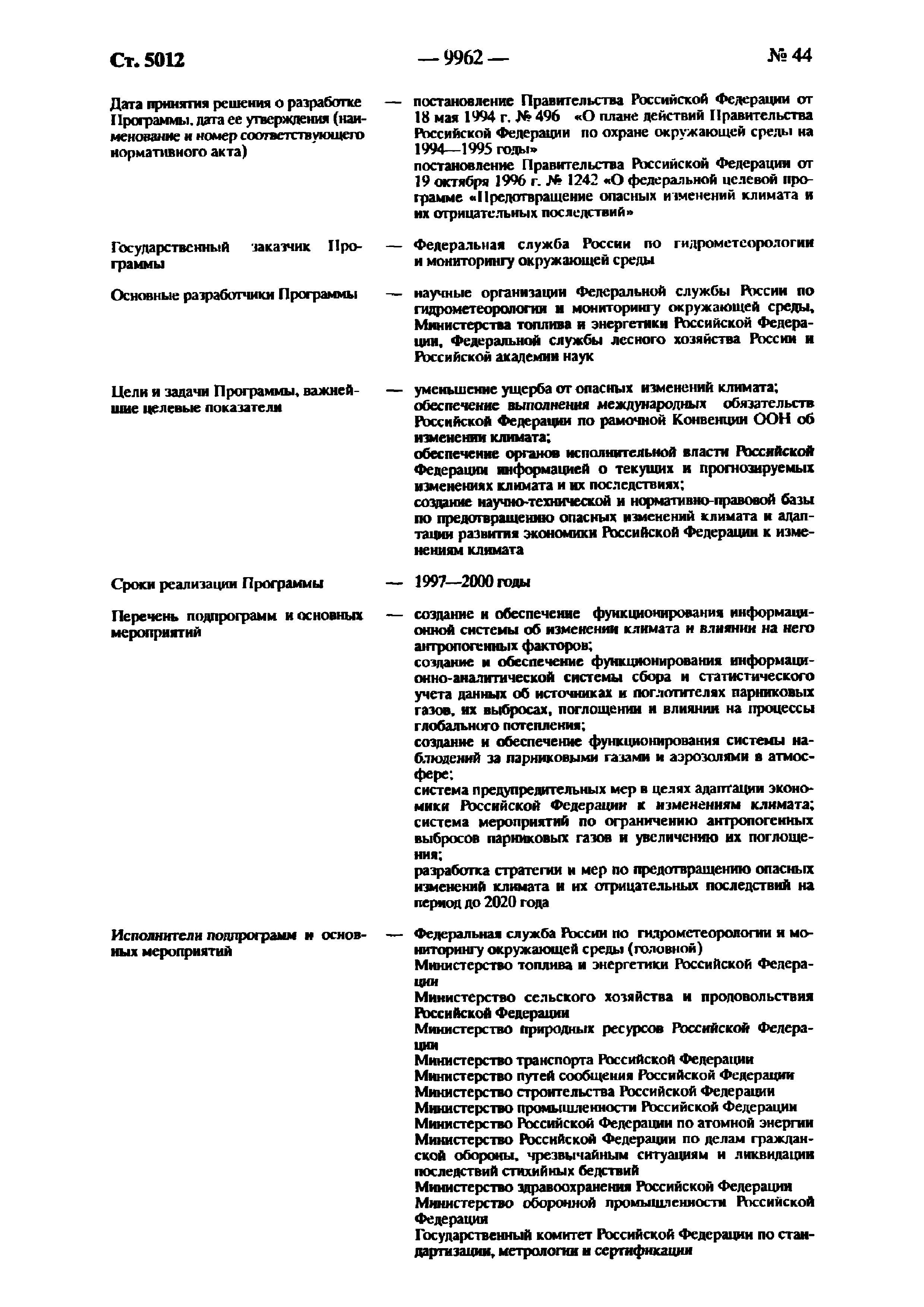 | Оглавление: | Паспорт Федеральной целевой программы 1. Содержание проблемы и обоснование необходимости ее решения 2. Основные цели и задачи Программы 3. Система программных мероприятий 4. Ресурсное обеспечение Программы 5. Механизм реализации Программы и контроль за ходом ее выполнения 6. Оценка эффективности Программы, социально-экономических и экологических последствий ее реализации Приложение. Мероприятия Федеральной целевой программы "Предотвращение опасных изменений климата и их отрицательных последствий" |