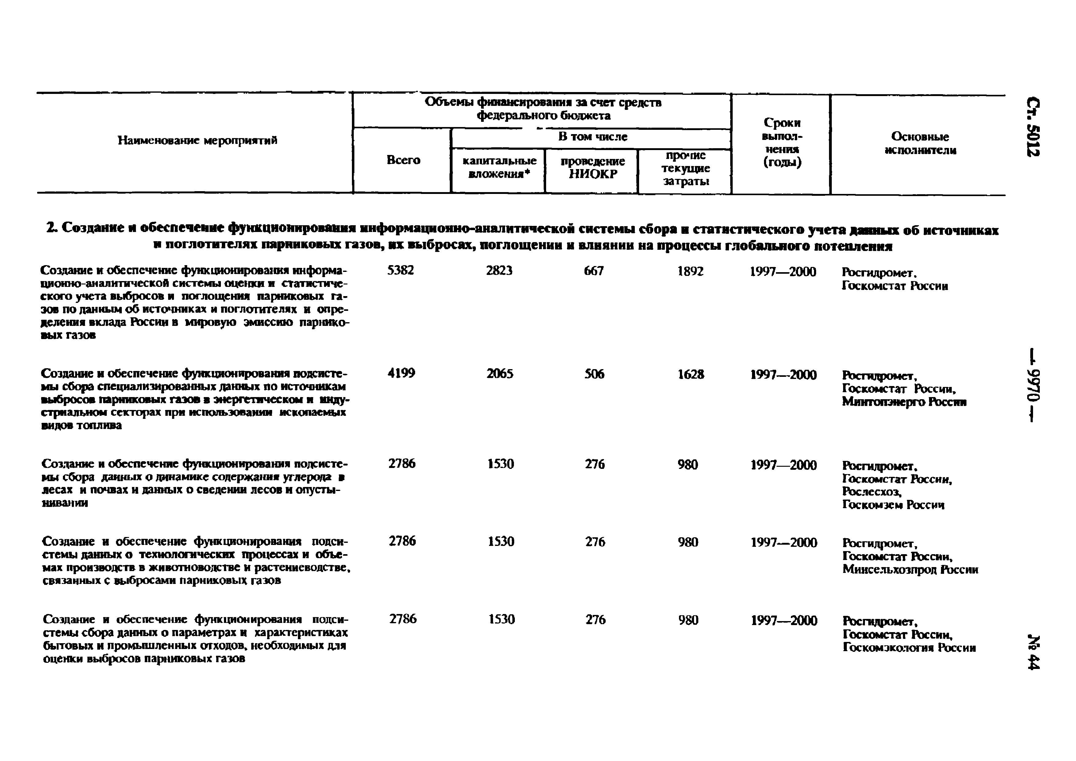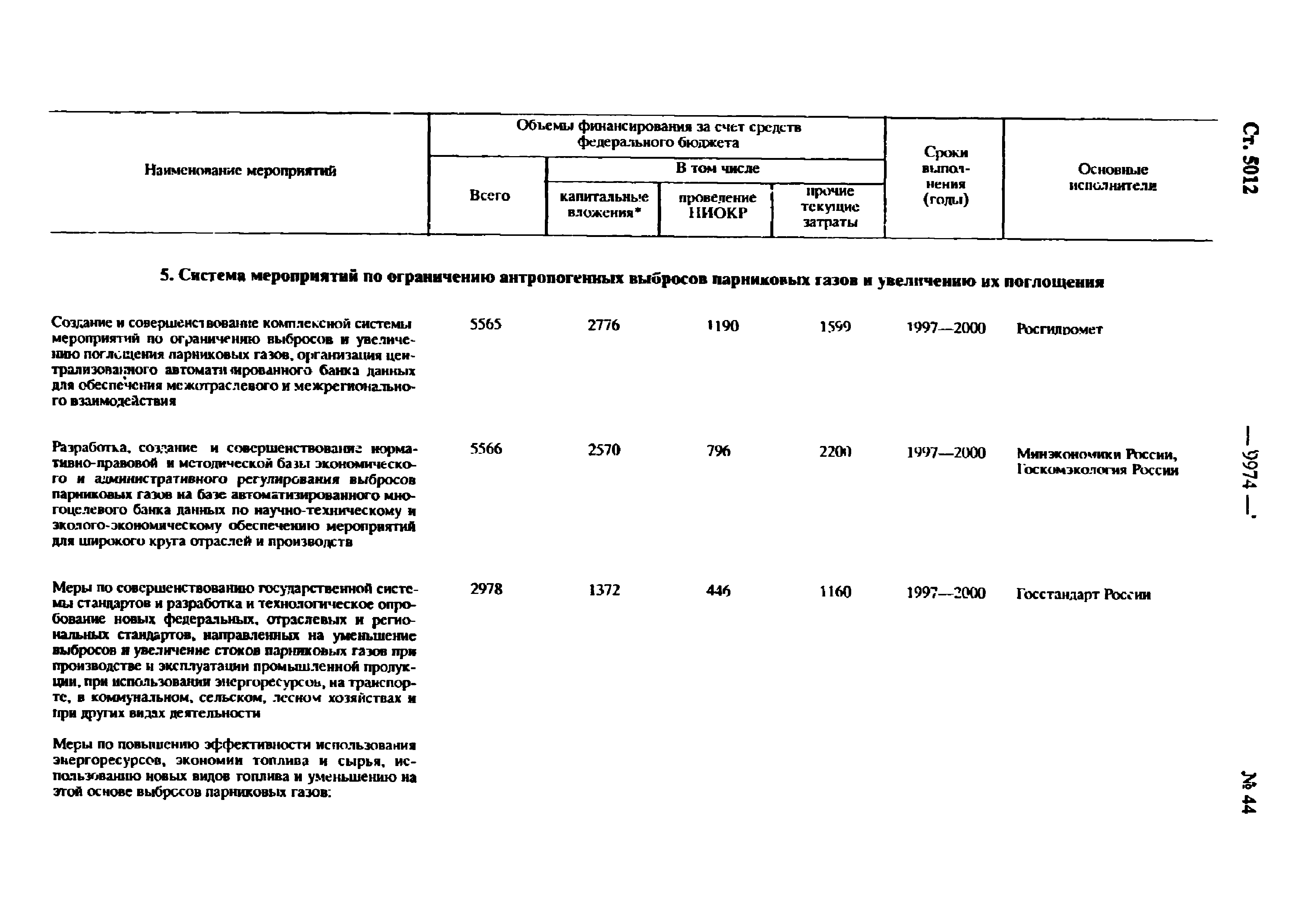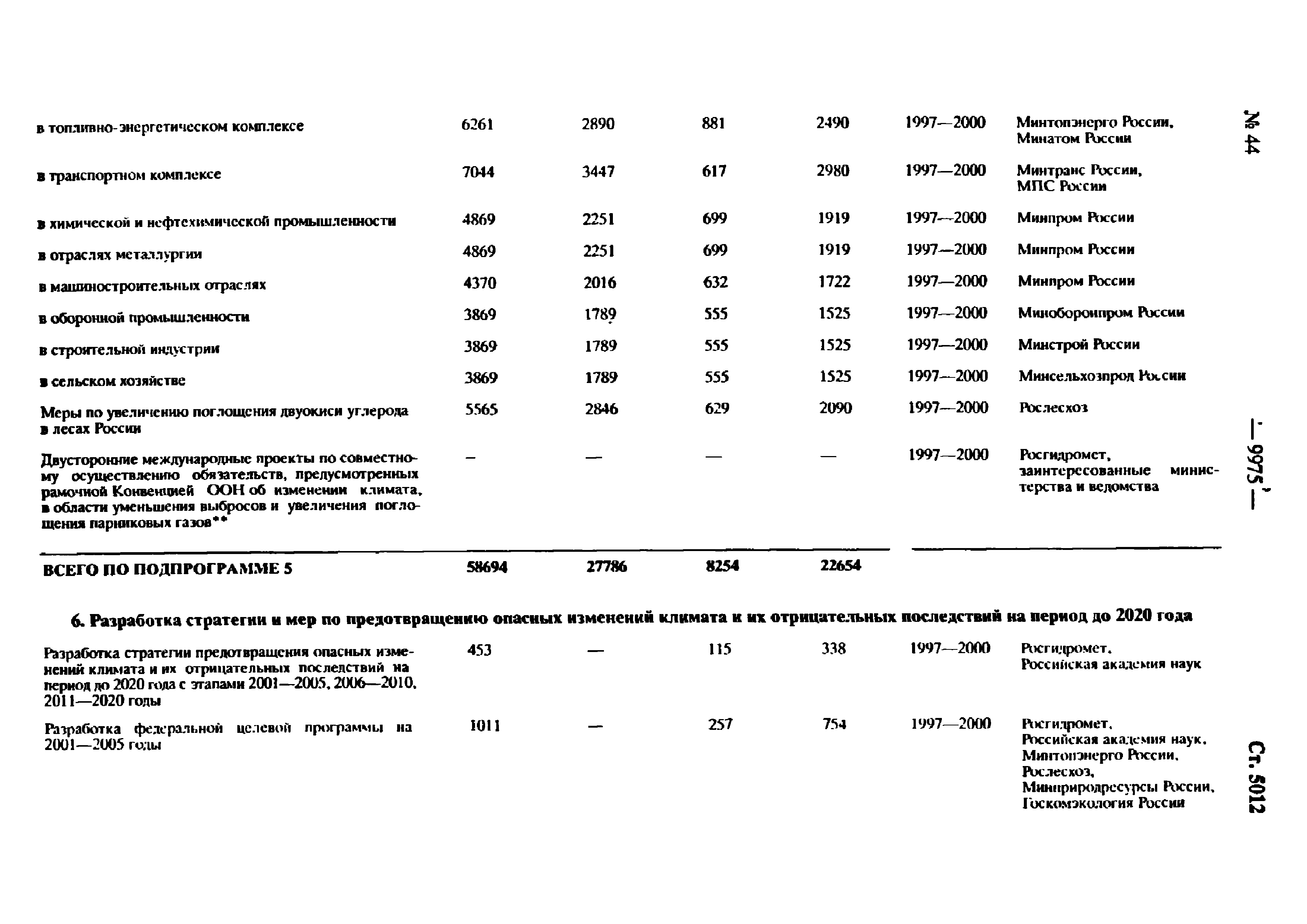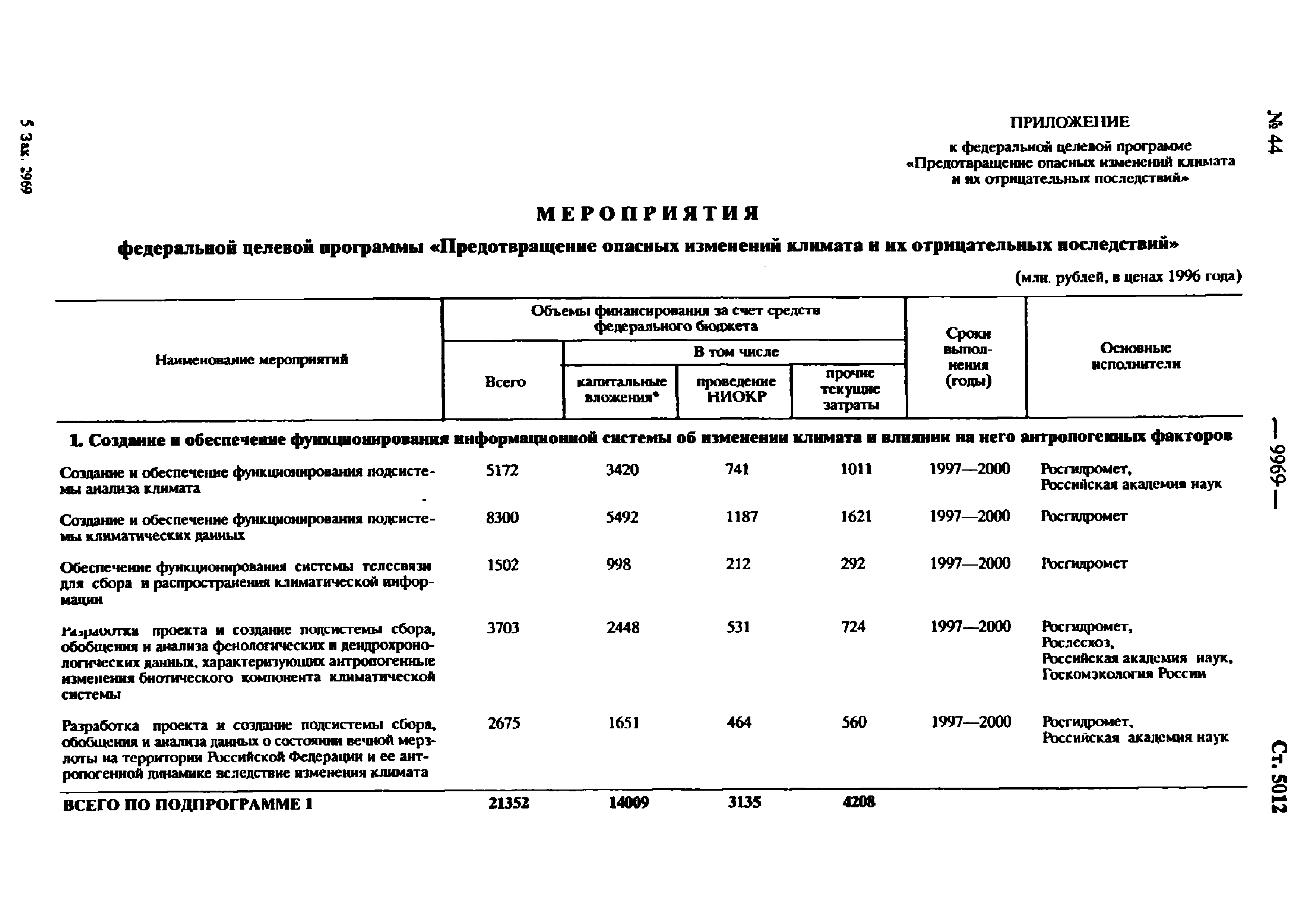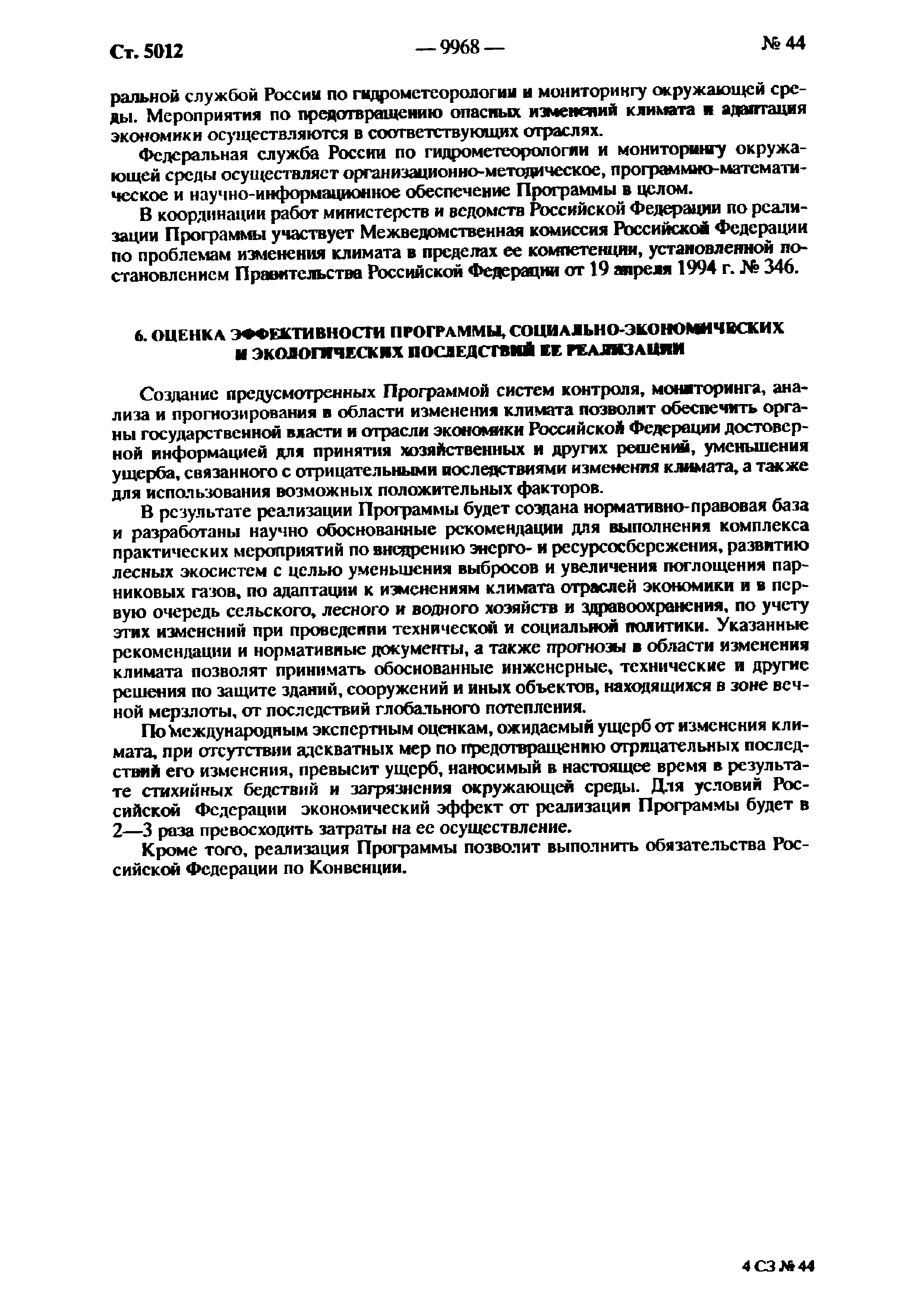 | Оглавление: | Паспорт Федеральной целевой программы 1. Содержание проблемы и обоснование необходимости ее решения 2. Основные цели и задачи Программы 3. Система программных мероприятий 4. Ресурсное обеспечение Программы 5. Механизм реализации Программы и контроль за ходом ее выполнения 6. Оценка эффективности Программы, социально-экономических и экологических последствий ее реализации Приложение. Мероприятия Федеральной целевой программы "Предотвращение опасных изменений климата и их отрицательных последствий" |