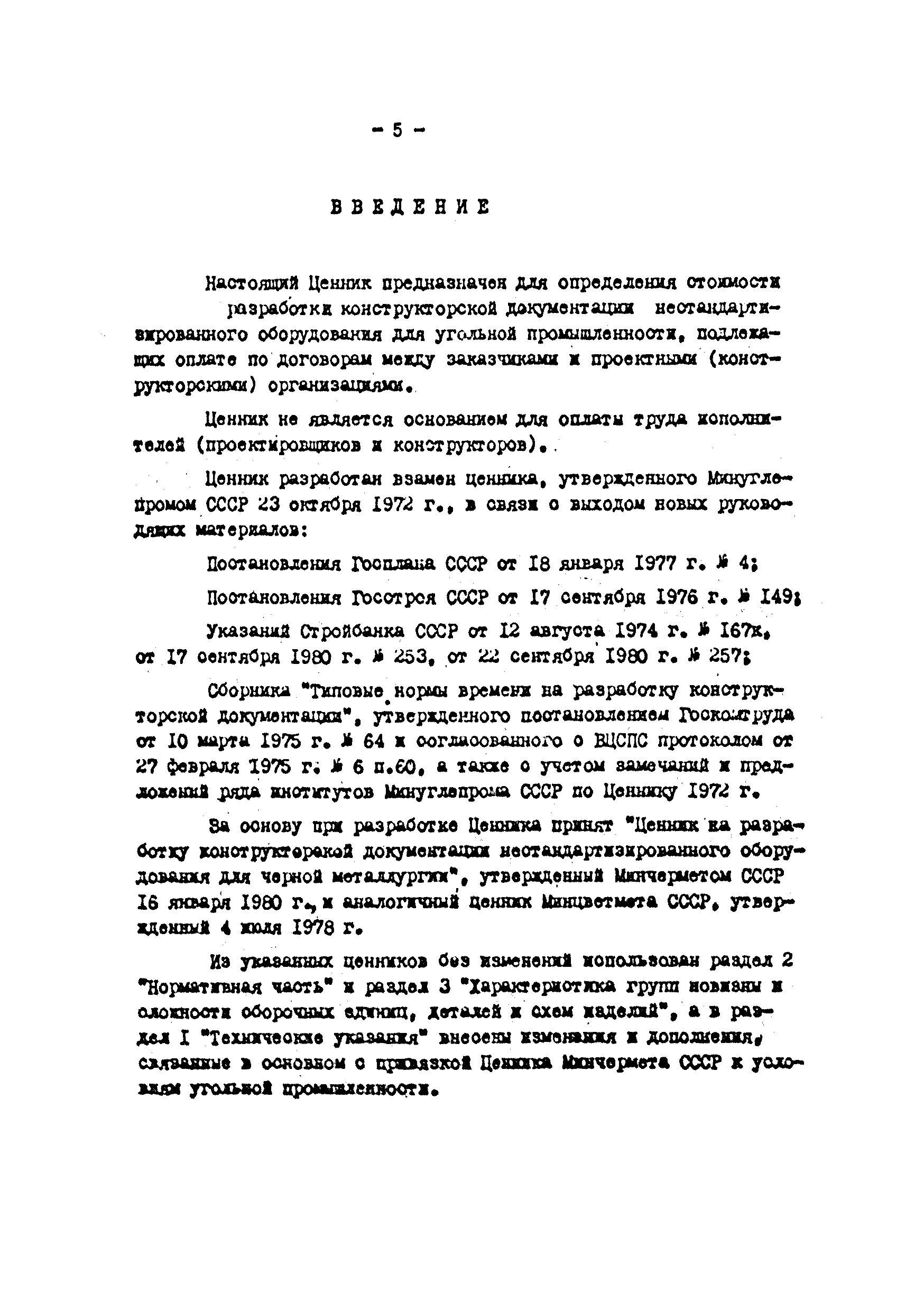 | Область применения: | Ценник предназначен для определения стоимости разработки конструкторской документации нестандартизированного оборудования для угольной промышленности, подлежащих оплате по договорам между заказчиками и проектными (конструкторскими) организациями |