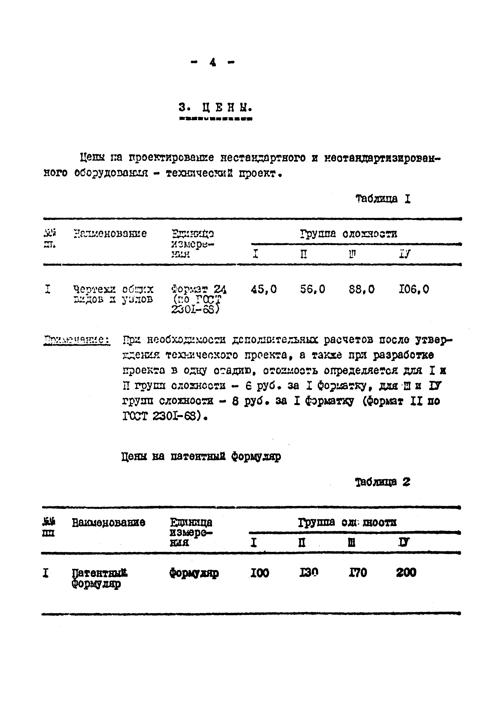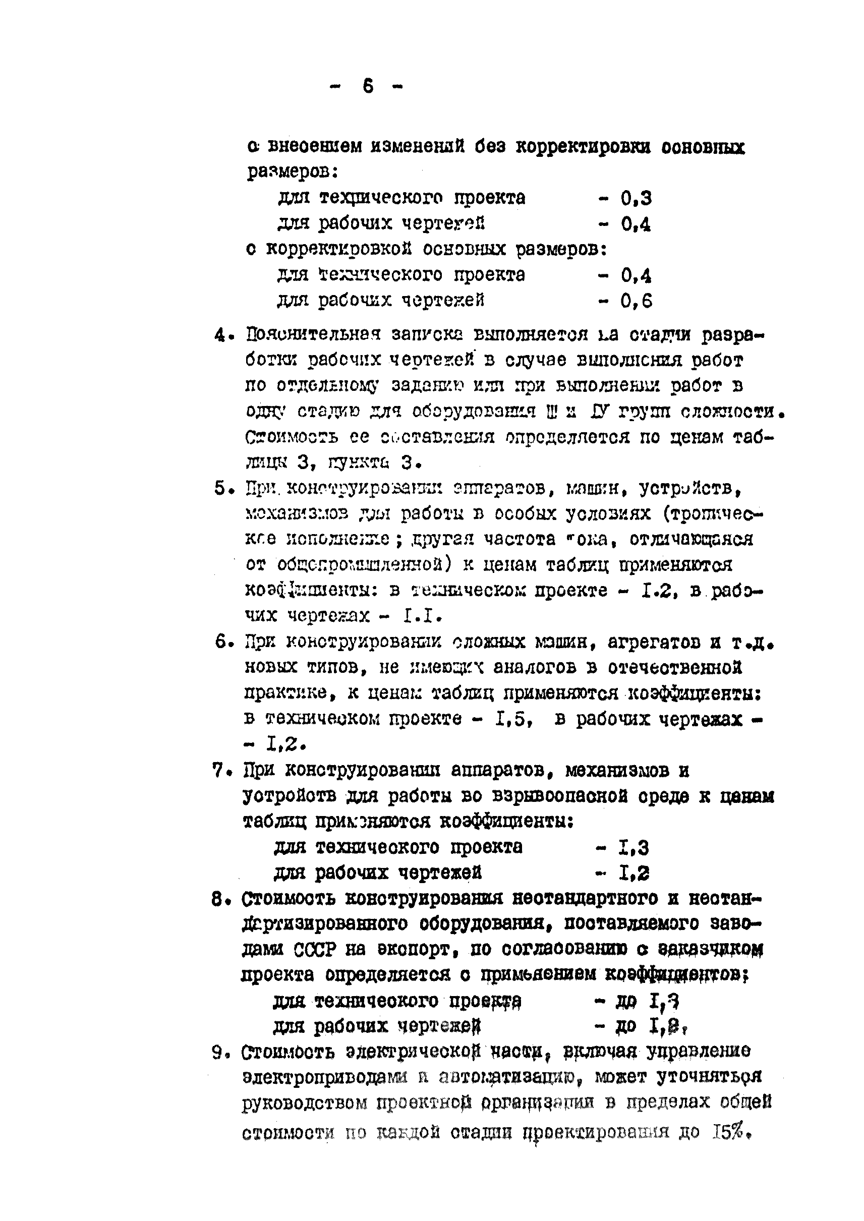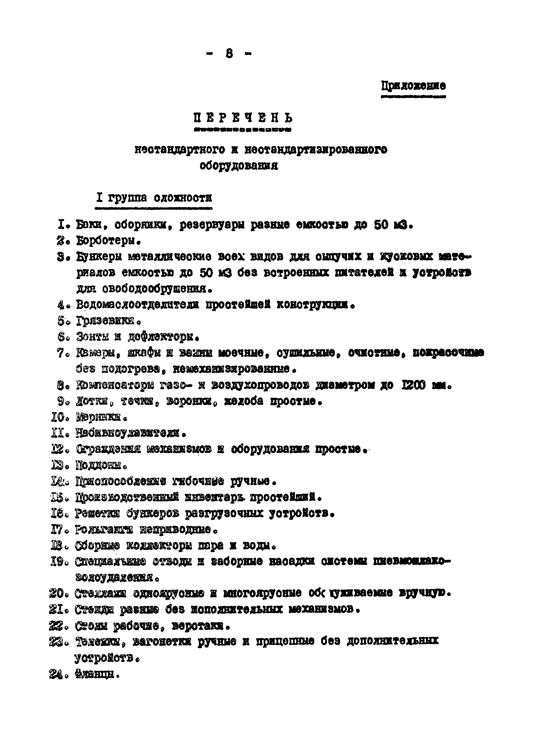 Ценник на проекты нестандартного и нестандартизированного оборудования, разрабатываемые проектными организациями, подведомственными Главпромстройпроекту Госстроя СССР| Статус: | не действует | | Название рус.: | Ценник на проекты нестандартного и нестандартизированного оборудования, разрабатываемые проектными организациями, подведомственными Главпромстройпроекту Госстроя СССР | | Дата добавления в базу: | 05.05.2017 | | Дата актуализации: | 01.01.2021 | | Область применения: | В ценнике приведены цены на разработку проектов нестандартного и нестандартизированного оборудования для строящихся и реконструируемых предприятий, зданий и сооружений за счет средств капитального строительства. | | Оглавление: | 1 Технические условия 2 Характеристика групп сложности 3 Цены Приложение. Перечень нестандартного и нестандартизированного оборудования | | Разработан: | Главпромстройпроект