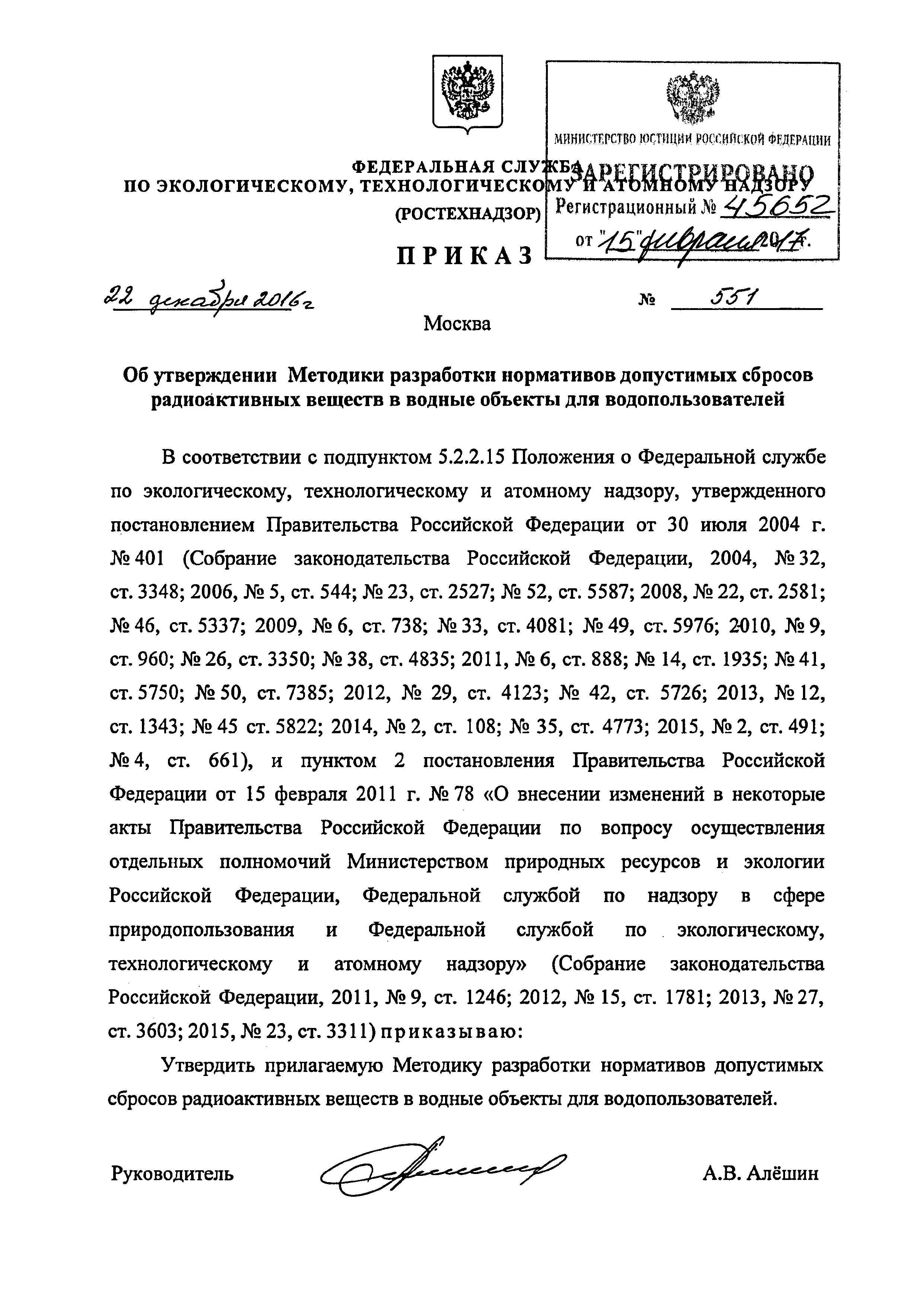 | Утверждён: | 22.12.2016 Федеральная служба по экологическому, технологическому и атомному надзору (551) |