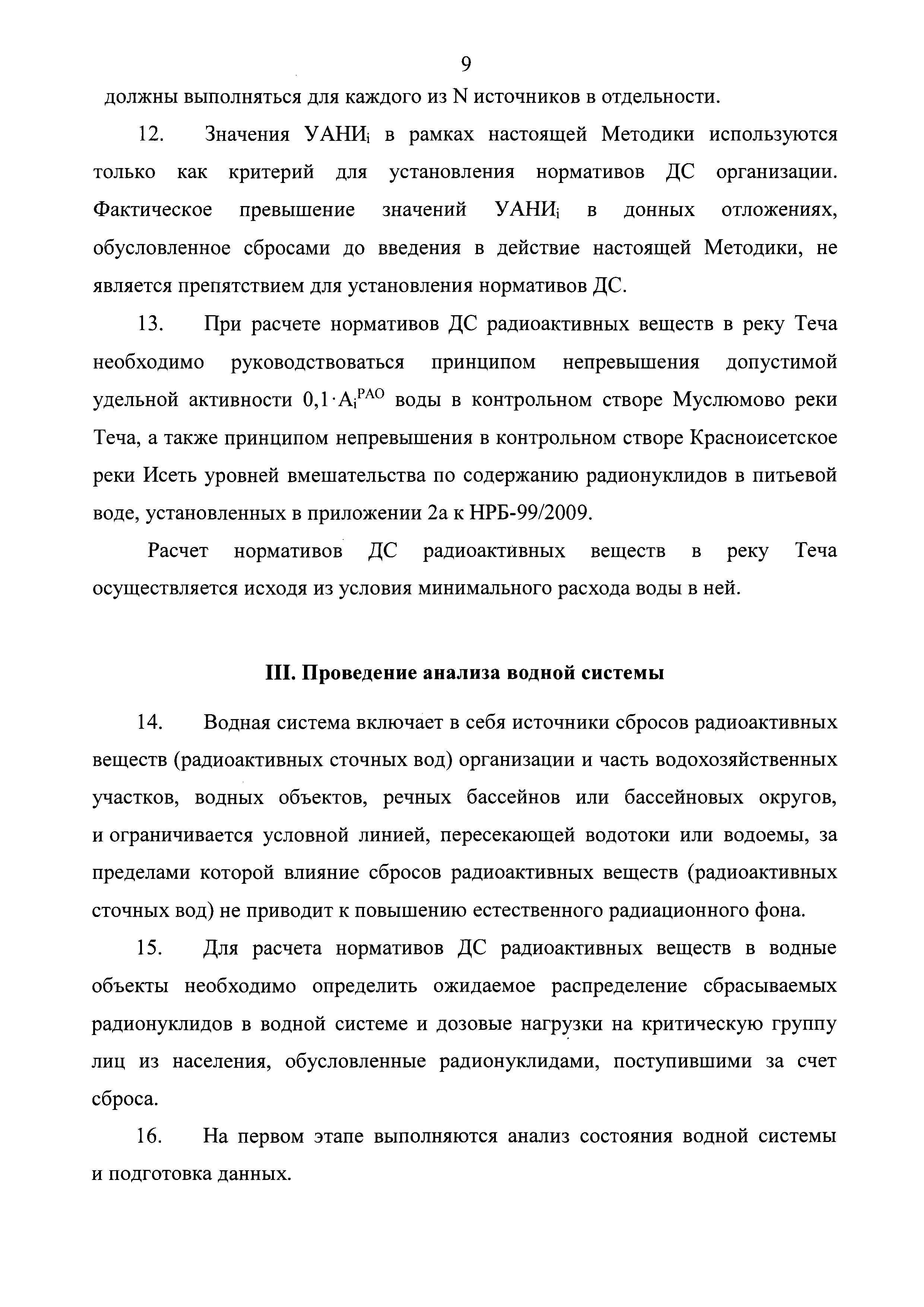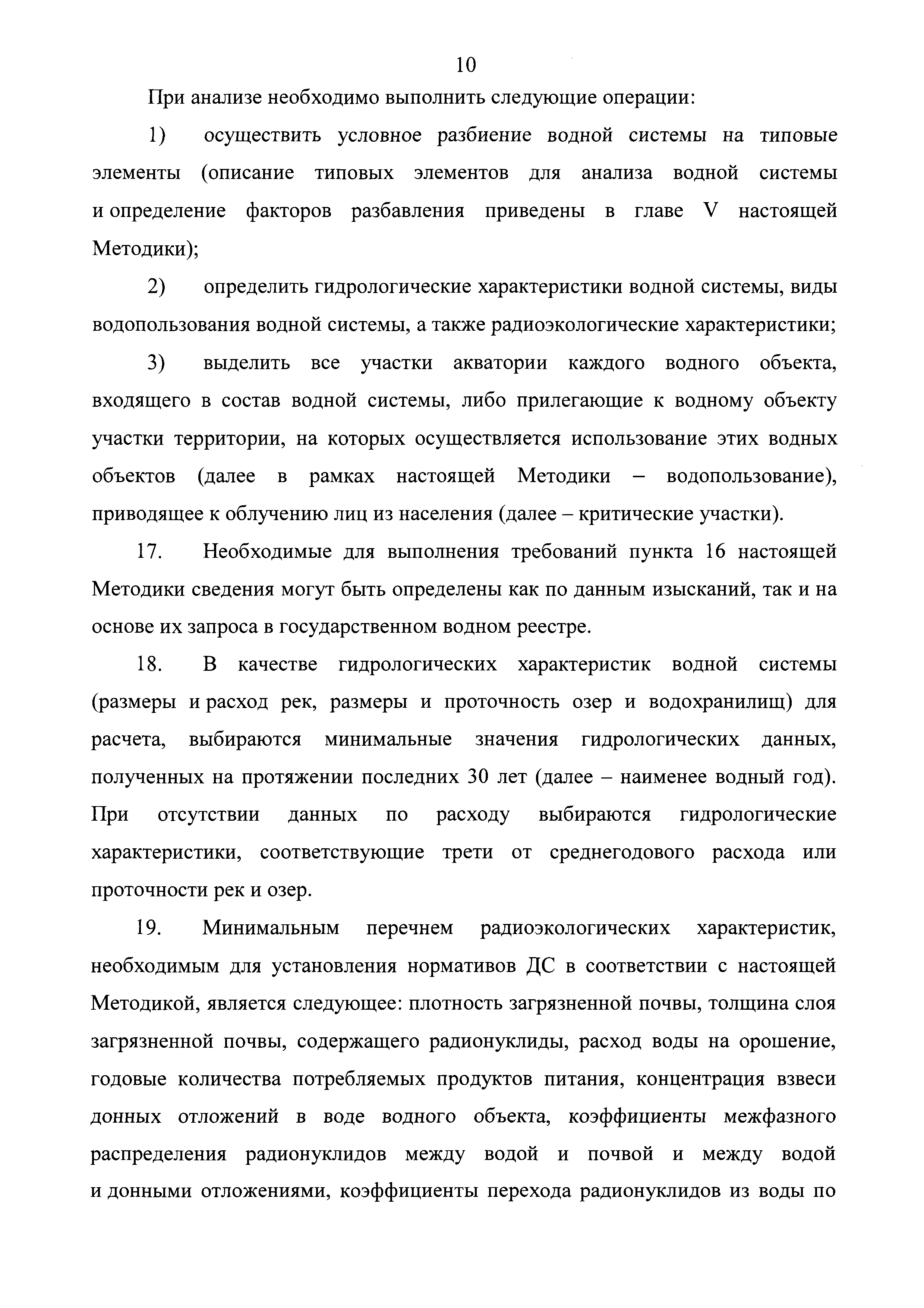 | Область применения: | Методика распространяется на организации, эксплуатирующие объекты, имеющие в своем составе стационарные источники сбросов радиоактивных веществ (источники сбросов радиоактивных сточных вод) в водные объекты, в том числе на эксплуатирующие организации, эксплуатирующие объекты хозяйственной и иной деятельности, не относящиеся к объектам использования атомной энергии и осуществляющие сбросы радиоактивных вещества (сбросы радиоактивных сточных вод) в водные объекты, за исключением организаций, деятельность которых не приводит к изменению объемной активности радиоактивных веществ (по сравнению с фоновой) и (или) внесению дополнительной (к фоновой) активности радиоактивных веществ при условии, что сброс осуществляется в тот же водный объект, из которого вода отобрана для ведения деятельности. |