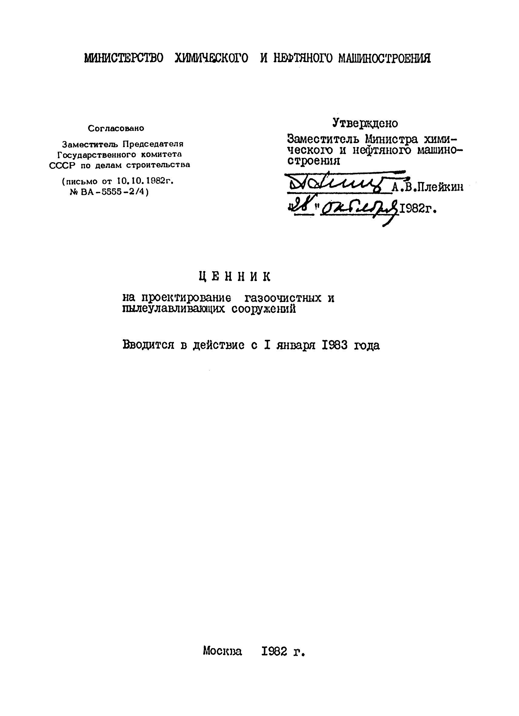 | Принят: | 10.10.1982 Заместитель Председателя Государственного комитета СССР по делам строительства (ВА-5555-2/4)