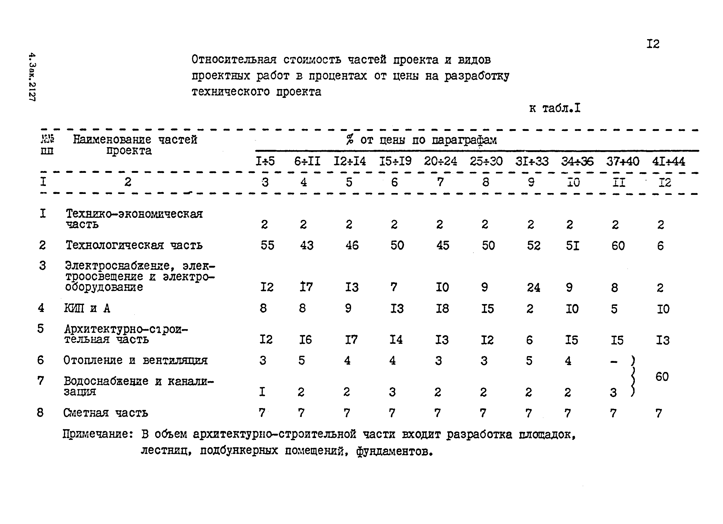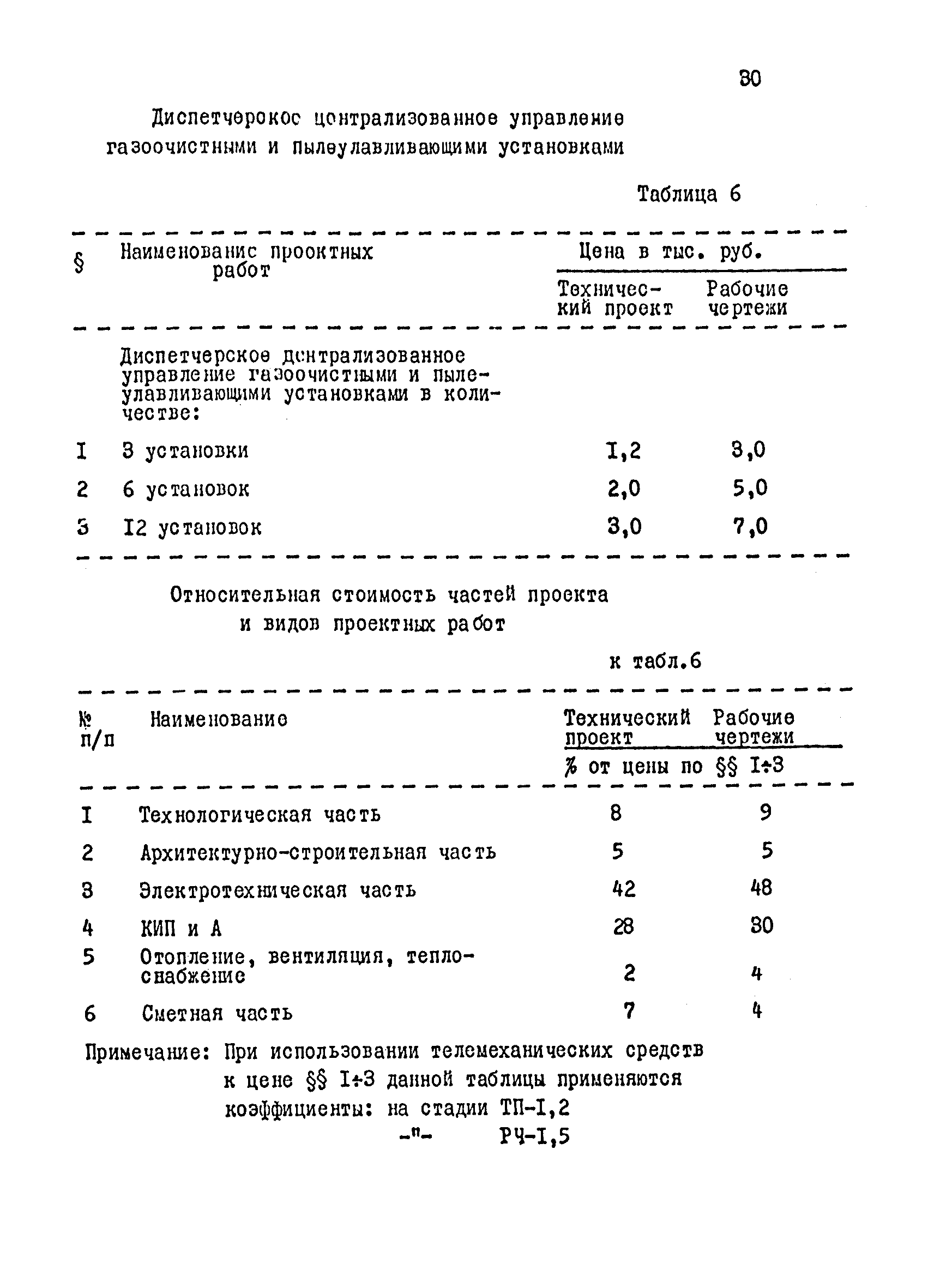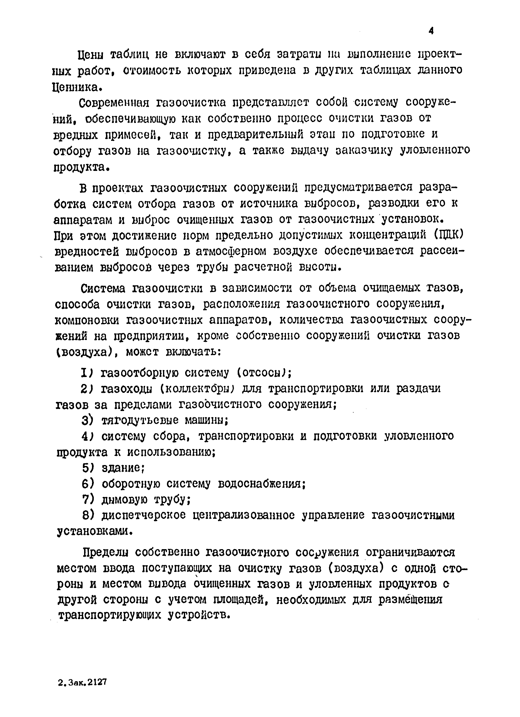 | Оглавление: | Введение Указания по применению цен Электрическая и механическая очистка газов Относительная стоимость частей проекта и видов проектных работ в процентах от цены на разработку технического проекта Относительная стоимость частей проекта и видов проектных работ в процентах от цены на разработку рабочих чертежей Химическая очистка газов Относительная стоимость частей проекта и видов проектных работ в процентах от цены на разработку технического проекта Относительная стоимость частей проекта и видов проектных работ в процентах от цены на разработку рабочих чертежей Система сбора, транспортировки и подготовки уловленного продукта к использованию Относительная стоимость частей проекта и видов проектных работ Газоходы (коллекторы) Относительная стоимость частей проекта и видов проектных работ Разработка чертежей металлоконструкций (КМ) - корпусов аппаратов Диспетчерское централизованное управление газоочистными и пылеулавливающими установками Относительная стоимость частей проекта и видов проектных работ |