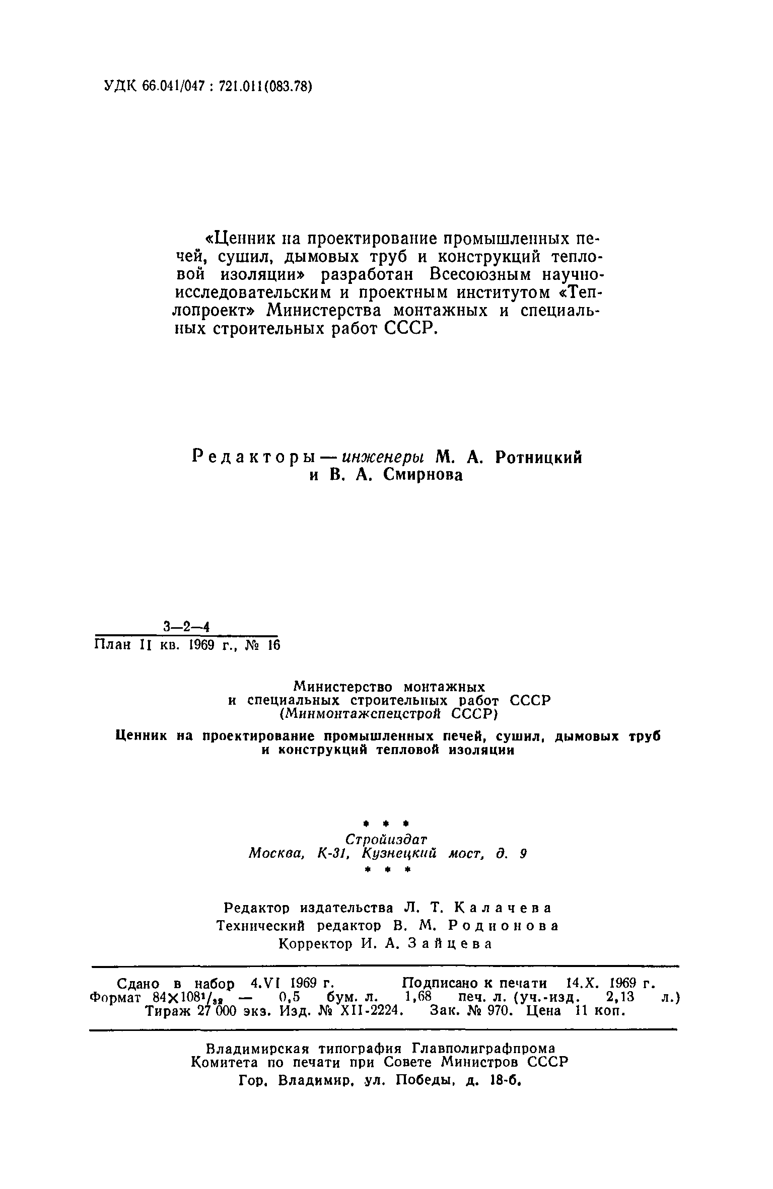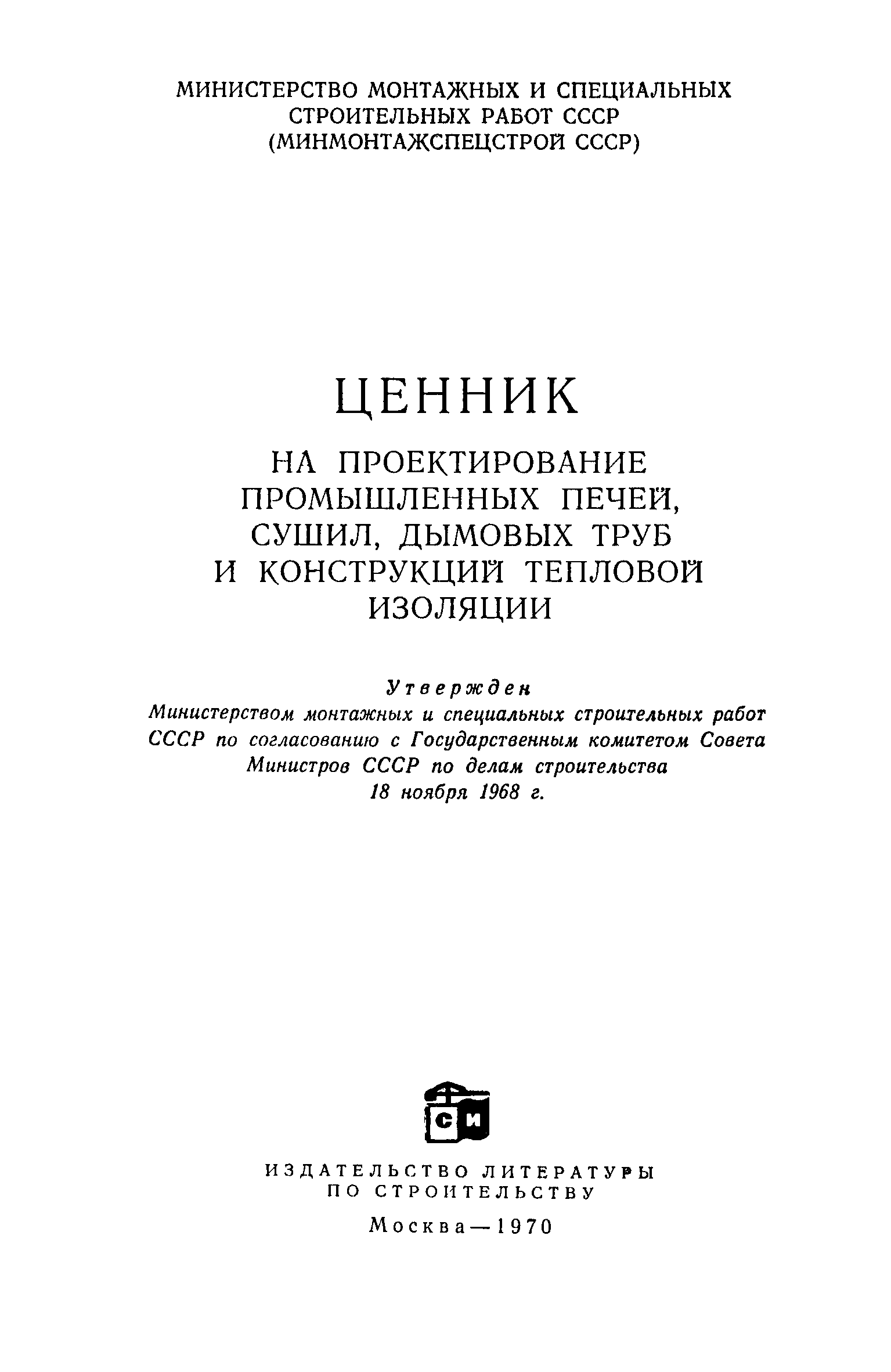 | | Утверждён: | 18.11.1968 Министерство монтажных и специальных строительных работ СССР (USSR Ministry of Industrial Installations and Military Construction )