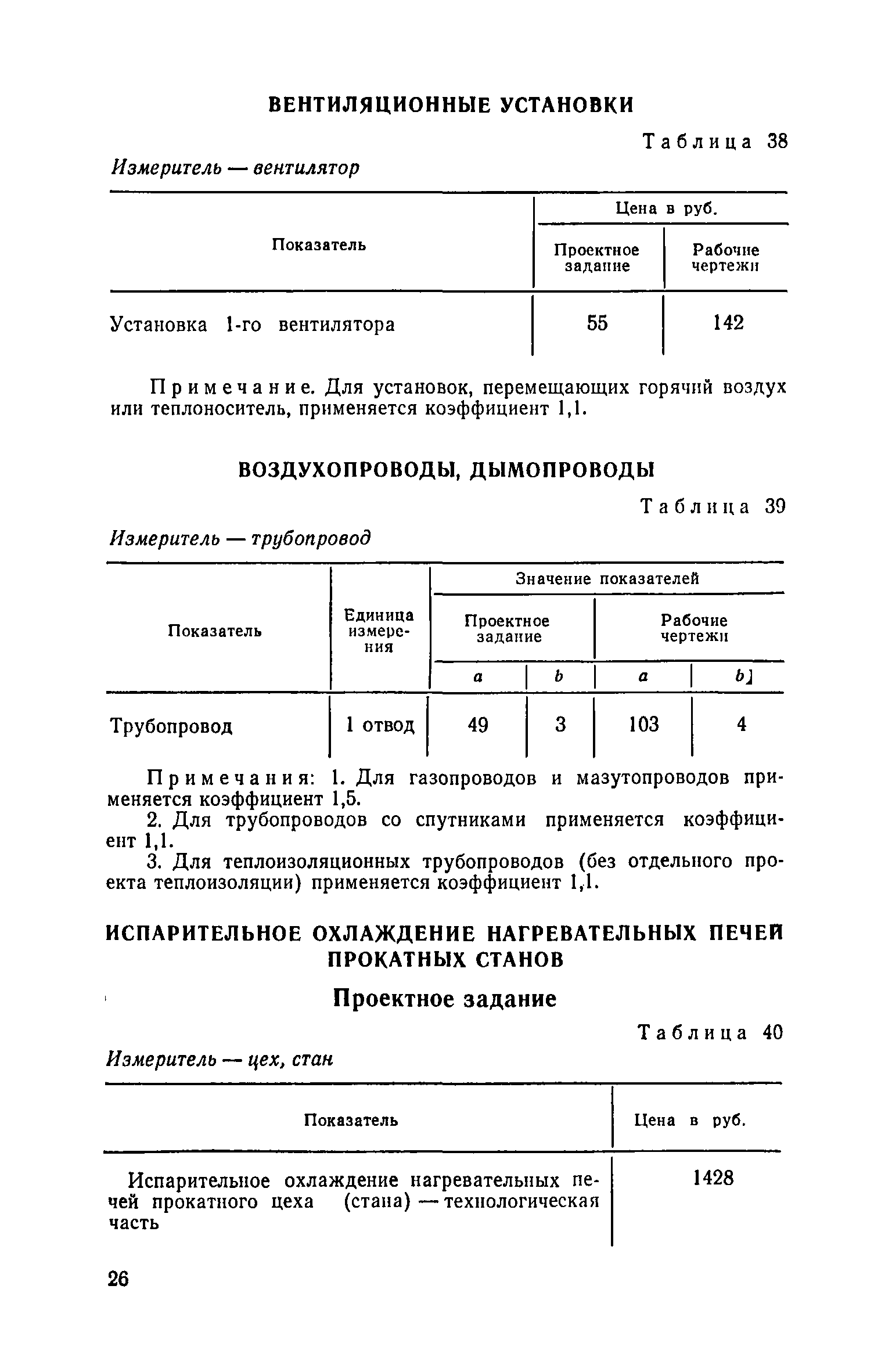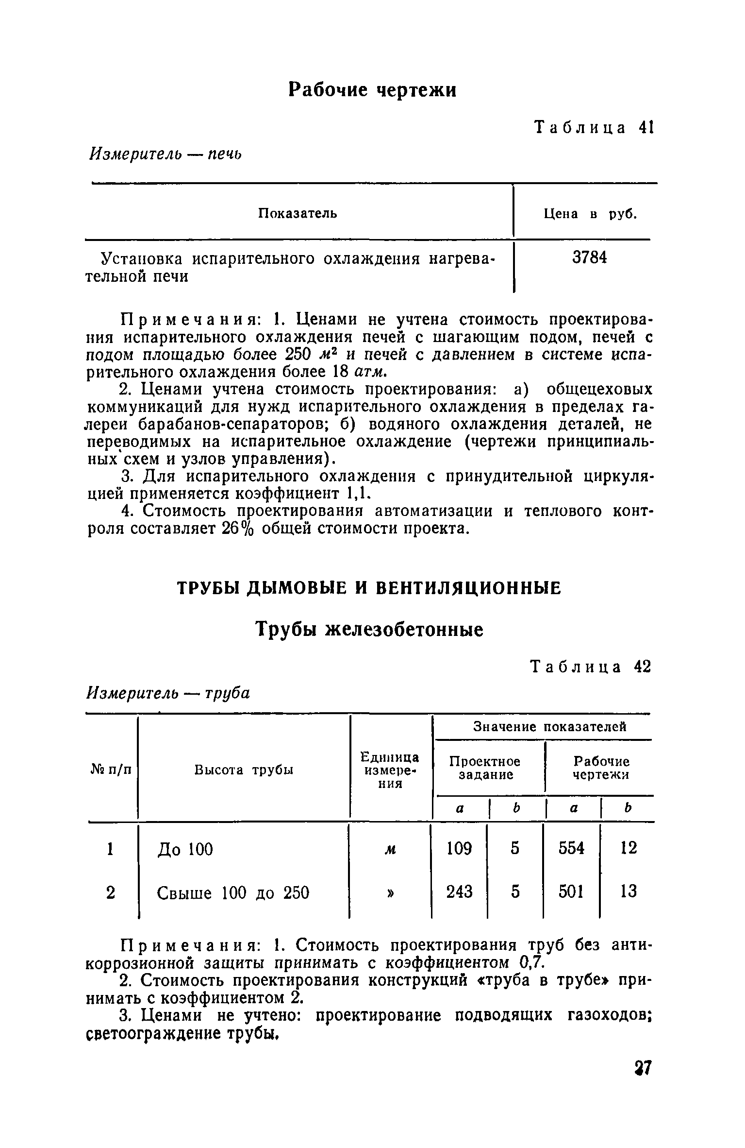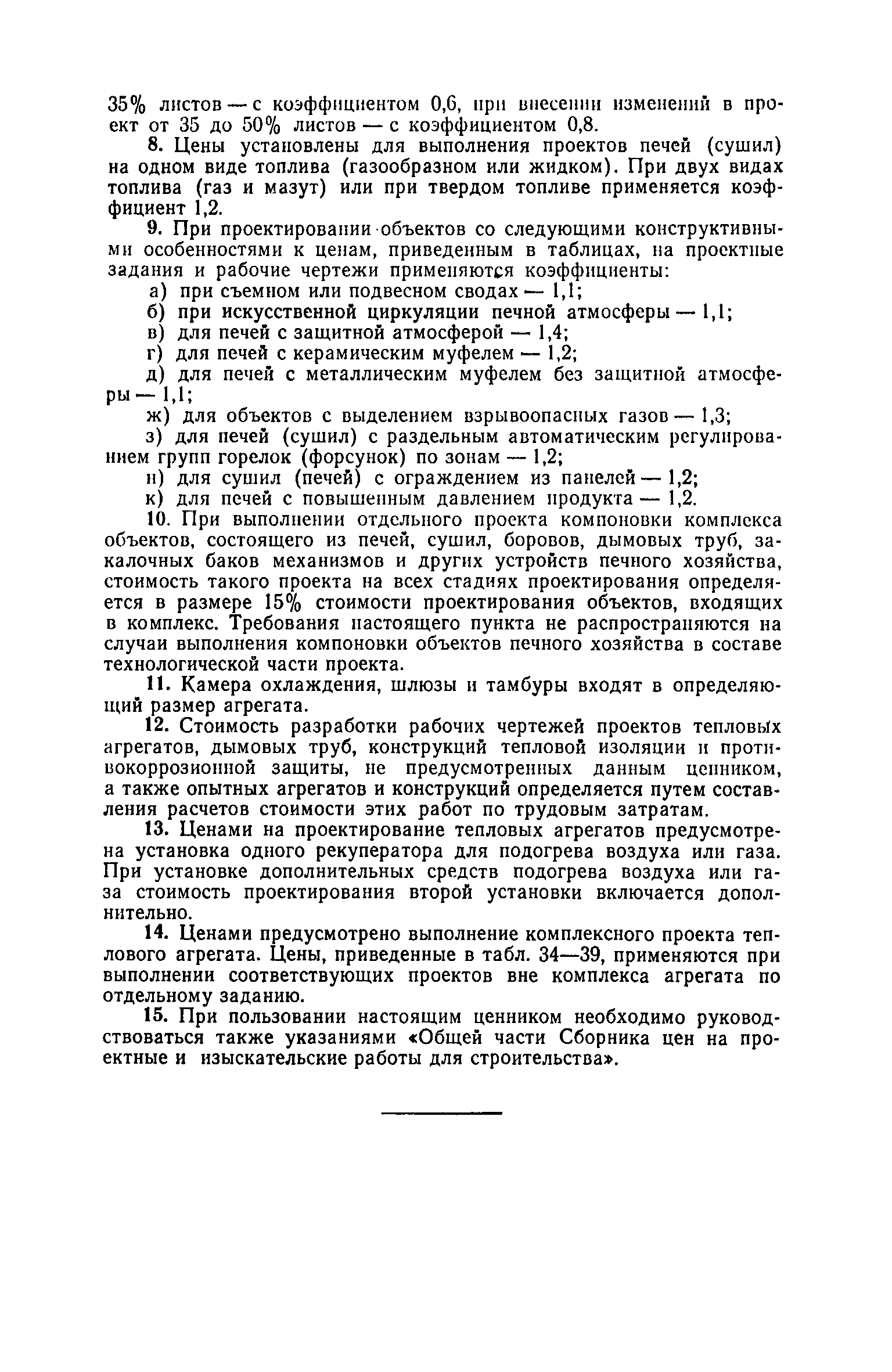 Ценник на проектирование промышленных печей, сушил, дымовых труб и конструкций тепловой изоляции| Статус: | не действует | | Название рус.: | Ценник на проектирование промышленных печей, сушил, дымовых труб и конструкций тепловой изоляции | | Дата добавления в базу: | 05.05.2017 | | Дата актуализации: | 01.01.2021 | | Область применения: | В документе приведены цены на разработку проектных заданий и рабочих чертежей новых проектов пламенных промышленных печей, сушил, дымовых труб, а также конструкций тепловой изоляции промышленного оборудования и трубопроводов и противокоррозионной защиты. | | Оглавление: | Указания по применению цен Печи камерные и кузнечные горны Печи с выдвижным подом Печи проходные, полуметодические, методические, толкательные Отделение нагревательных колодцев к блюмингу или слябингу Печи механизированные (конвейерные, карусельные, кольцевые, с шагающим подом без нижнего подогрева, приводным роликовым подом, секционные и т. П.) Печи вертикальные, колодцевые и ямные Печи-ванные с селитровым или щелочным расплавом для термообработки проволоки Печи протяжные, патентировочные отжигательные для проволоки Печи протяжные горизонтальные с защитной атмосферой для ленты Печи колпаковые Печи башенные Агрегаты производства защитных газов Вагранки Печи ретортные сероуглеродистого производства Печи туннельные Печи вращающиеся Печи шахтные Печи трубчатые для переработки и подогрева газа и жидкого топлива Печи стекловаренные Печи алюминиевого, магниевого, электродного и силуминового, производства и производства порошков алюминия, магния и их сплавов Печи отражательные (ванные) плавильные и рафинировочные стационарные цветной металлургии Печи шахтные и шлаковозгоночные с водоохлаждаемыми кессонами Котлы для плавки и рафинирования цветных металлов Печи для обжига в кипящем слое Сушила камерные, ямные и шкафные (для литейных форм и стержней, стопоров, окрашенных изделий, керамических, термоизоляционных и огнеупорных изделий и других продуктов) Сушила барабанные для сушки сыпучих материалов (песка, глины, шлака, угля, руды, концентратов, колчедана и других материалов) Сушила роликовые, рольганговые и сушила с ленточным конвейером для сушки литейных стержней и форм листовых, керамических, теплоизоляционных изделий и прочих материалов Сушила для сушки песка в пневмопотоке и кипящем слое Сушила многокамерные для сушки кирпича, черепицы, блоков и других видов грубой керамики Сушила вертикальные и горизонтальные конвейерные с подвесными этажерками или подвеской изделий на цепи или тележке конвейера для сушки стержней, мелких форм, керамических, огнеупорных и теплоизоляционных изделий, окрашенных изделий и др. Сушила туннельные (коридорные) для керамических огнеупорных и термоизоляционных изделий, окрашенных и эмалированных изделий, химических и других продуктов (многозонные) Сушильные установки камерного или протяжного типа для проволоки Плиты и стенды Топки отдельно стоящие Охладительные камеры Борова Рекуператоры Вентиляционные установки Воздухопроводы, дымопроводы Испарительное охлаждение нагревательных печей прокатных станов Трубы дымовые и вентиляционные Теплоизоляционные конструкции Конструкции противокоррозионных защит | | Разработан: | ВНИИ и ПИ Теплопроект Министерства монтажных и специальных ст