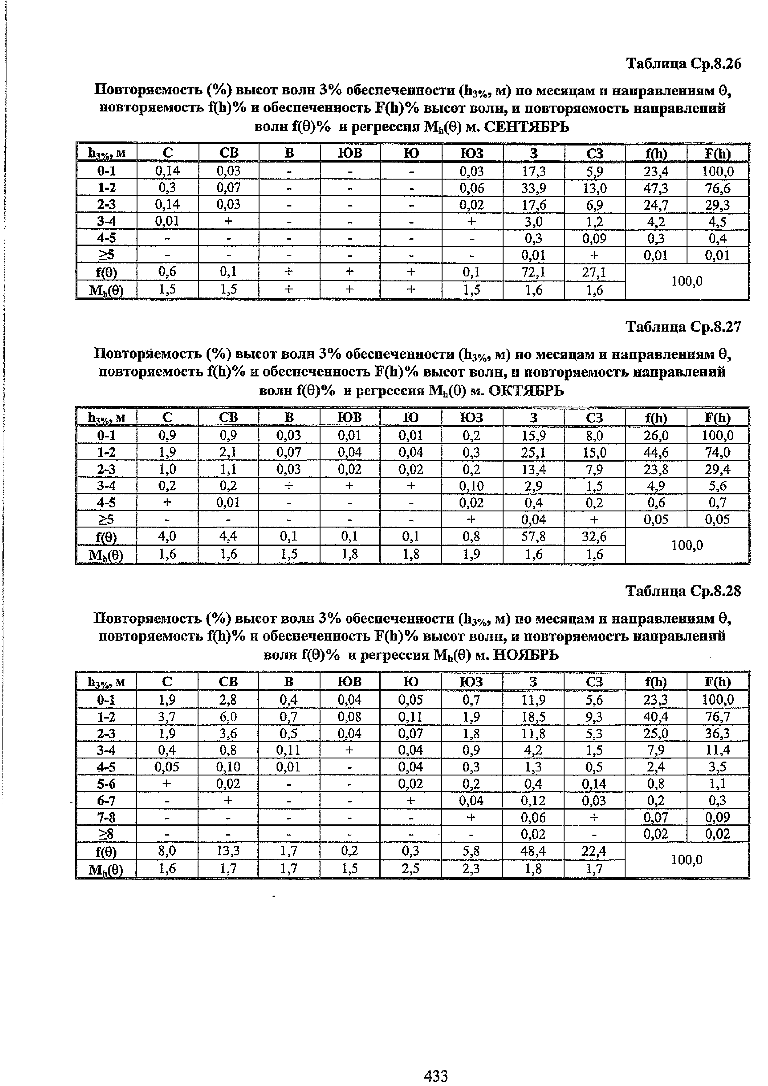 Справочные данные по режиму ветра и волнения Балтийского, Северного, Черного, Азовского и Средиземного морей| Статус: | взамен | | Название рус.: | Справочные данные по режиму ветра и волнения Балтийского, Северного, Черного, Азовского и Средиземного морей | | Дата добавления в базу: | 05.05.2017 | | Дата актуализации: | 01.01.2021 | | Область применения: | Справочные данные по режиму ветра и волнения Балтийского, Северного, Черного, Азовского и Средиземного морей содержат методику расчетов и сведения, необходимые для правильной классификации судов по районам плавания при разработке норм и правил Российского морского регистра судоходства (РС), для проектирования судов и сооружений, оценки условий плавания, планирования работ в открытом море и на шельфе, а также для решения других вопросов, связанных с судоходством, мореплаванием и проектированием средств океанотехники. | | Оглавление: | Часть 1. Методы расчета режима ветра и волнения Введение 1 Краткая характеристика справочных данных по режиму ветра и волнения Балтийского, Северного, Черного, Азовского и Средиземного морей в соответствия с требованиями РС 2 Подходы к созданию нового поколения справочных данных по режиму ветра и волнения 2.1 Входные данные для расчетов режима ветра и волнения 2.2 Гидродинамические модели, используемые для расчета волнения 3 Основные расчетные параметры волнения 3.1 Спектральные характеристики волнения 3.2 Высоты волн 3.3 Периоды видимых волн 3.4 Длины и высоты гребней волн 3.5 Совместное распределение высот и периодов волн 3.6 О необычных волнах в океанах и морях 4 Волновой климат (режимные характеристики волнения) 4.1 Оперативные статистики 4.2 Экстремальные статистики 5 Достоверность режимных характеристик ветра и волнения 6 Сопоставление некоторых расчетных характеристик волнения с данными измерений 6.1 Балтийское море 6.2 Северное море 6.3 Черное море 6.4 Азовское море 6.5 Средиземное море Литература Часть 2. Справочные данные по режиму ветра и волнения Балтийского, Северного, Черного, Азовского и Средиземного морей Введение Балтийское море Северное море Черное море Азовское море Средиземное море | | Разработан: | Российский морской регистр судоходства ООО ИНФОМАР СПбГУ
