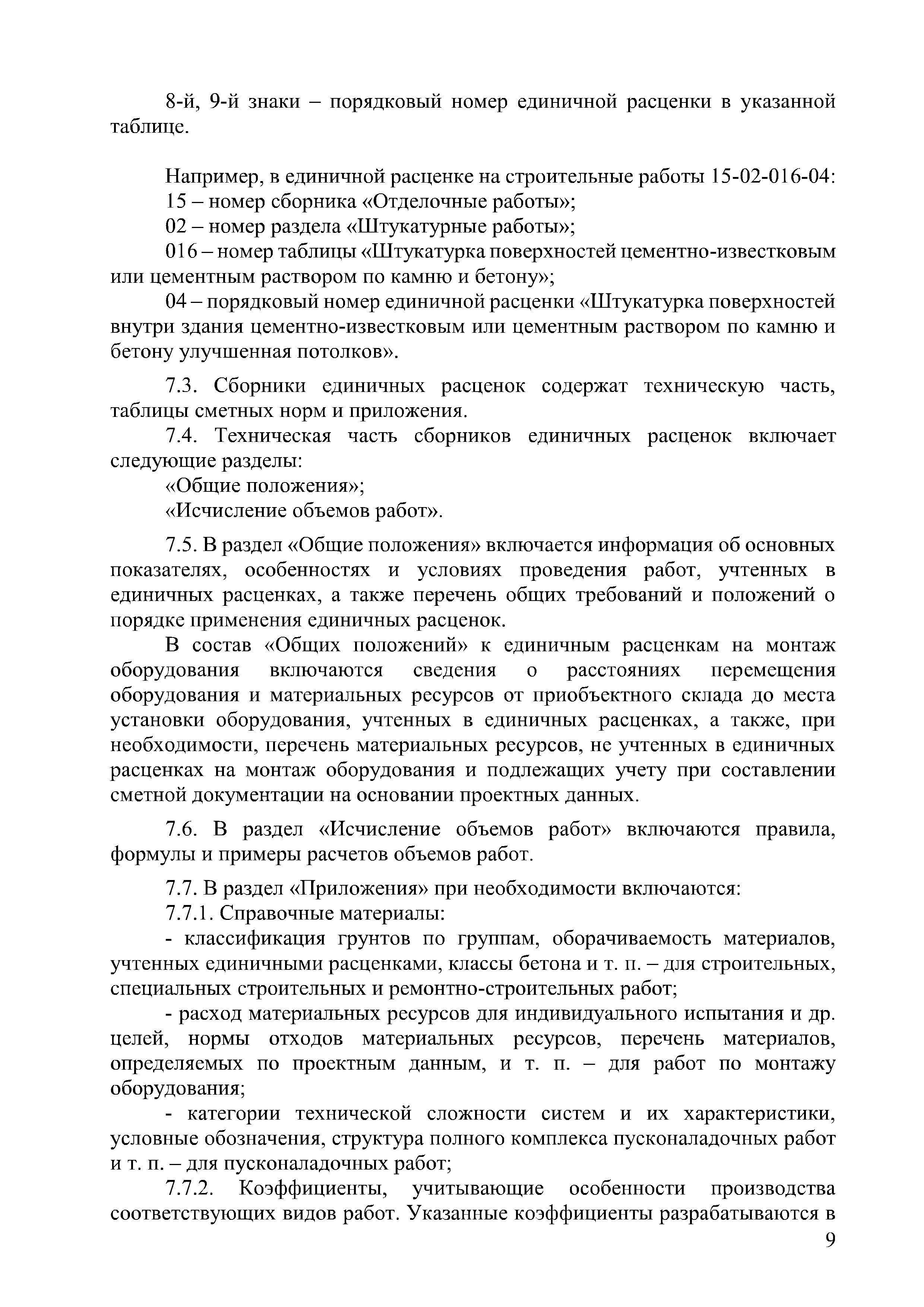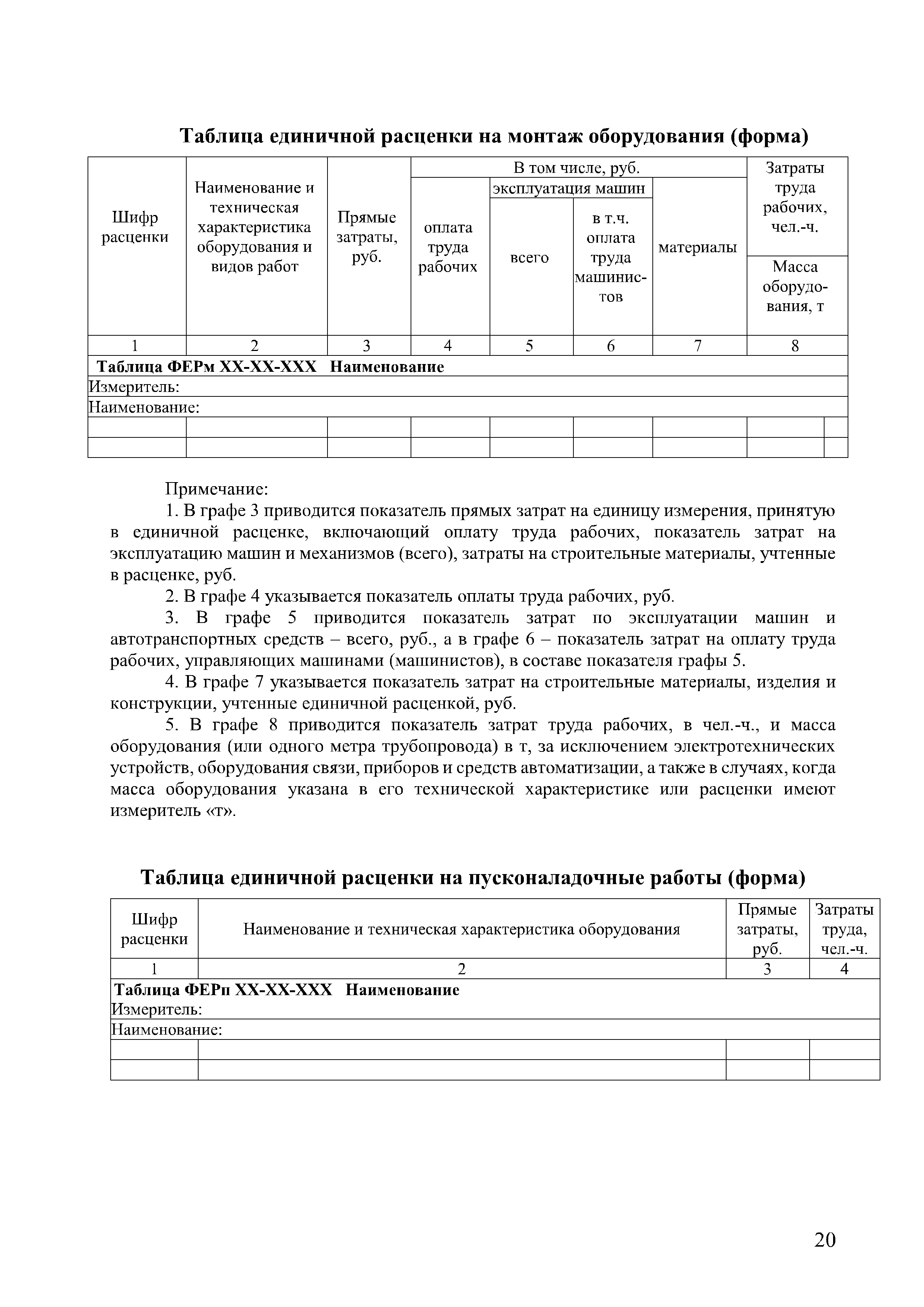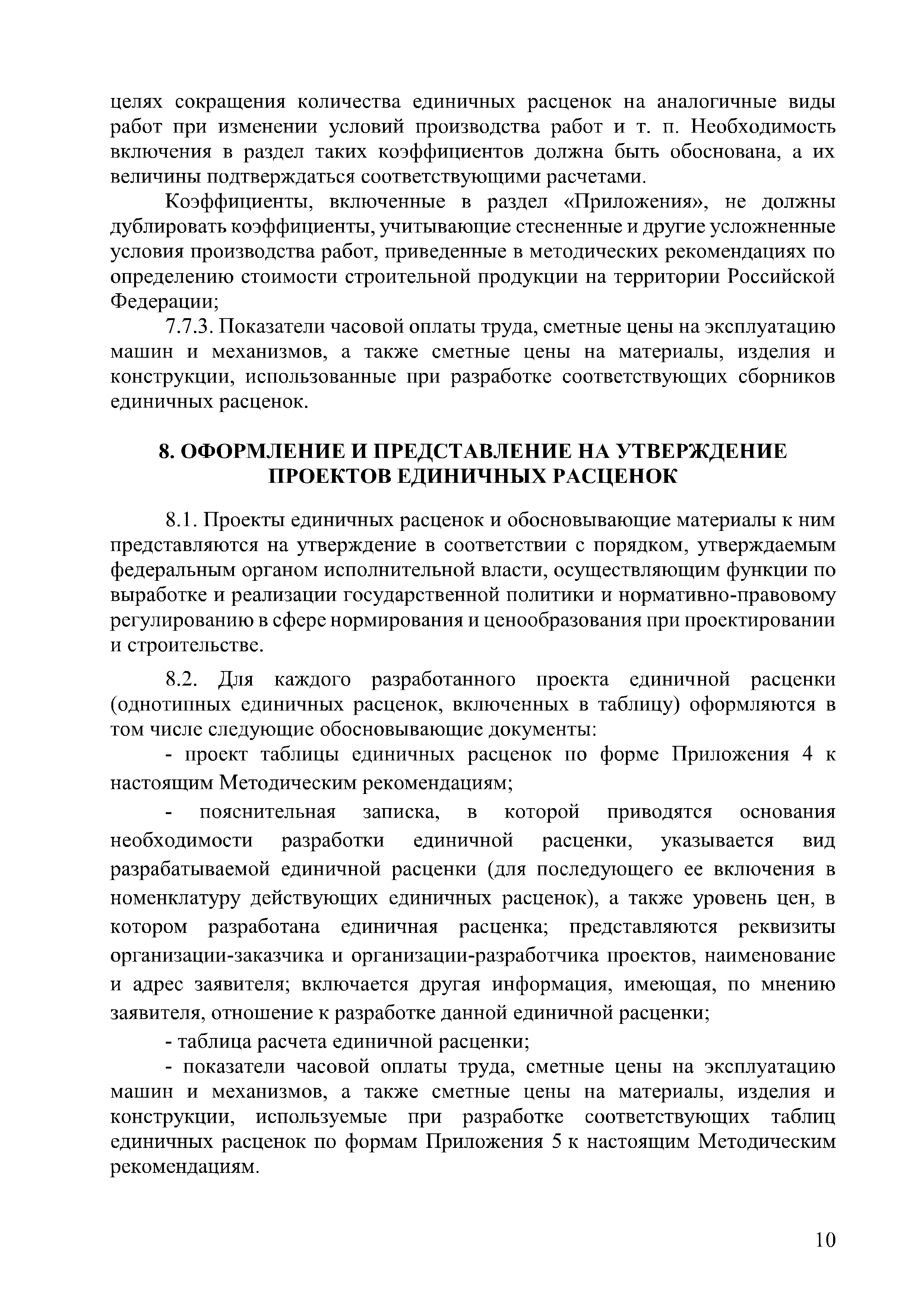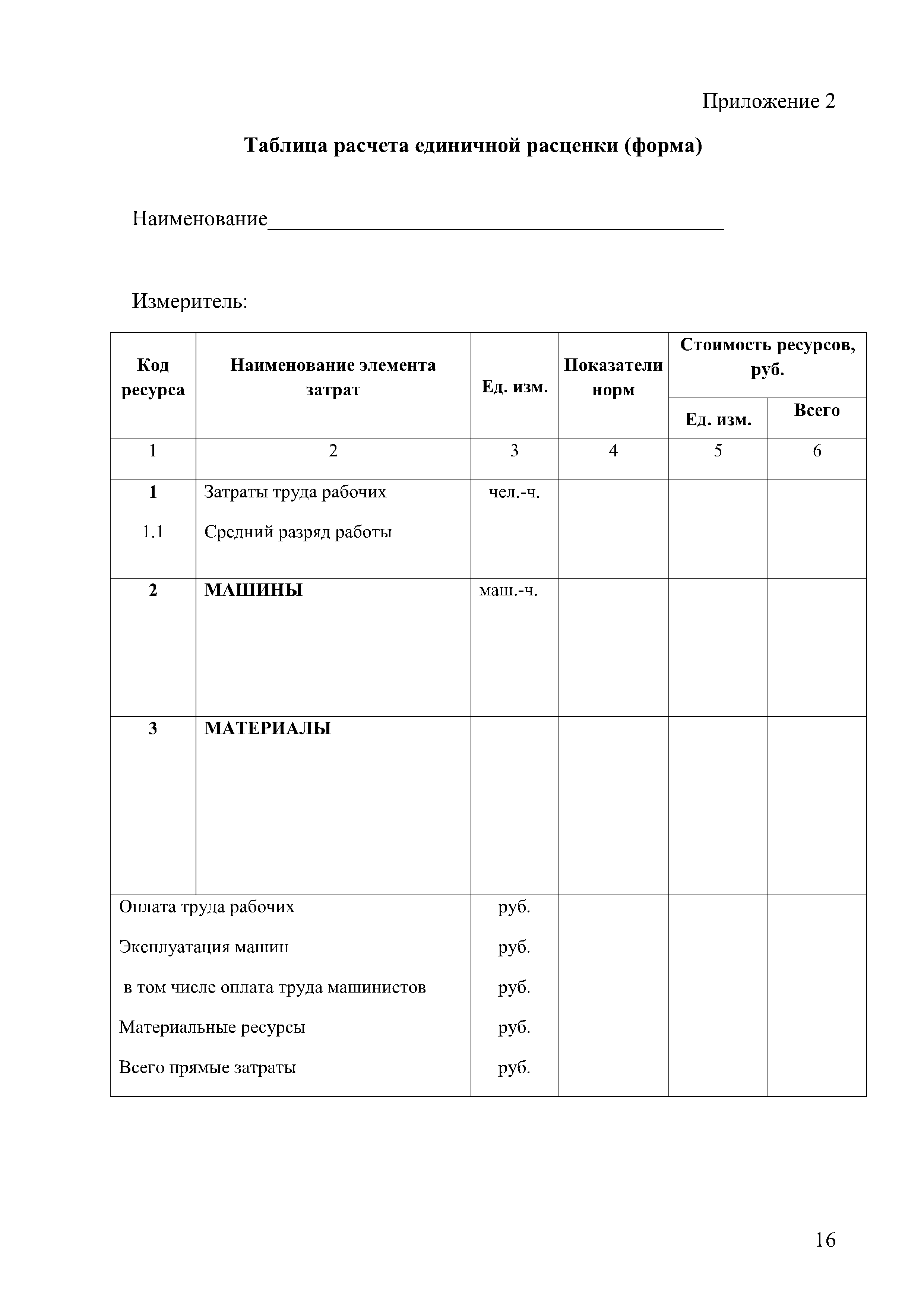 Методические рекомендации по разработке единичных расценок на строительные, специальные строительные, ремонтно-строительные работы, монтаж оборудования и пусконаладочные работы| Статус: | утратил силу | | Название рус.: | Методические рекомендации по разработке единичных расценок на строительные, специальные строительные, ремонтно-строительные работы, монтаж оборудования и пусконаладочные работы | | Дата добавления в базу: | 05.05.2017 | | Дата актуализации: | 01.01.2021 | | Дата введения: | 31.03.2017 | | Дата окончания срока действия: | 04.09.2019 | | Область применения: | Методические рекомендации по разработке единичных расценок на строительные, специальные строительные, ремонтно-строительные работы, монтаж оборудования и пусконаладочные работы определяют единый порядок разработки и оформления единичных расценок на строительные, специальные строительные, ремонтно-строительные работы, а также единичных расценок на монтаж оборудования и пусконаладочные работы. Единичные расценки предназначены для определения прямых затрат на выполнение строительных, специальных строительных, ремонтно-строительных работ, монтажа оборудования и пусконаладочных работ при составлении сметной документации. | | Оглавление: | 1 Область применения 2 Термины, определения 3 Общие положения 4 Порядок определения в единичных расценках размера средств на оплату труда 5 Порядок определения в единичных расценках стоимости эксплуатации машин и механизмов 6 Порядок определения в единичных расценках стоимости материальных ресурсов 7 Содержание и структура единичных расценок 8 Оформление и представление на утверждение проектов единичных расценок Приложение 1. Номенклатура сборников единичных расценок Приложение 2. Таблица расчета единичной расценки (форма) Приложение 3. Тарифные коэффициенты при нормальных условиях труда Приложение 4. Таблицы единичных расценок (формы) Приложение 5. Таблицы показателей часовой оплаты труда, сметных цен на эксплуатацию машин и механизмов и сметных цен на материалы, изделия и конструкции, используемых при разработке единичных расценок (формы) | | Утверждён: | 08.02.2017 Министерство строительства и жилищно-коммунального хозяйства Российской Федерации (75/пр)