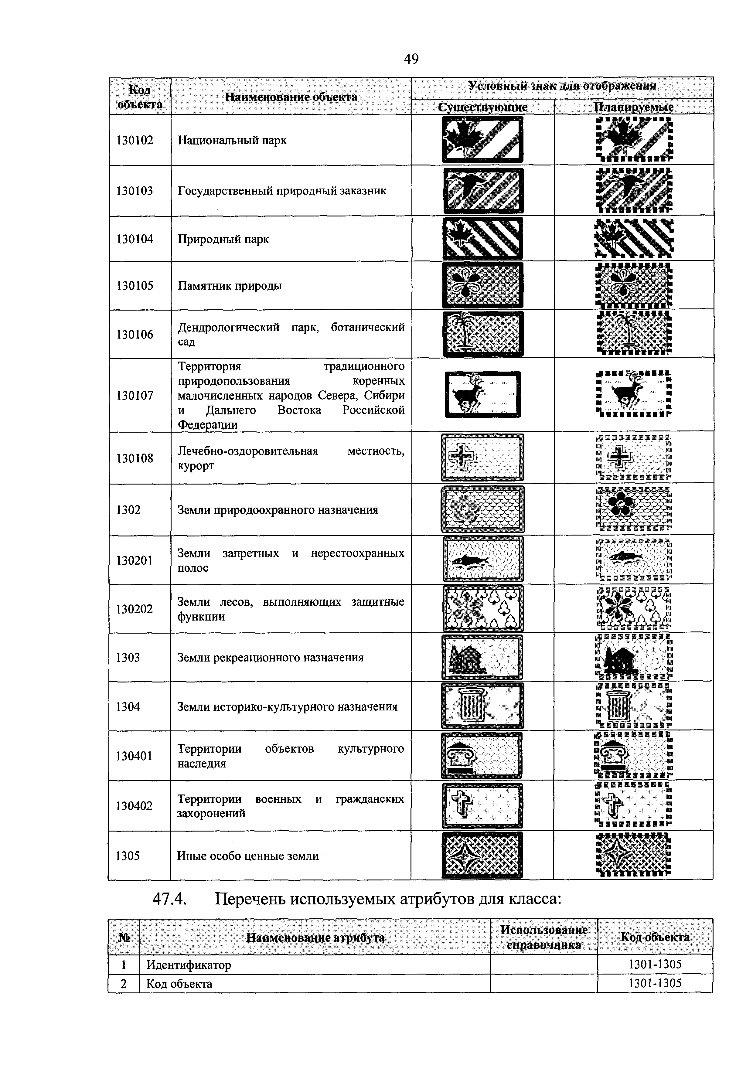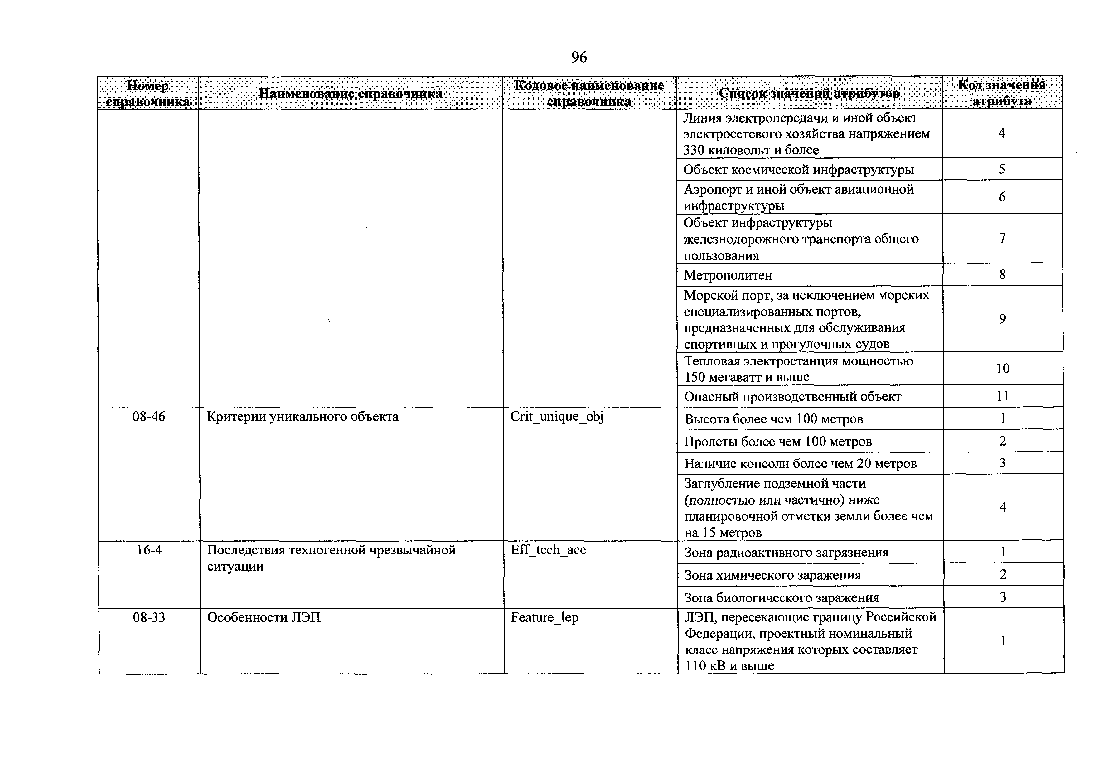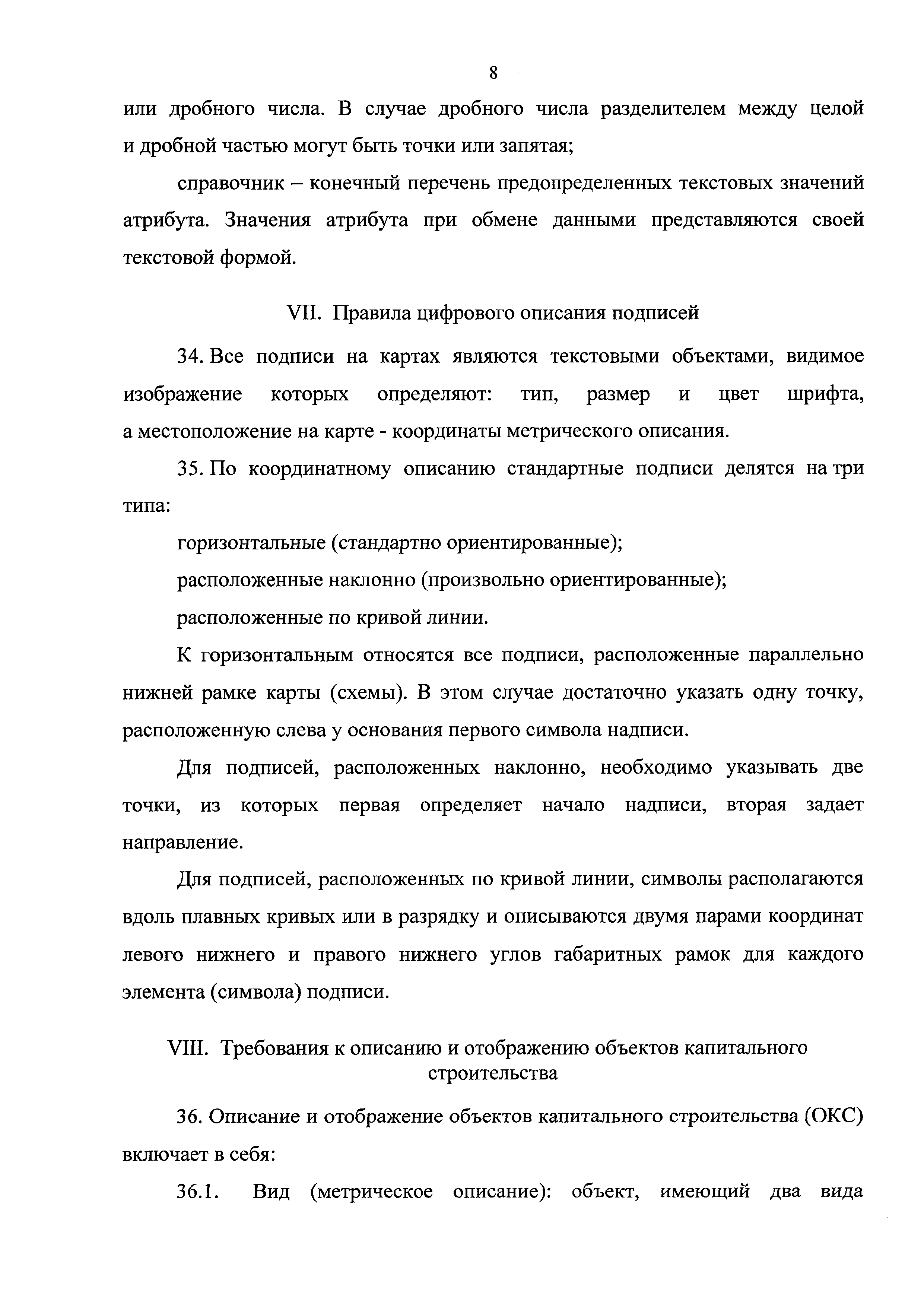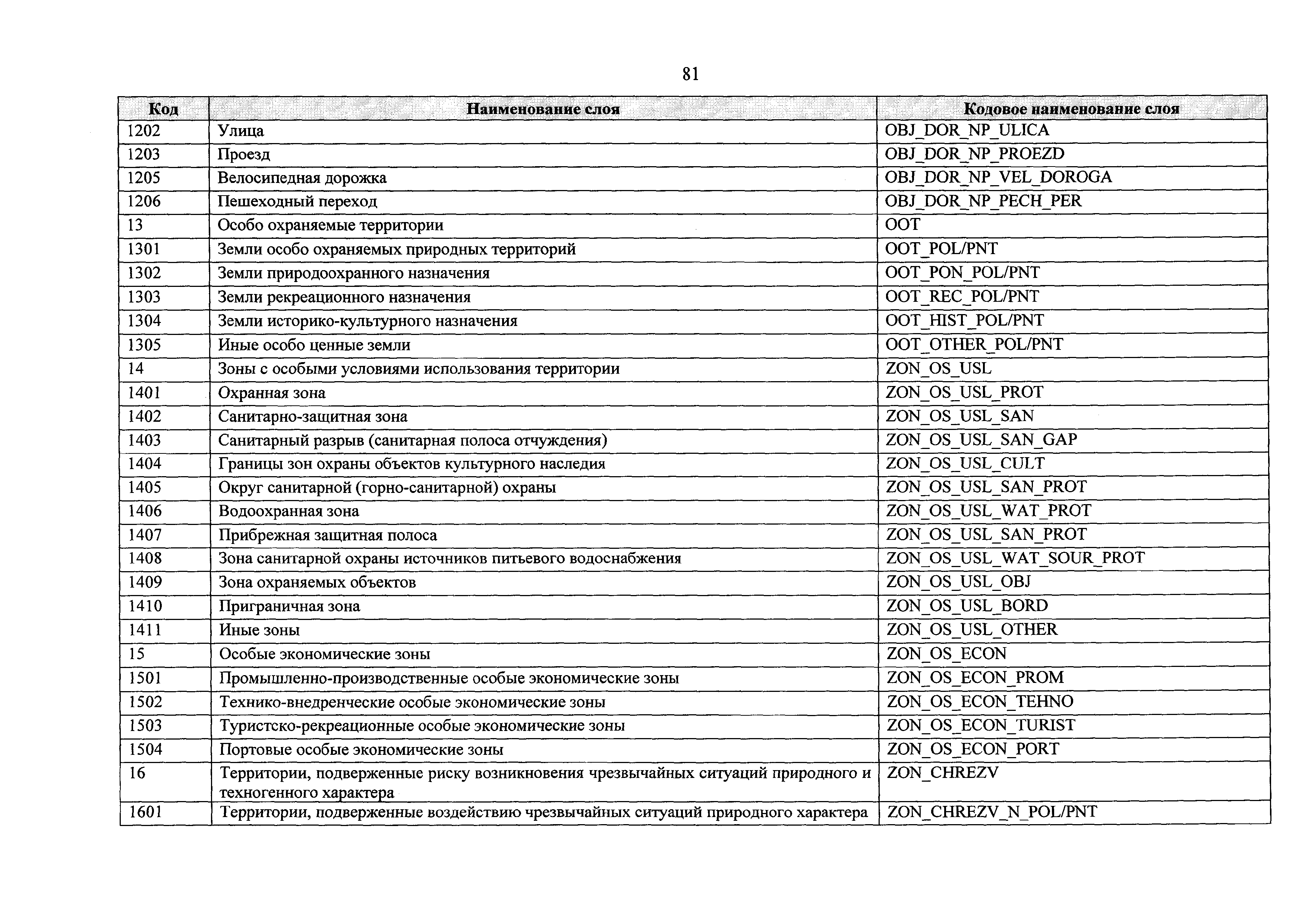Требования к описанию и отображению в документах территориального планирования объектов федерального значения, объектов регионального значения, объектов местного значения| Статус: | утратил силу | | Название рус.: | Требования к описанию и отображению в документах территориального планирования объектов федерального значения, объектов регионального значения, объектов местного значения | | Дата добавления в базу: | 05.05.2017 | | Дата актуализации: | 01.01.2021 | | Дата введения: | 20.01.2017 | | Дата окончания срока действия: | 12.02.2018 | | Область применения: | Требования к описанию и отображению в документах территориального планирования объектов федерального значения, объектов регионального значения, объектов местного значения разработаны в целях структурирования и унификации информации об объектах федерального, регионального и местного значения, необходимых для подготовки документов территориального планирования Российской Федерации, субъектов Российской Федерации и муниципальных образований | | Оглавление: | I. Общие положения II. Общие правила цифрового описания объектов III. Правила цифрового описания площадных объектов IV. Правила цифрового описания линейных объектов V. Правила цифрового описания точечных объектов VI. Правила атрибутивного (семантического) описания объектов VII. Правила цифрового описания подписей VIII. Требования к описанию и отображению объектов капитального строительства IX. Требования к описанию и отображению иных объектов X. Требования к описанию и отображению территорий XI. Перечень слоев пространственных данных XII. Структура атрибутивных данных XIII. Справочники (перечень текстовых значений атрибутов) | | Утверждён: | 07.12.2016 Министерство экономического развития РФ (793)