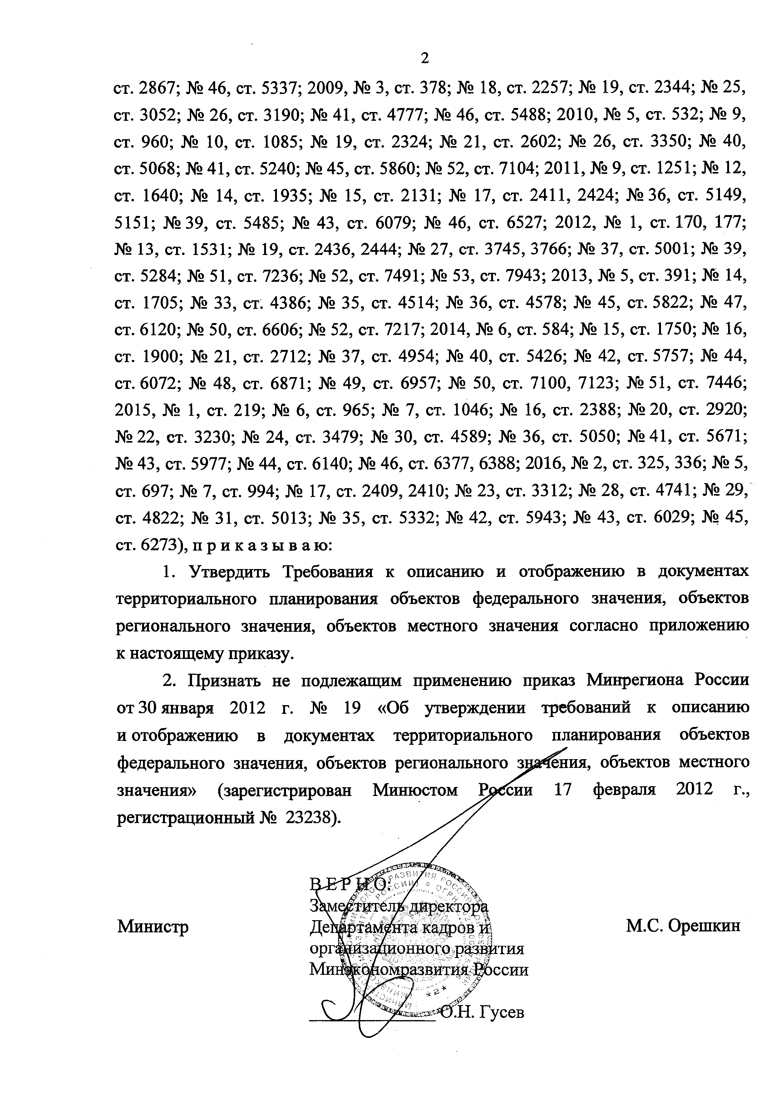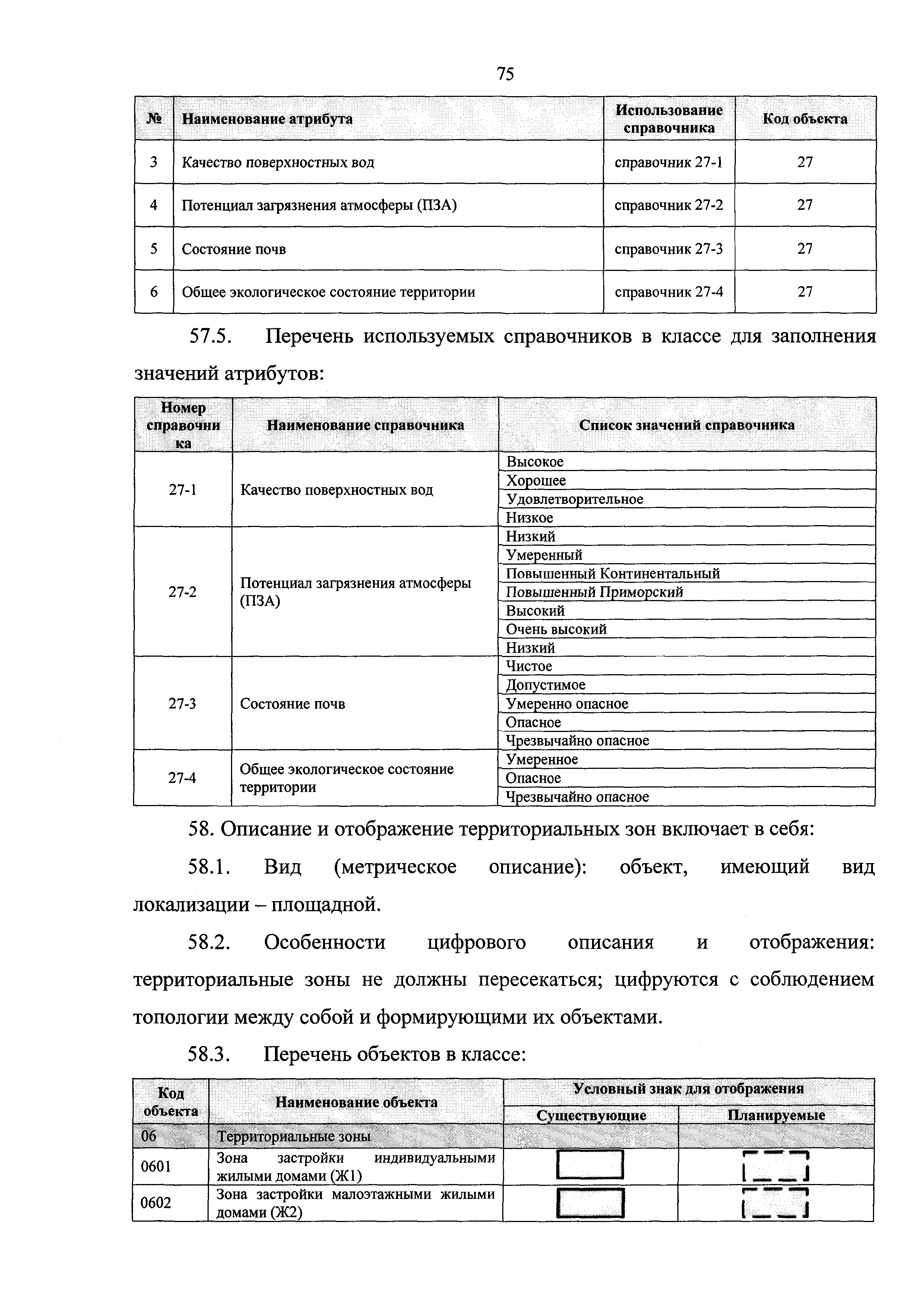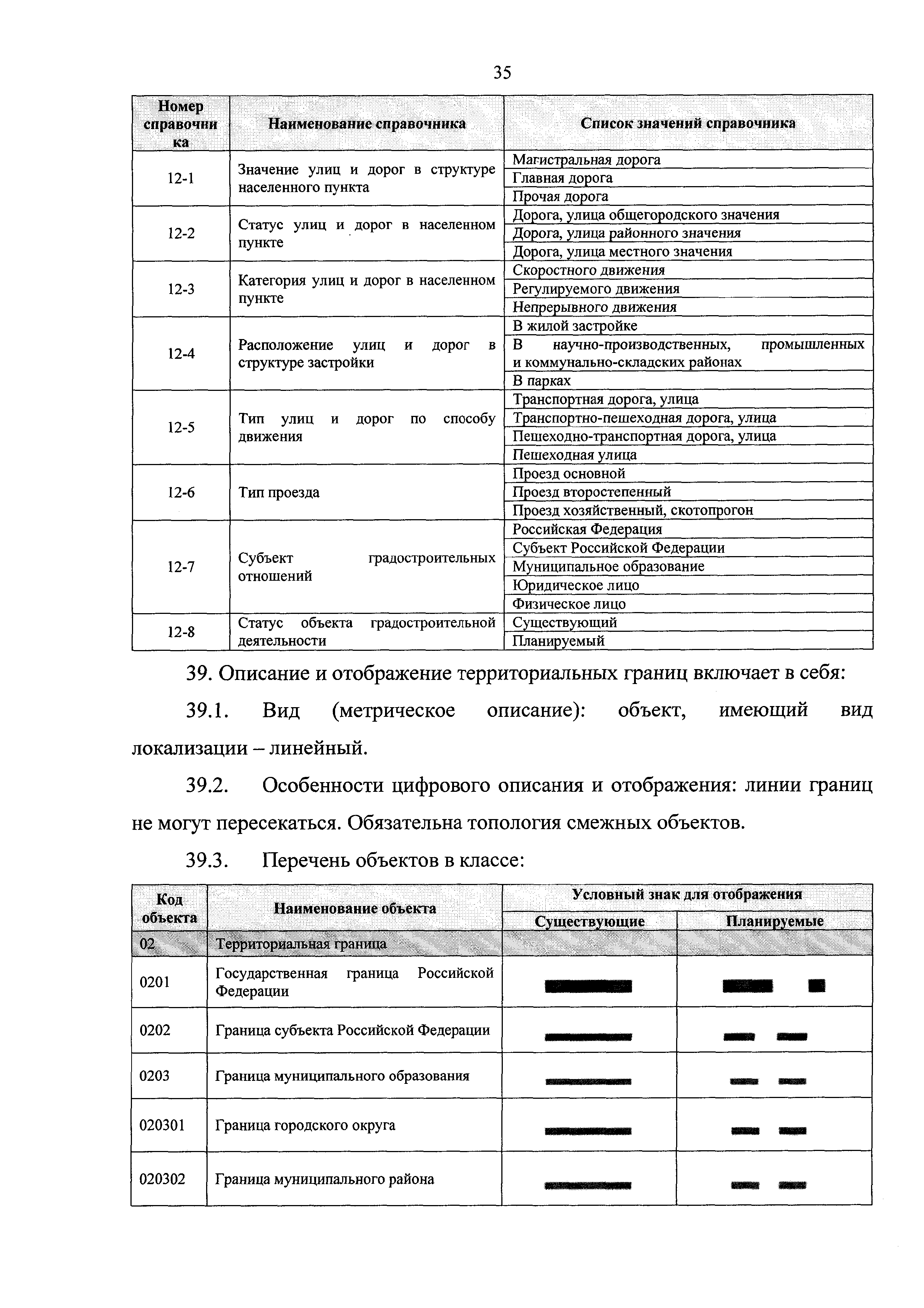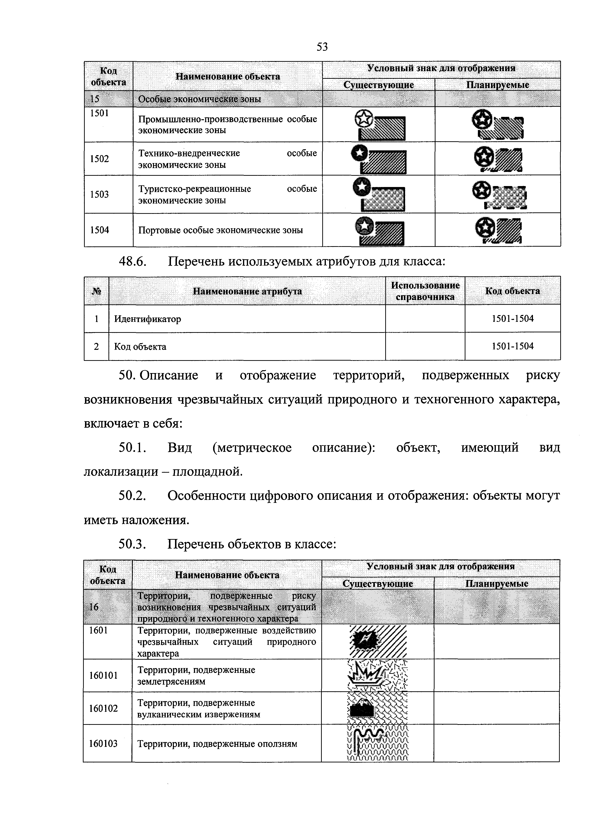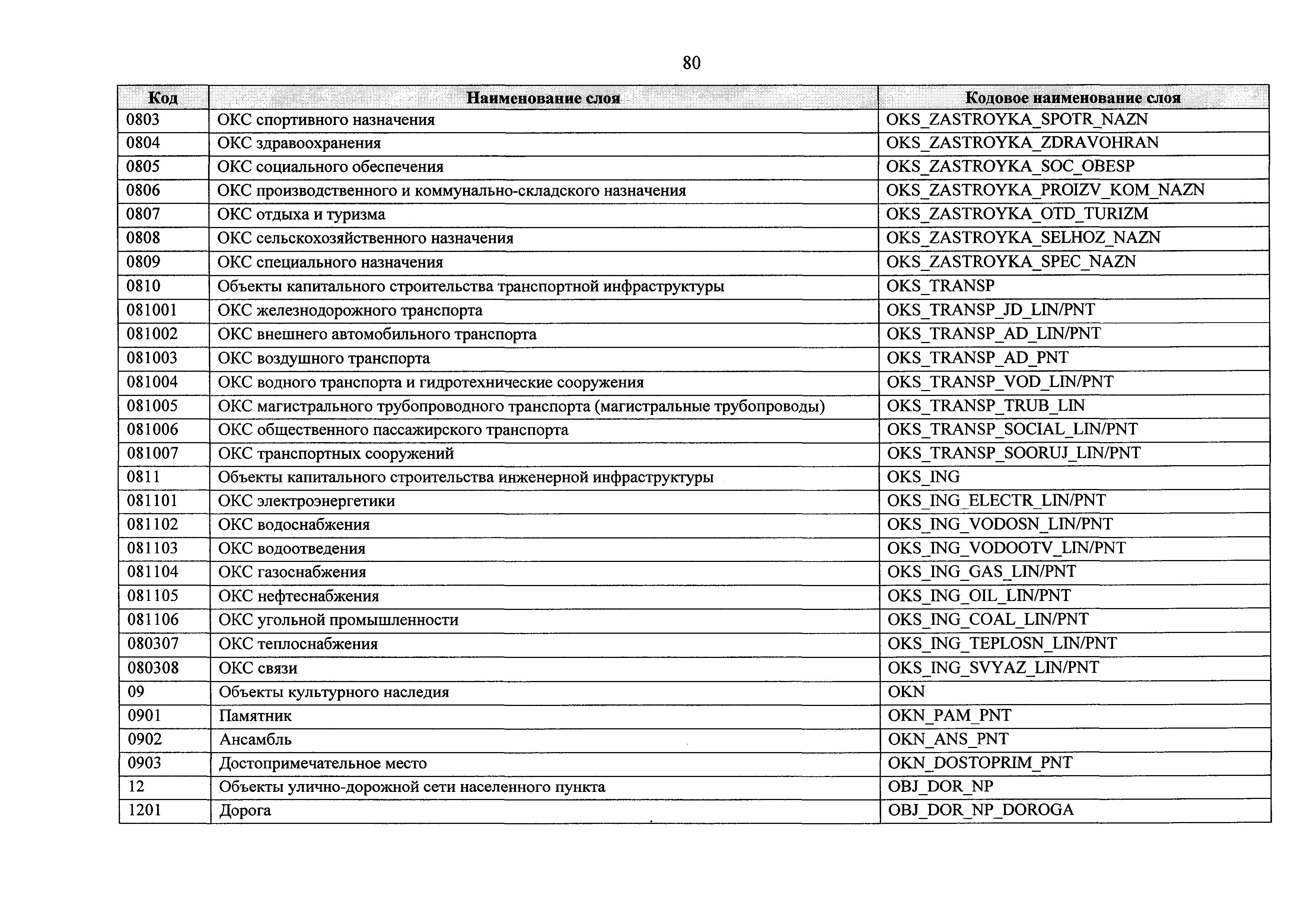 Требования к описанию и отображению в документах территориального планирования объектов федерального значения, объектов регионального значения, объектов местного значения| Статус: | утратил силу | | Название рус.: | Требования к описанию и отображению в документах территориального планирования объектов федерального значения, объектов регионального значения, объектов местного значения | | Дата добавления в базу: | 05.05.2017 | | Дата актуализации: | 01.01.2021 | | Дата введения: | 20.01.2017 | | Дата окончания срока действия: | 12.02.2018 | | Область применения: | Требования к описанию и отображению в документах территориального планирования объектов федерального значения, объектов регионального значения, объектов местного значения разработаны в целях структурирования и унификации информации об объектах федерального, регионального и местного значения, необходимых для подготовки документов территориального планирования Российской Федерации, субъектов Российской Федерации и муниципальных образований | | Оглавление: | I. Общие положения II. Общие правила цифрового описания объектов III. Правила цифрового описания площадных объектов IV. Правила цифрового описания линейных объектов V. Правила цифрового описания точечных объектов VI. Правила атрибутивного (семантического) описания объектов VII. Правила цифрового описания подписей VIII. Требования к описанию и отображению объектов капитального строительства IX. Требования к описанию и отображению иных объектов X. Требования к описанию и отображению территорий XI. Перечень слоев пространственных данных XII. Структура атрибутивных данных XIII. Справочники (перечень текстовых значений атрибутов) | | Утверждён: | 07.12.2016 Министерство экономического развития РФ (793)