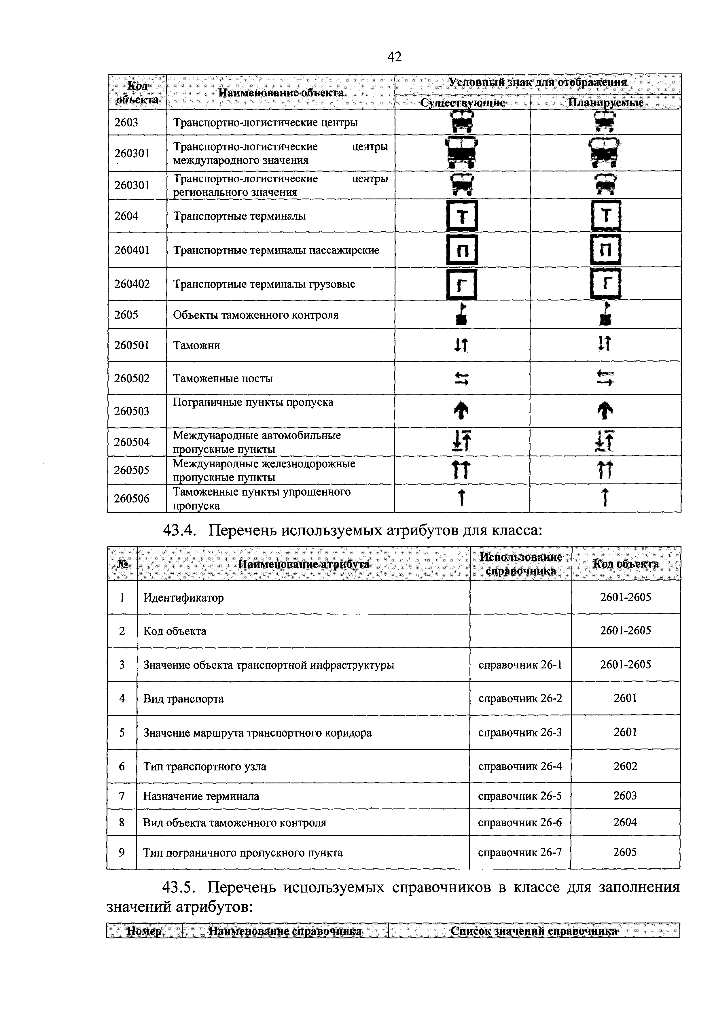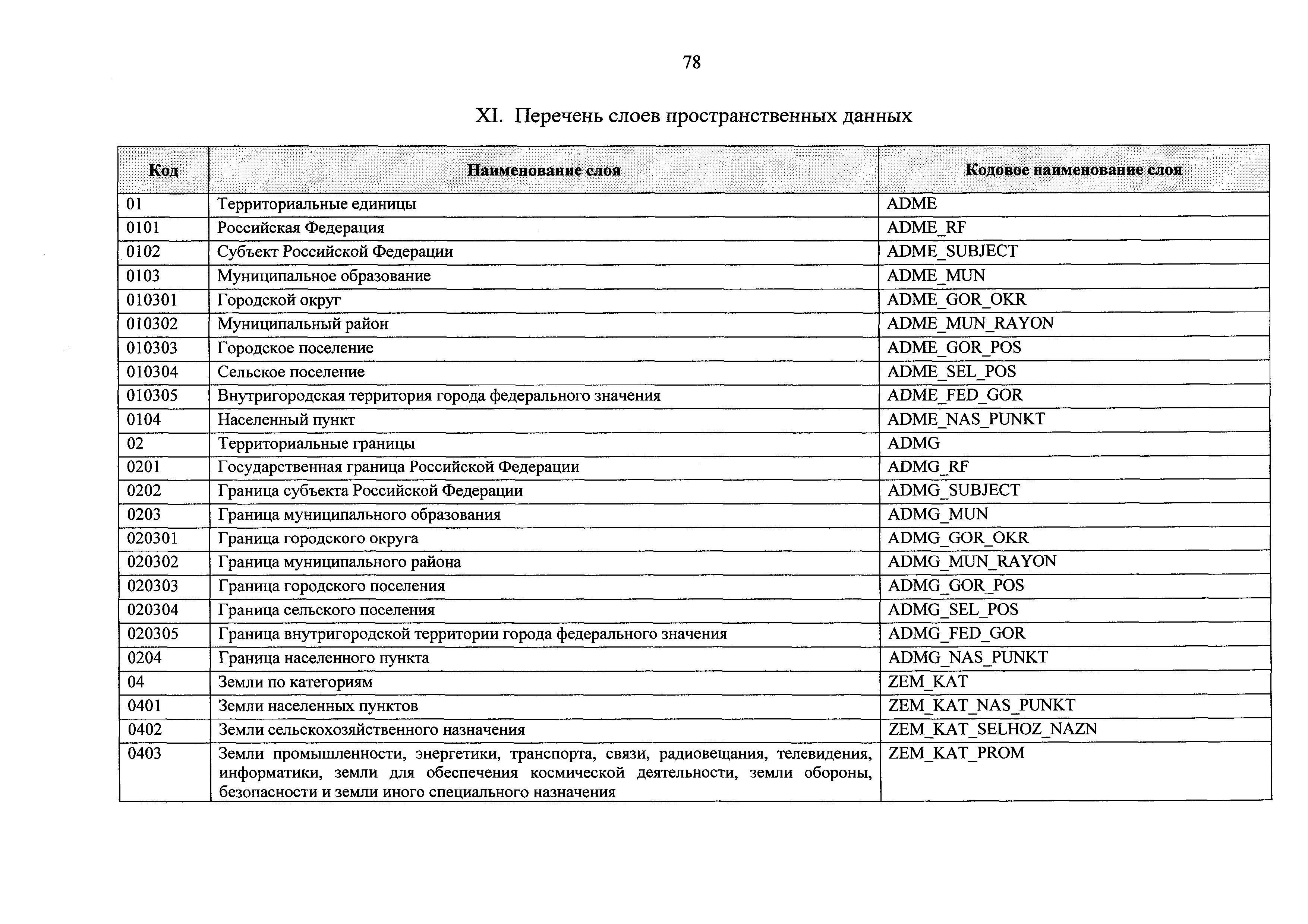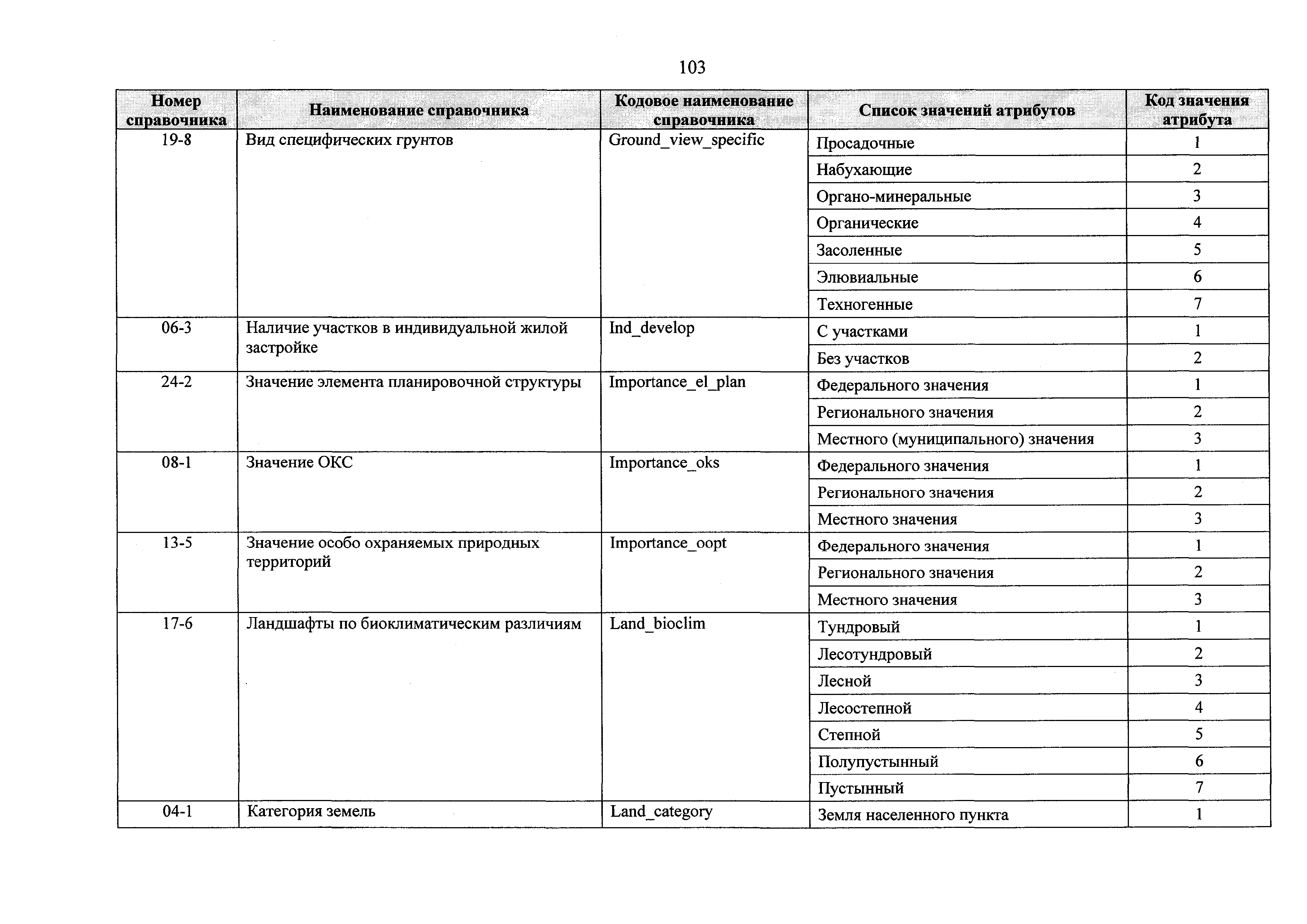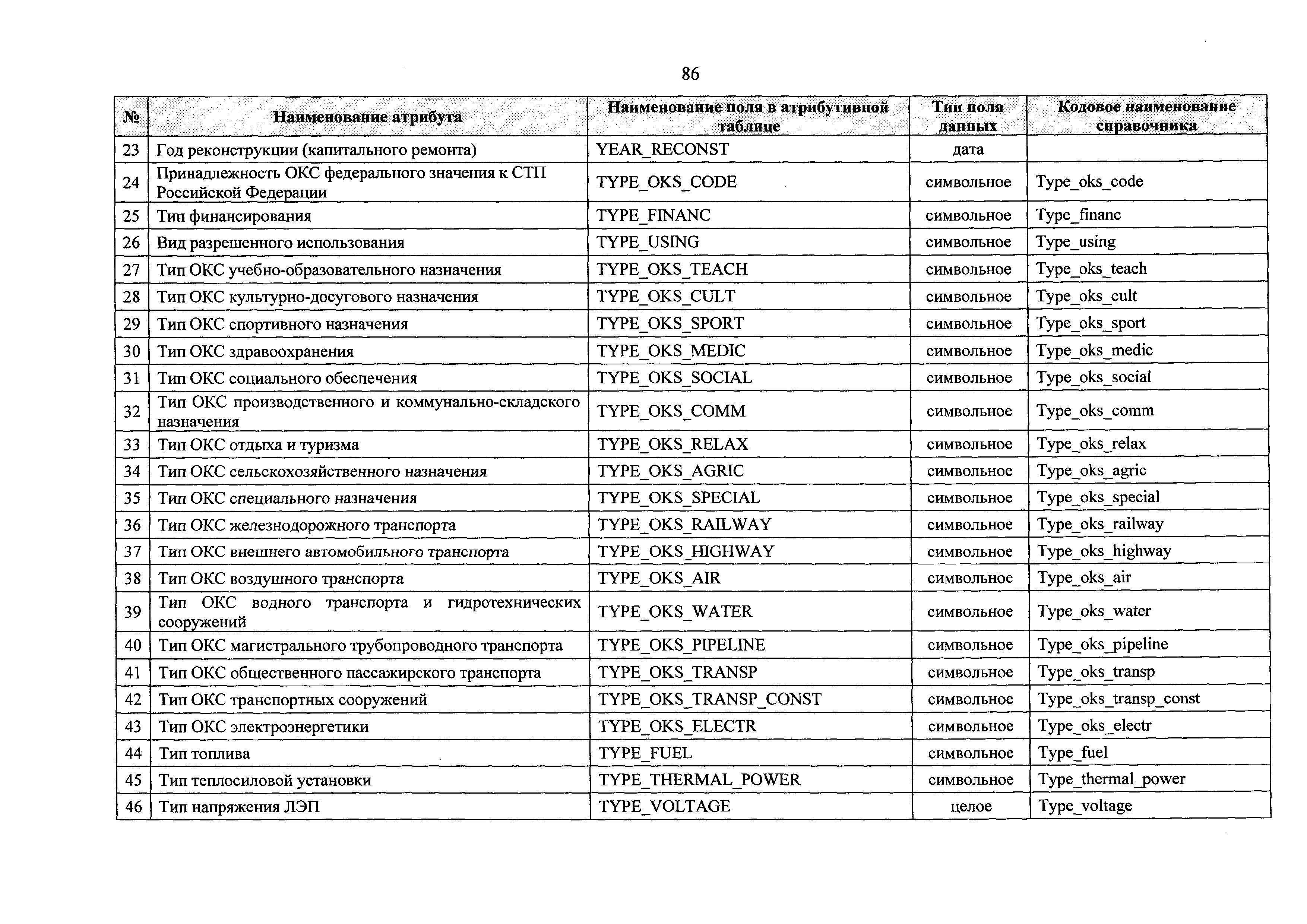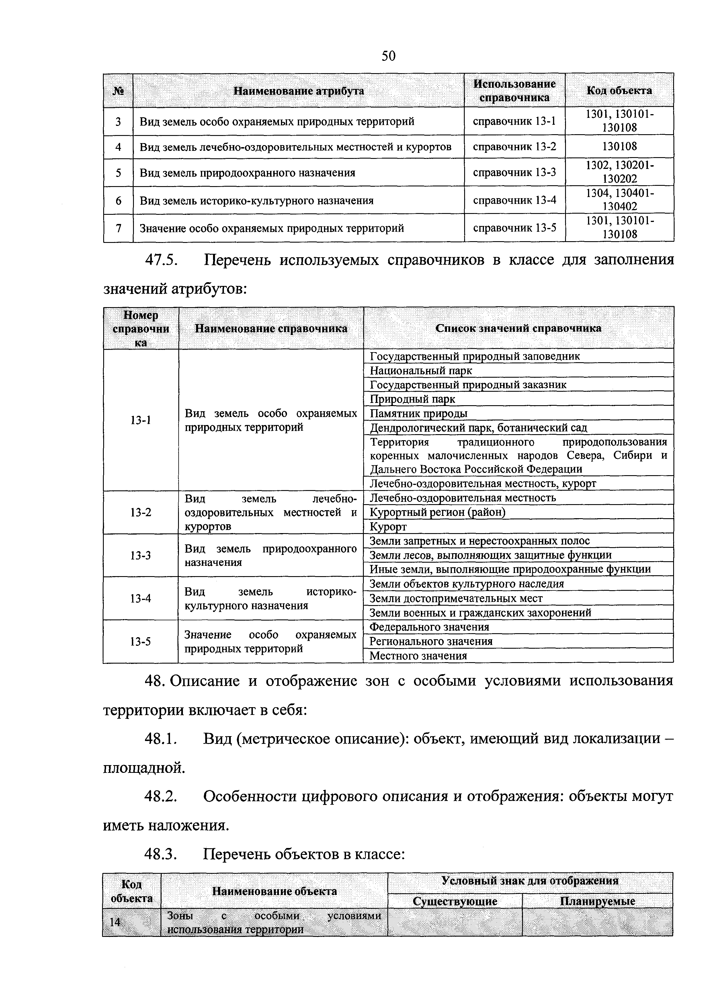 Требования к описанию и отображению в документах территориального планирования объектов федерального значения, объектов регионального значения, объектов местного значения| Статус: | утратил силу | | Название рус.: | Требования к описанию и отображению в документах территориального планирования объектов федерального значения, объектов регионального значения, объектов местного значения | | Дата добавления в базу: | 05.05.2017 | | Дата актуализации: | 01.01.2021 | | Дата введения: | 20.01.2017 | | Дата окончания срока действия: | 12.02.2018 | | Область применения: | Требования к описанию и отображению в документах территориального планирования объектов федерального значения, объектов регионального значения, объектов местного значения разработаны в целях структурирования и унификации информации об объектах федерального, регионального и местного значения, необходимых для подготовки документов территориального планирования Российской Федерации, субъектов Российской Федерации и муниципальных образований | | Оглавление: | I. Общие положения II. Общие правила цифрового описания объектов III. Правила цифрового описания площадных объектов IV. Правила цифрового описания линейных объектов V. Правила цифрового описания точечных объектов VI. Правила атрибутивного (семантического) описания объектов VII. Правила цифрового описания подписей VIII. Требования к описанию и отображению объектов капитального строительства IX. Требования к описанию и отображению иных объектов X. Требования к описанию и отображению территорий XI. Перечень слоев пространственных данных XII. Структура атрибутивных данных XIII. Справочники (перечень текстовых значений атрибутов) | | Утверждён: | 07.12.2016 Министерство экономического развития РФ (793)