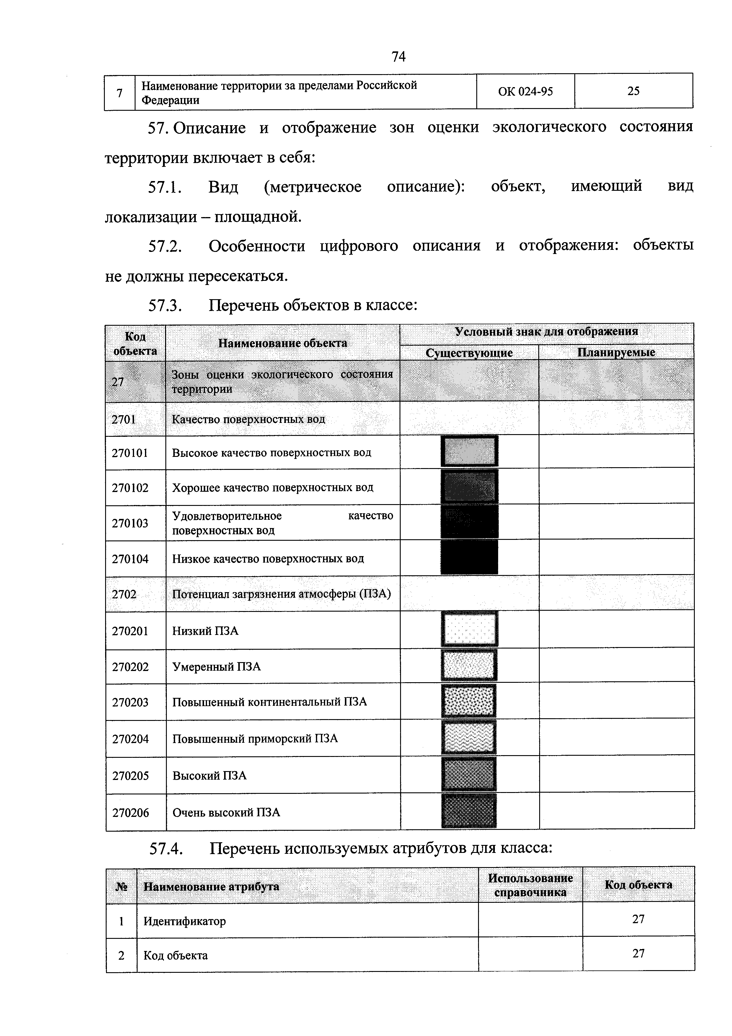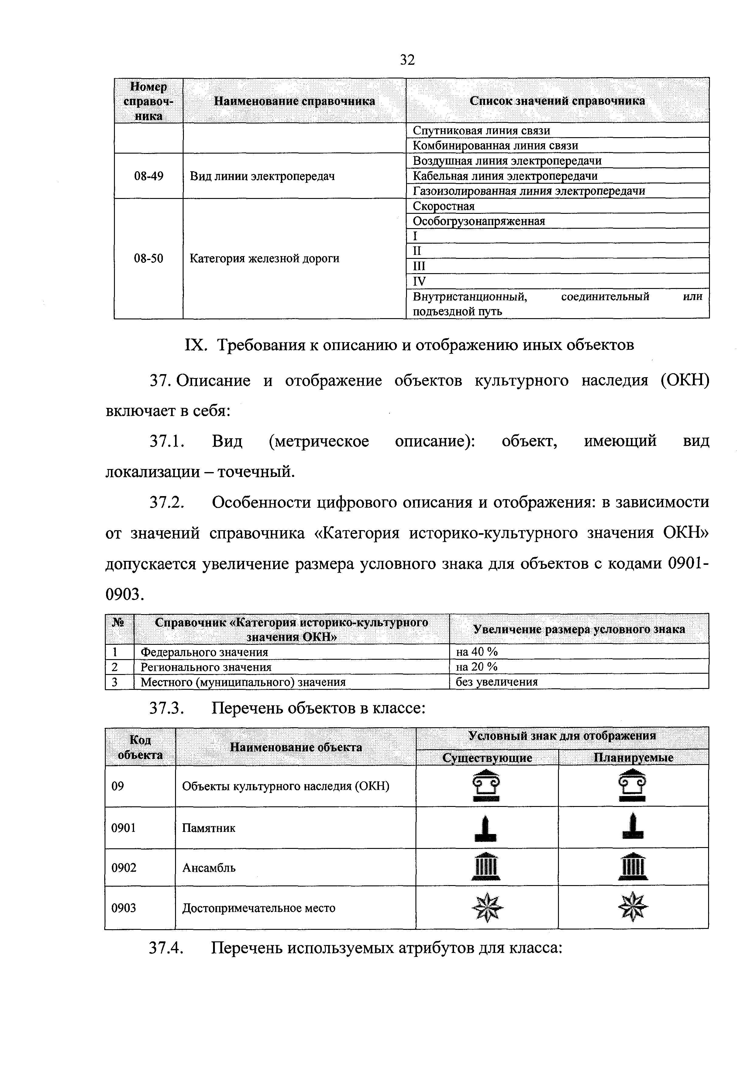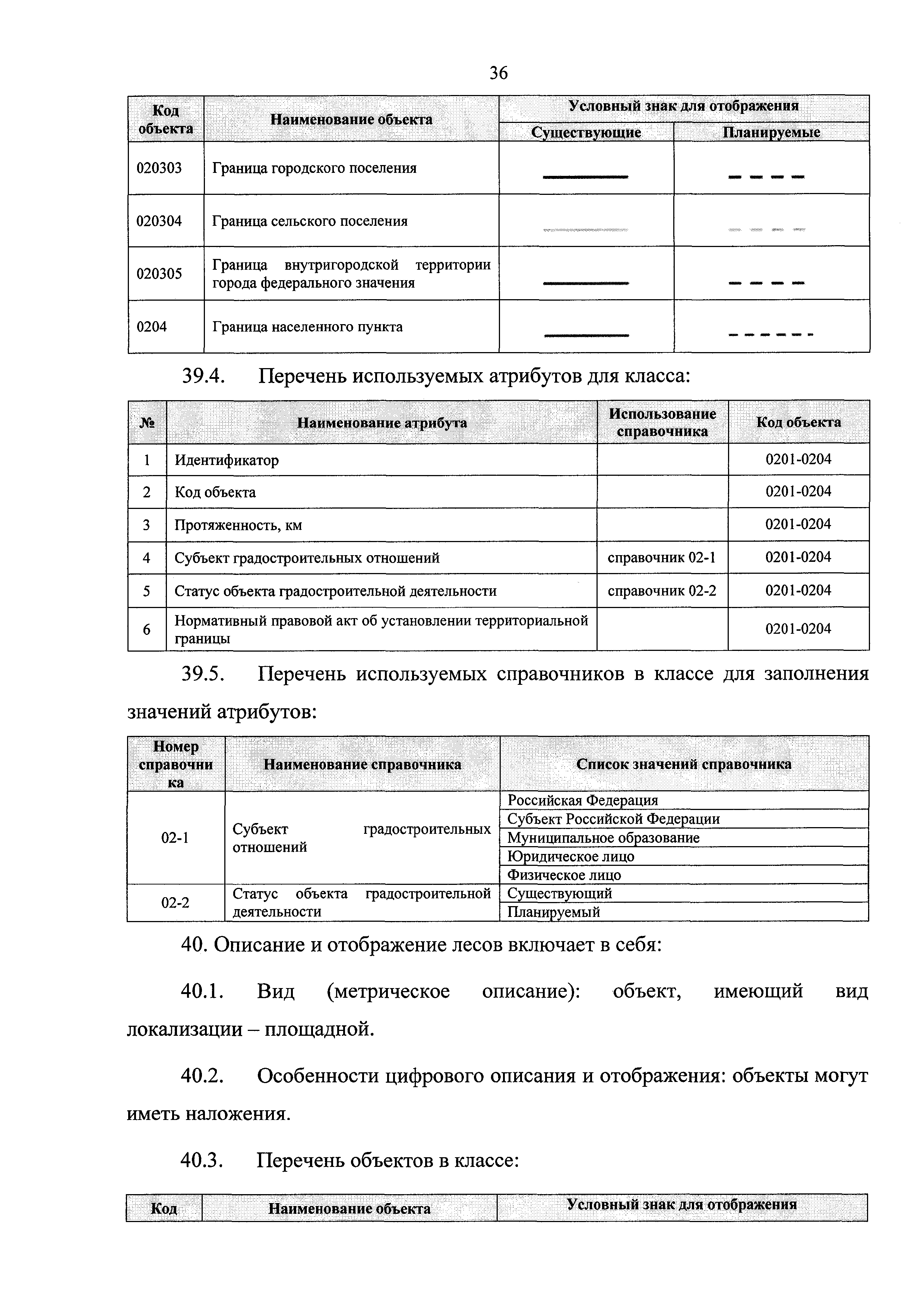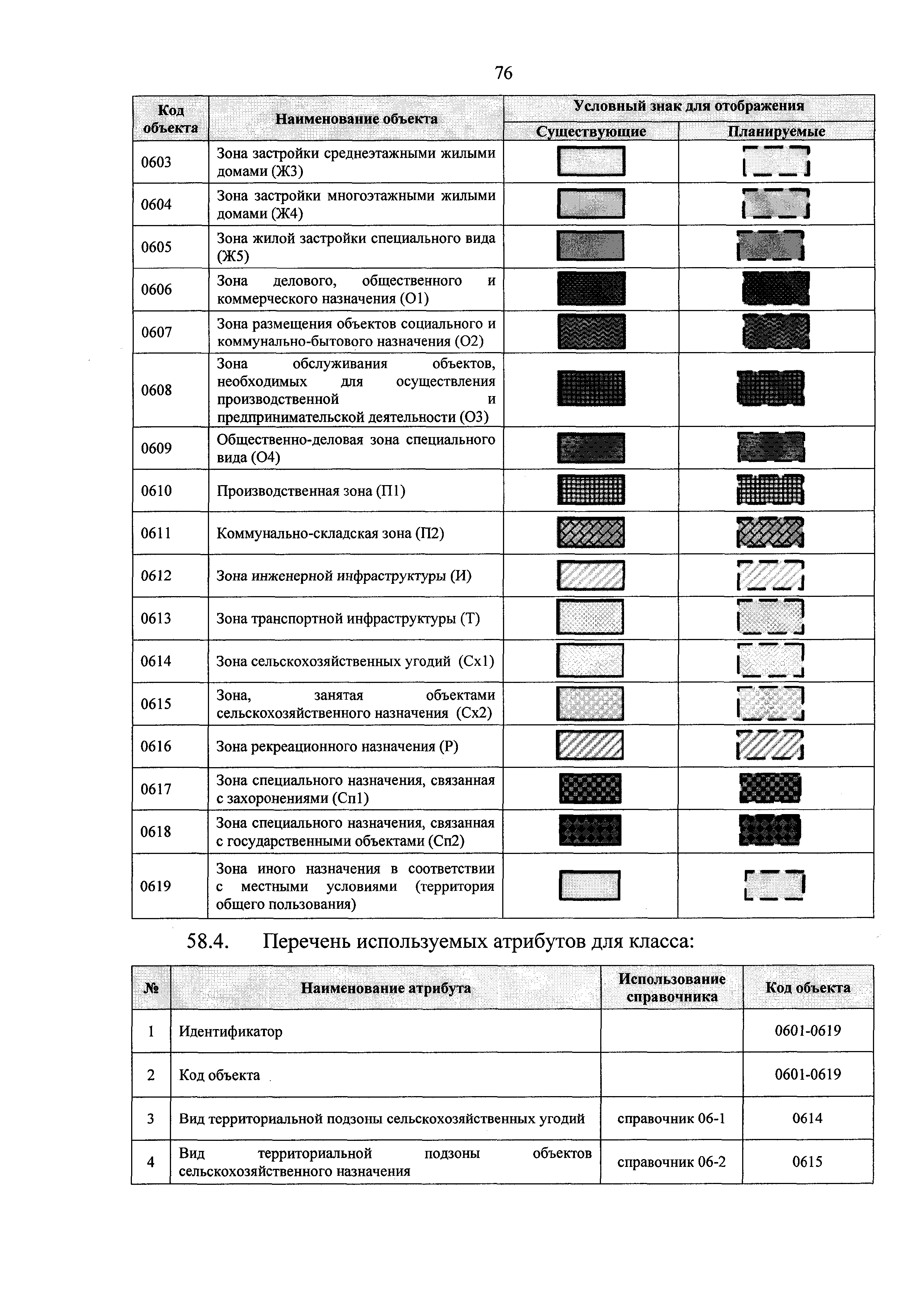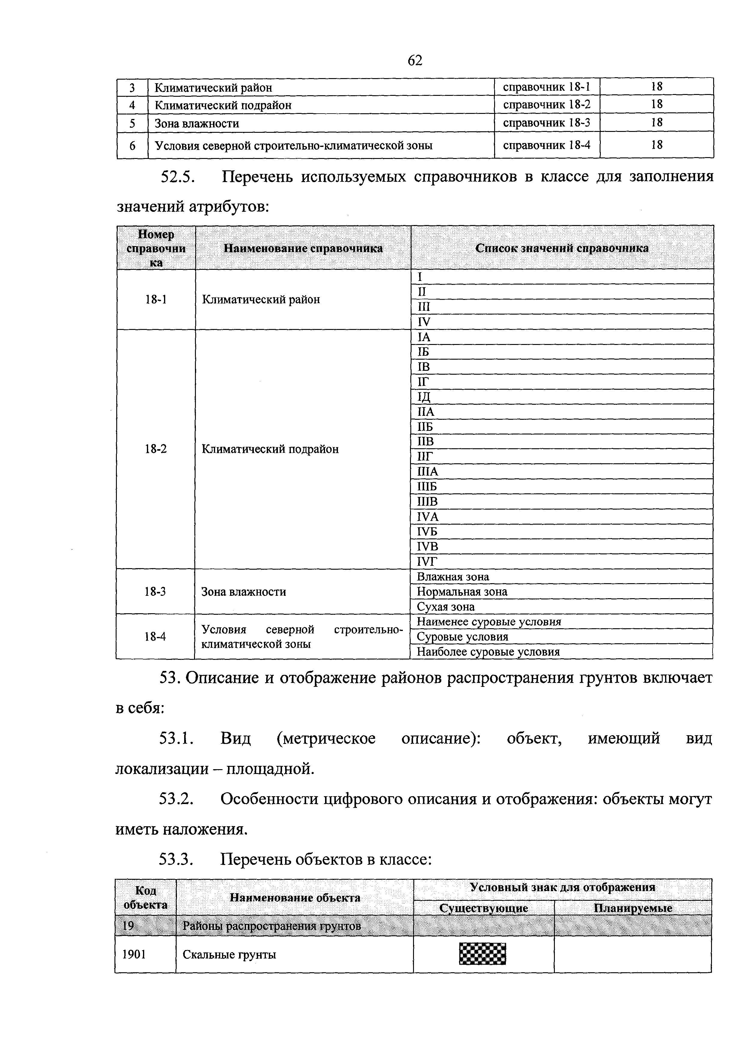 Требования к описанию и отображению в документах территориального планирования объектов федерального значения, объектов регионального значения, объектов местного значения| Статус: | утратил силу | | Название рус.: | Требования к описанию и отображению в документах территориального планирования объектов федерального значения, объектов регионального значения, объектов местного значения | | Дата добавления в базу: | 05.05.2017 | | Дата актуализации: | 01.01.2021 | | Дата введения: | 20.01.2017 | | Дата окончания срока действия: | 12.02.2018 | | Область применения: | Требования к описанию и отображению в документах территориального планирования объектов федерального значения, объектов регионального значения, объектов местного значения разработаны в целях структурирования и унификации информации об объектах федерального, регионального и местного значения, необходимых для подготовки документов территориального планирования Российской Федерации, субъектов Российской Федерации и муниципальных образований | | Оглавление: | I. Общие положения II. Общие правила цифрового описания объектов III. Правила цифрового описания площадных объектов IV. Правила цифрового описания линейных объектов V. Правила цифрового описания точечных объектов VI. Правила атрибутивного (семантического) описания объектов VII. Правила цифрового описания подписей VIII. Требования к описанию и отображению объектов капитального строительства IX. Требования к описанию и отображению иных объектов X. Требования к описанию и отображению территорий XI. Перечень слоев пространственных данных XII. Структура атрибутивных данных XIII. Справочники (перечень текстовых значений атрибутов) | | Утверждён: | 07.12.2016 Министерство экономического развития РФ (793)
