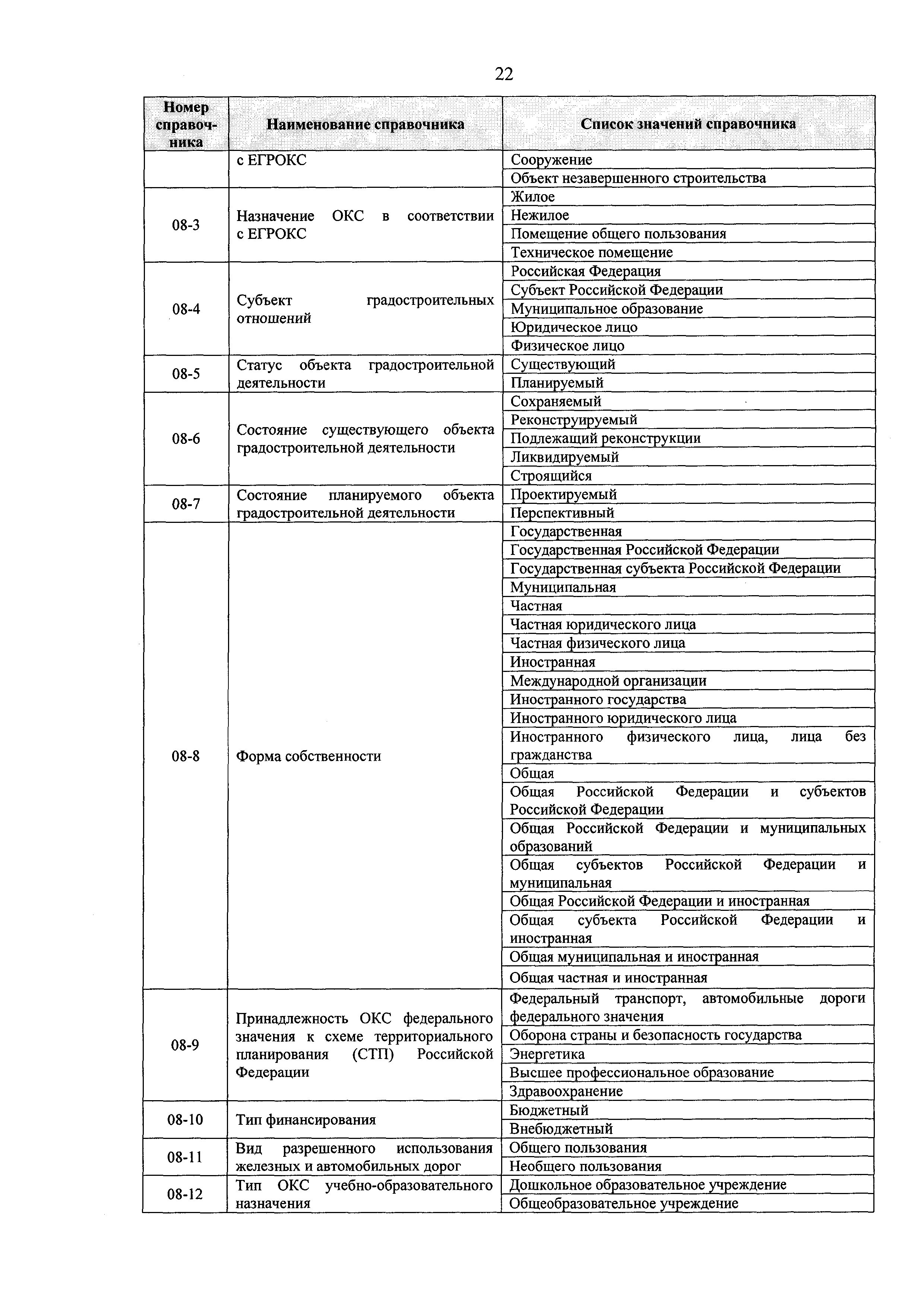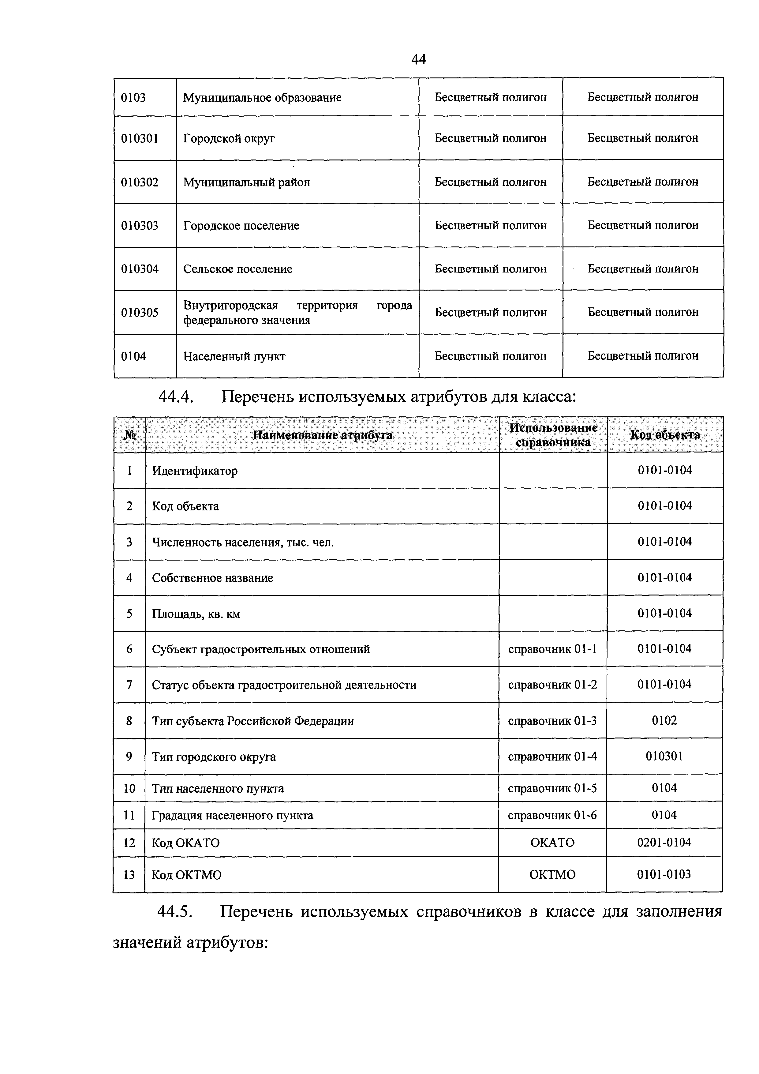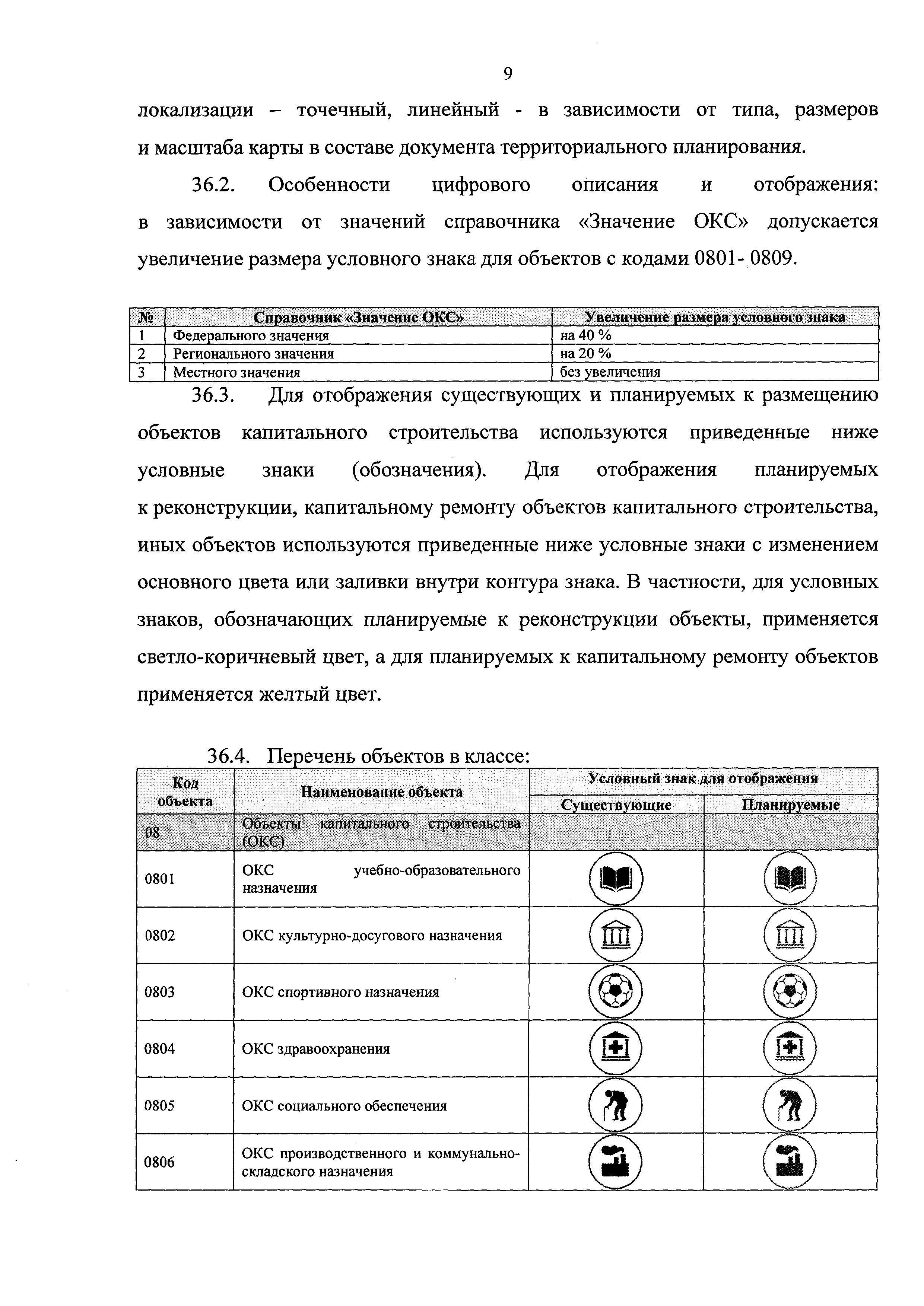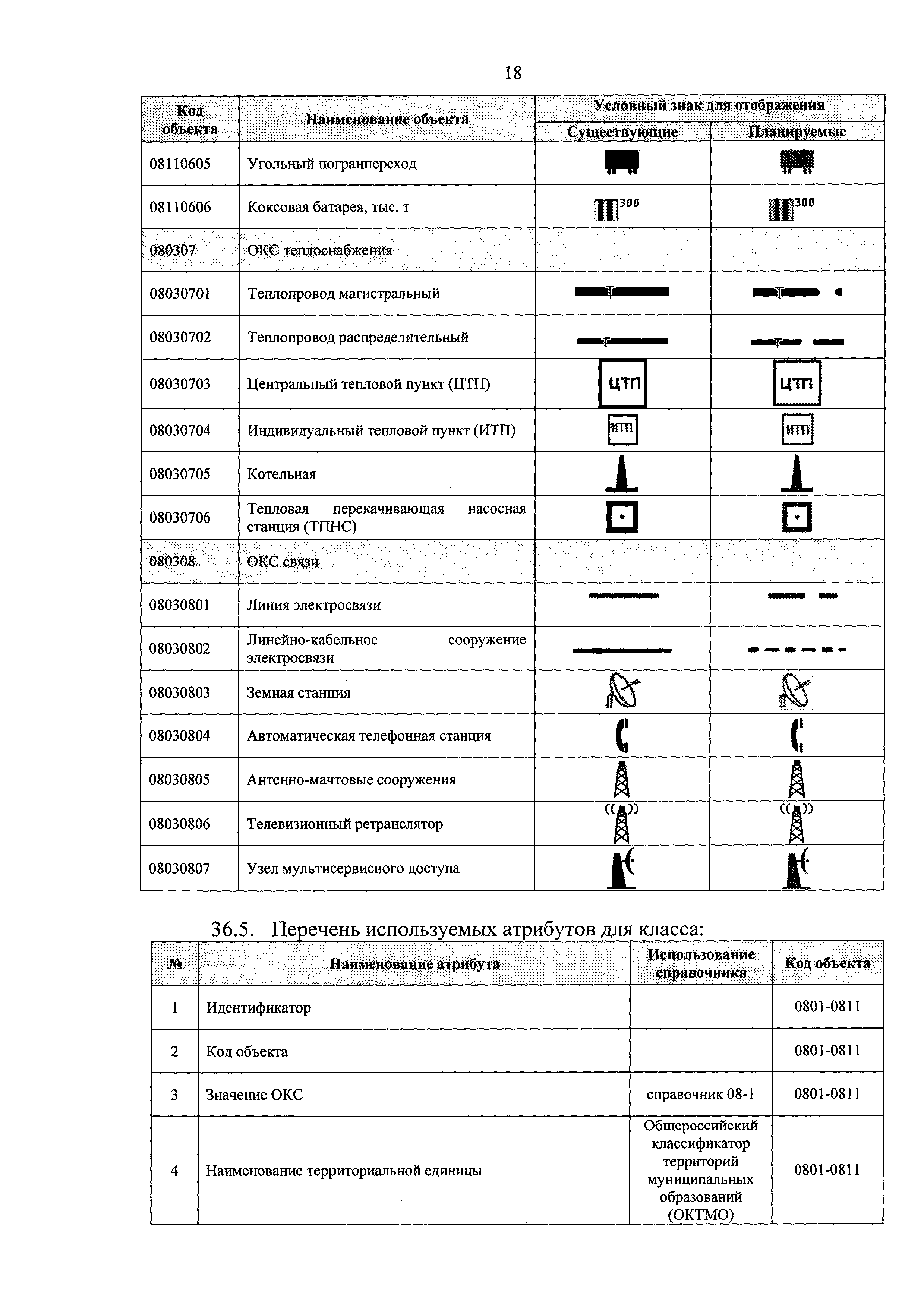 Требования к описанию и отображению в документах территориального планирования объектов федерального значения, объектов регионального значения, объектов местного значения| Статус: | утратил силу | | Название рус.: | Требования к описанию и отображению в документах территориального планирования объектов федерального значения, объектов регионального значения, объектов местного значения | | Дата добавления в базу: | 05.05.2017 | | Дата актуализации: | 01.01.2021 | | Дата введения: | 20.01.2017 | | Дата окончания срока действия: | 12.02.2018 | | Область применения: | Требования к описанию и отображению в документах территориального планирования объектов федерального значения, объектов регионального значения, объектов местного значения разработаны в целях структурирования и унификации информации об объектах федерального, регионального и местного значения, необходимых для подготовки документов территориального планирования Российской Федерации, субъектов Российской Федерации и муниципальных образований | | Оглавление: | I. Общие положения II. Общие правила цифрового описания объектов III. Правила цифрового описания площадных объектов IV. Правила цифрового описания линейных объектов V. Правила цифрового описания точечных объектов VI. Правила атрибутивного (семантического) описания объектов VII. Правила цифрового описания подписей VIII. Требования к описанию и отображению объектов капитального строительства IX. Требования к описанию и отображению иных объектов X. Требования к описанию и отображению территорий XI. Перечень слоев пространственных данных XII. Структура атрибутивных данных XIII. Справочники (перечень текстовых значений атрибутов) | | Утверждён: | 07.12.2016 Министерство экономического развития РФ (793)