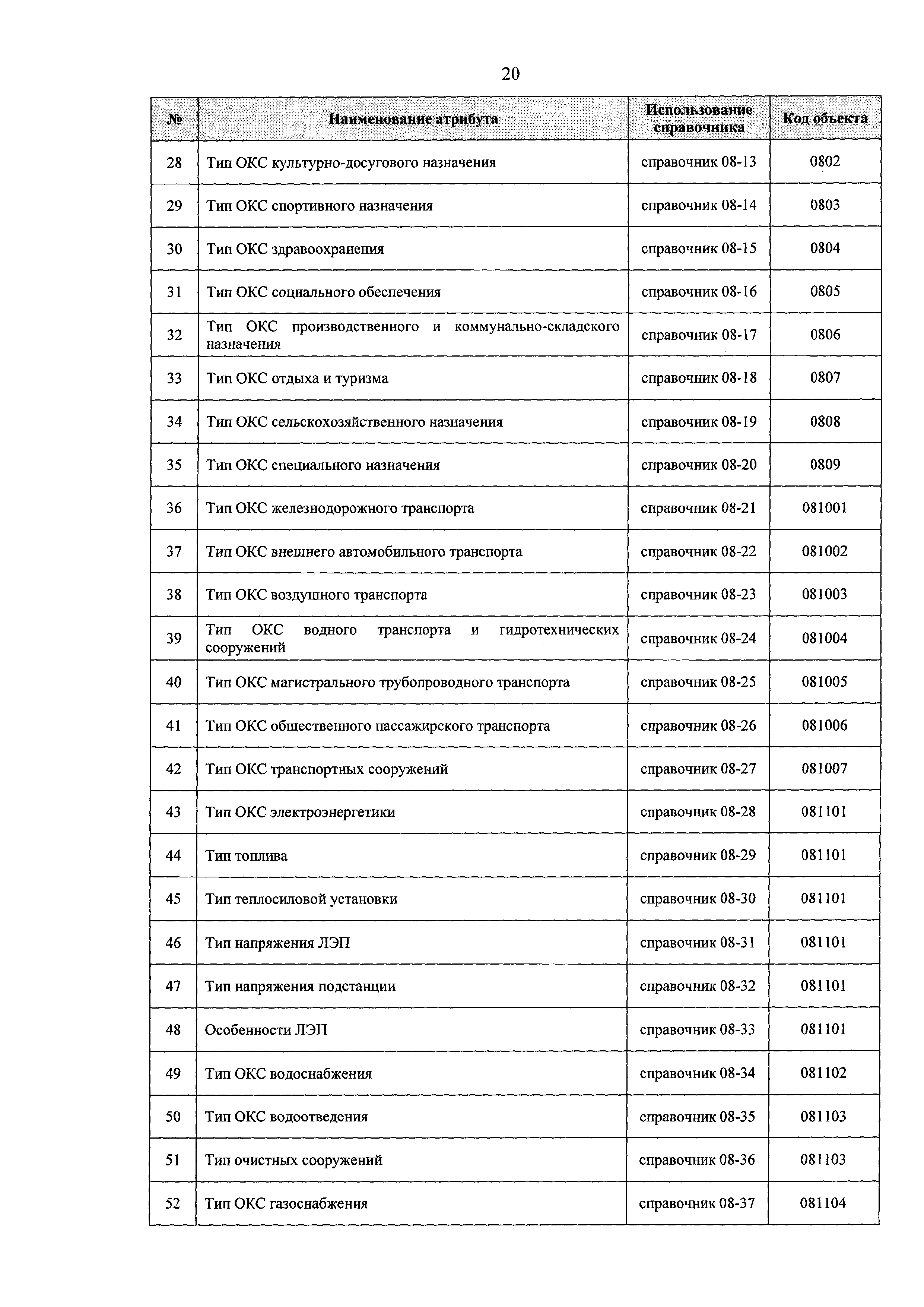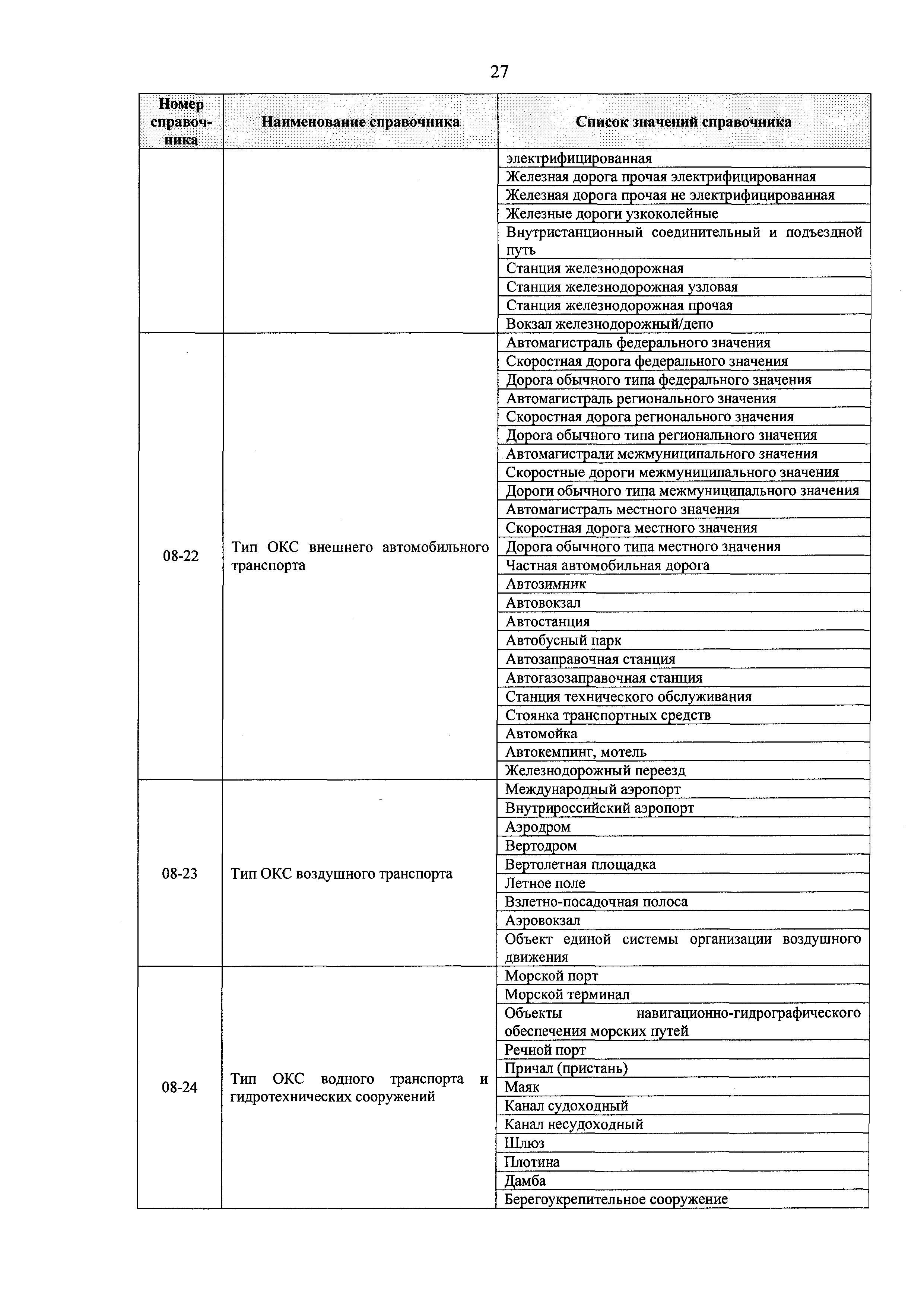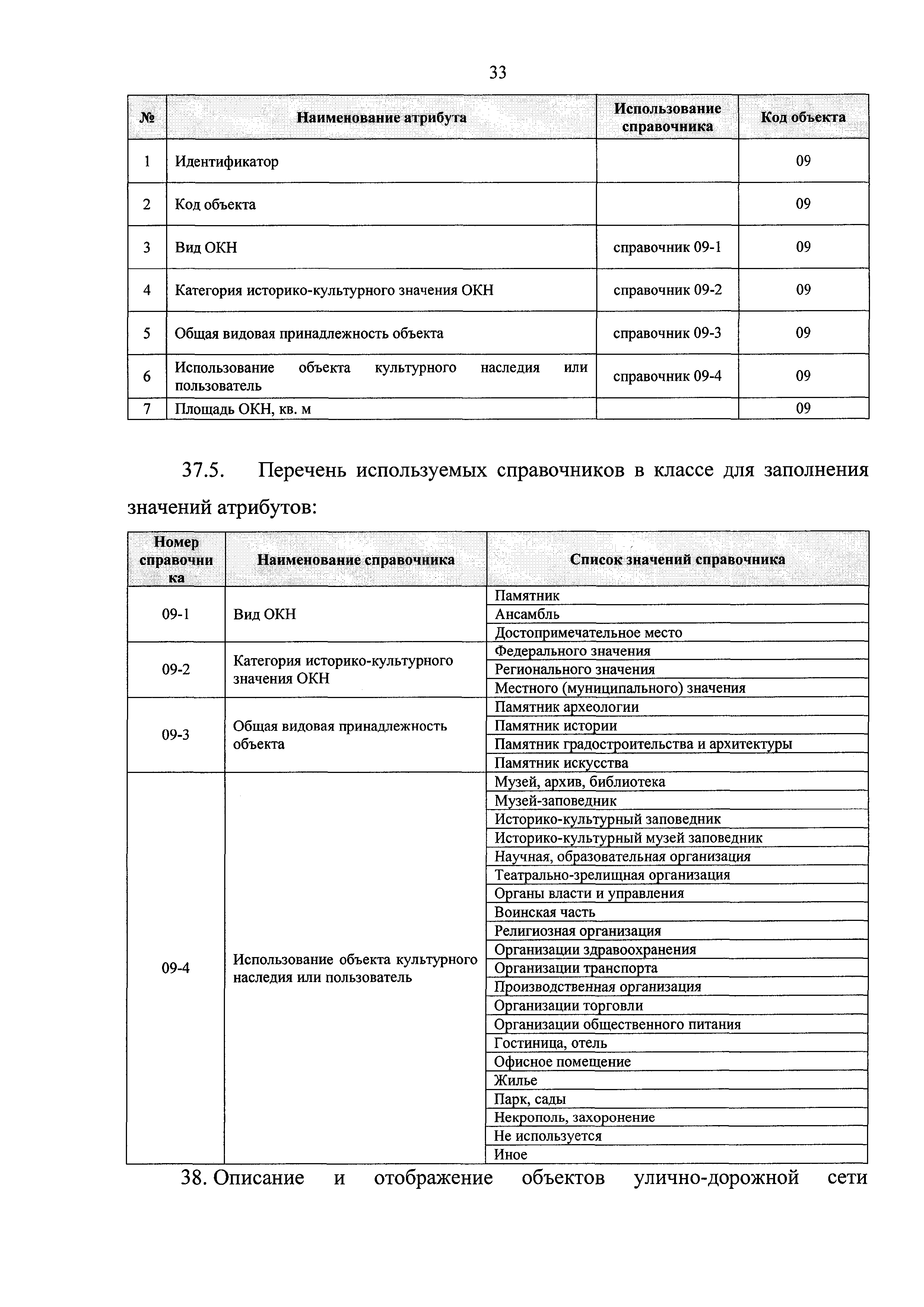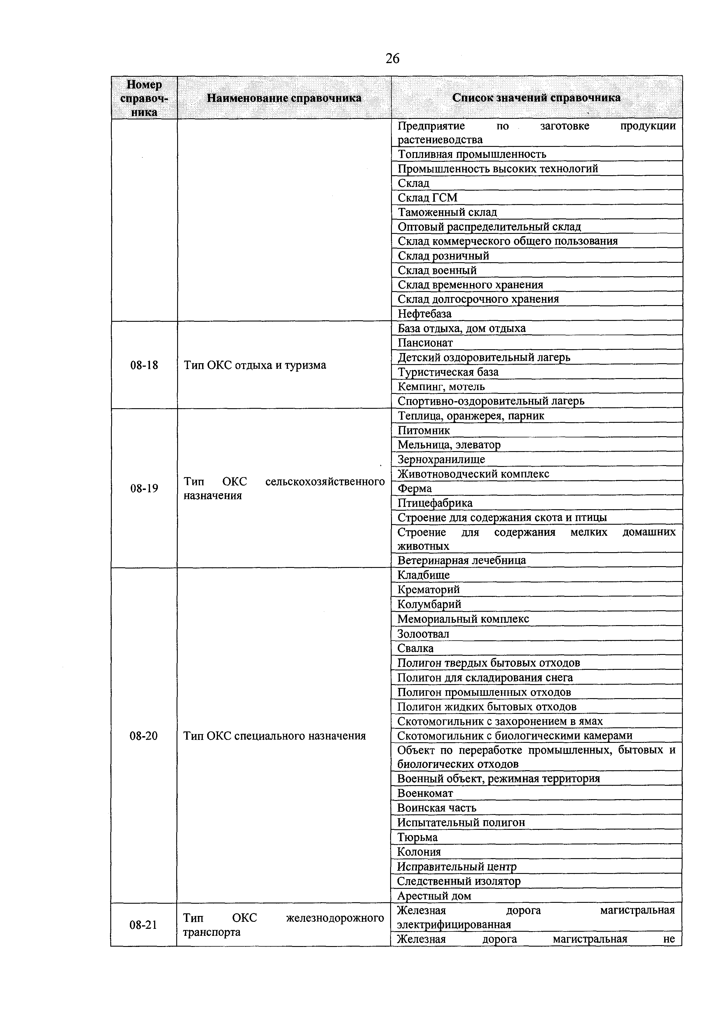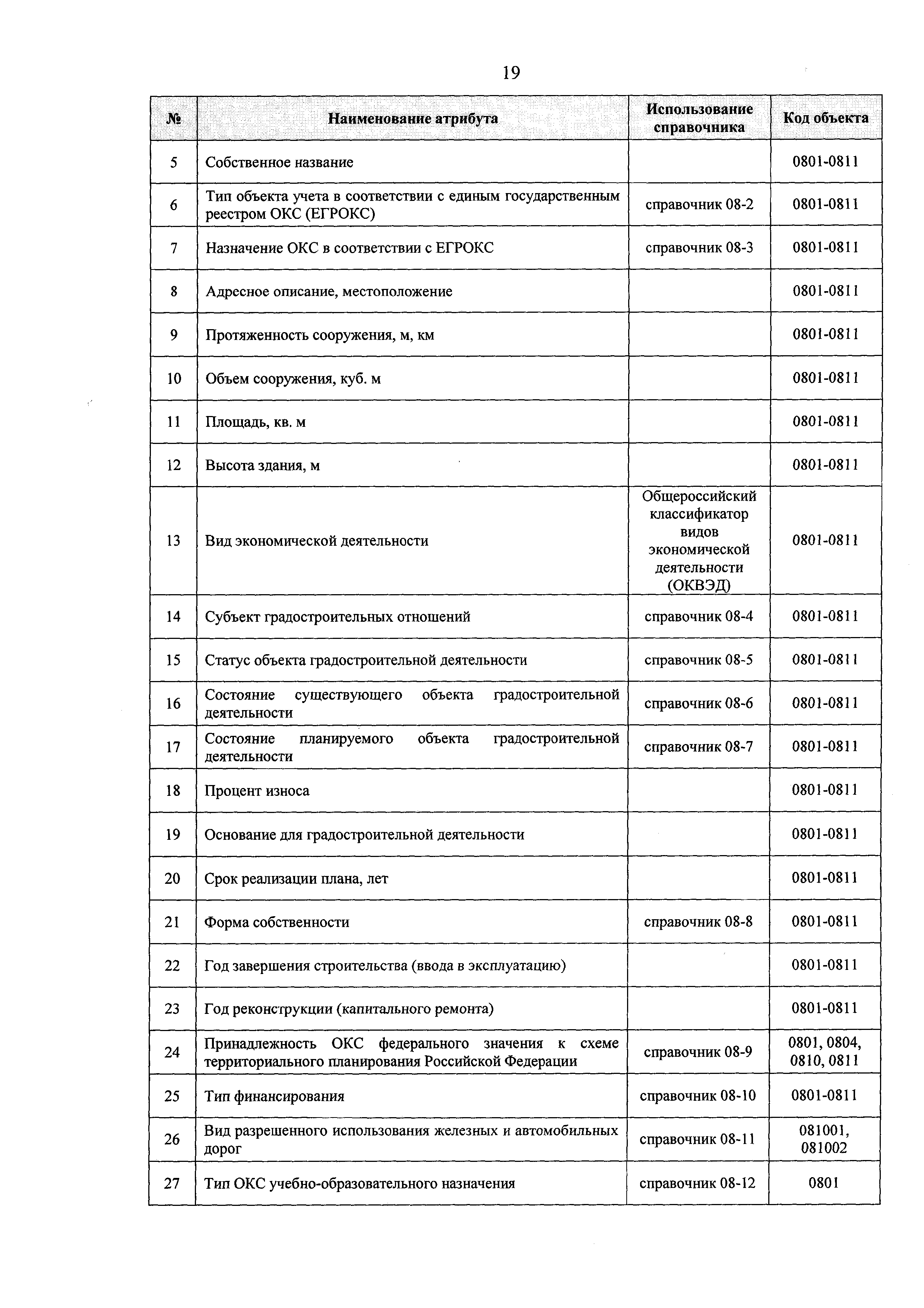 Требования к описанию и отображению в документах территориального планирования объектов федерального значения, объектов регионального значения, объектов местного значения| Статус: | утратил силу | | Название рус.: | Требования к описанию и отображению в документах территориального планирования объектов федерального значения, объектов регионального значения, объектов местного значения | | Дата добавления в базу: | 05.05.2017 | | Дата актуализации: | 01.01.2021 | | Дата введения: | 20.01.2017 | | Дата окончания срока действия: | 12.02.2018 | | Область применения: | Требования к описанию и отображению в документах территориального планирования объектов федерального значения, объектов регионального значения, объектов местного значения разработаны в целях структурирования и унификации информации об объектах федерального, регионального и местного значения, необходимых для подготовки документов территориального планирования Российской Федерации, субъектов Российской Федерации и муниципальных образований | | Оглавление: | I. Общие положения II. Общие правила цифрового описания объектов III. Правила цифрового описания площадных объектов IV. Правила цифрового описания линейных объектов V. Правила цифрового описания точечных объектов VI. Правила атрибутивного (семантического) описания объектов VII. Правила цифрового описания подписей VIII. Требования к описанию и отображению объектов капитального строительства IX. Требования к описанию и отображению иных объектов X. Требования к описанию и отображению территорий XI. Перечень слоев пространственных данных XII. Структура атрибутивных данных XIII. Справочники (перечень текстовых значений атрибутов) | | Утверждён: | 07.12.2016 Министерство экономического развития РФ (793)