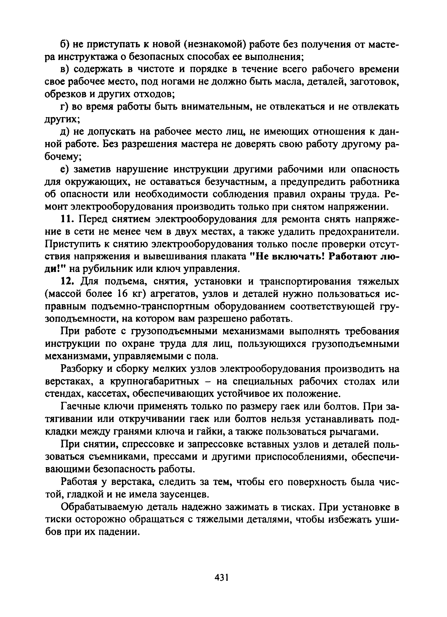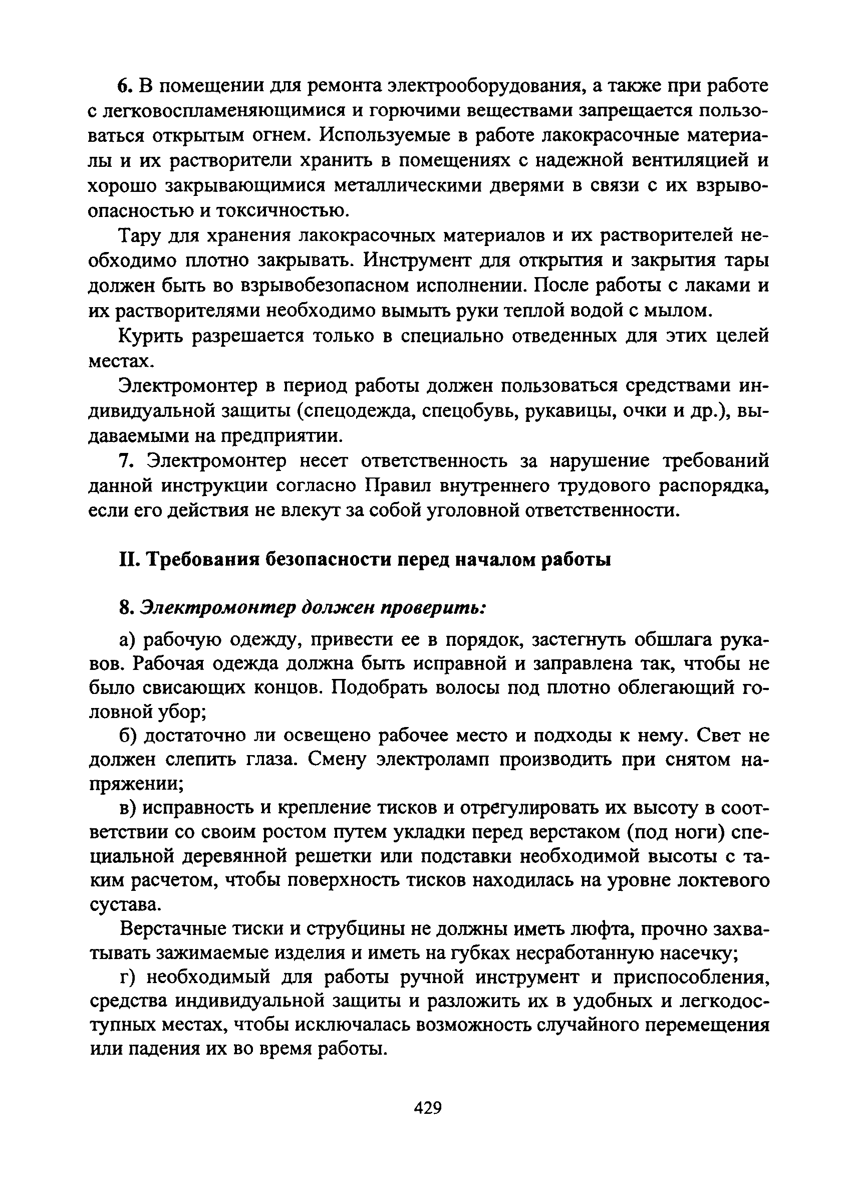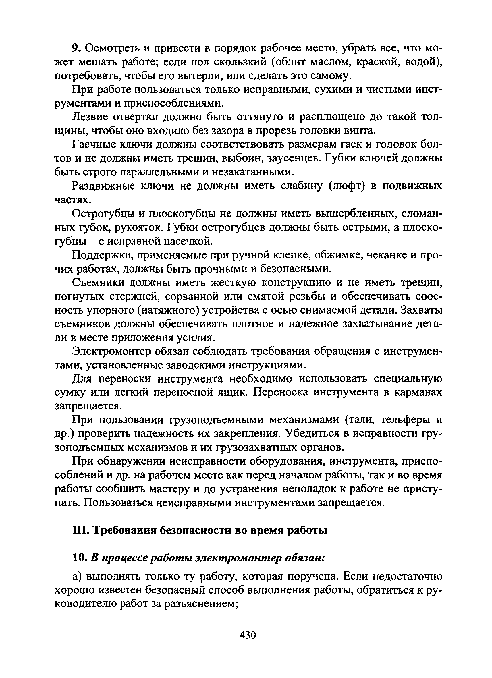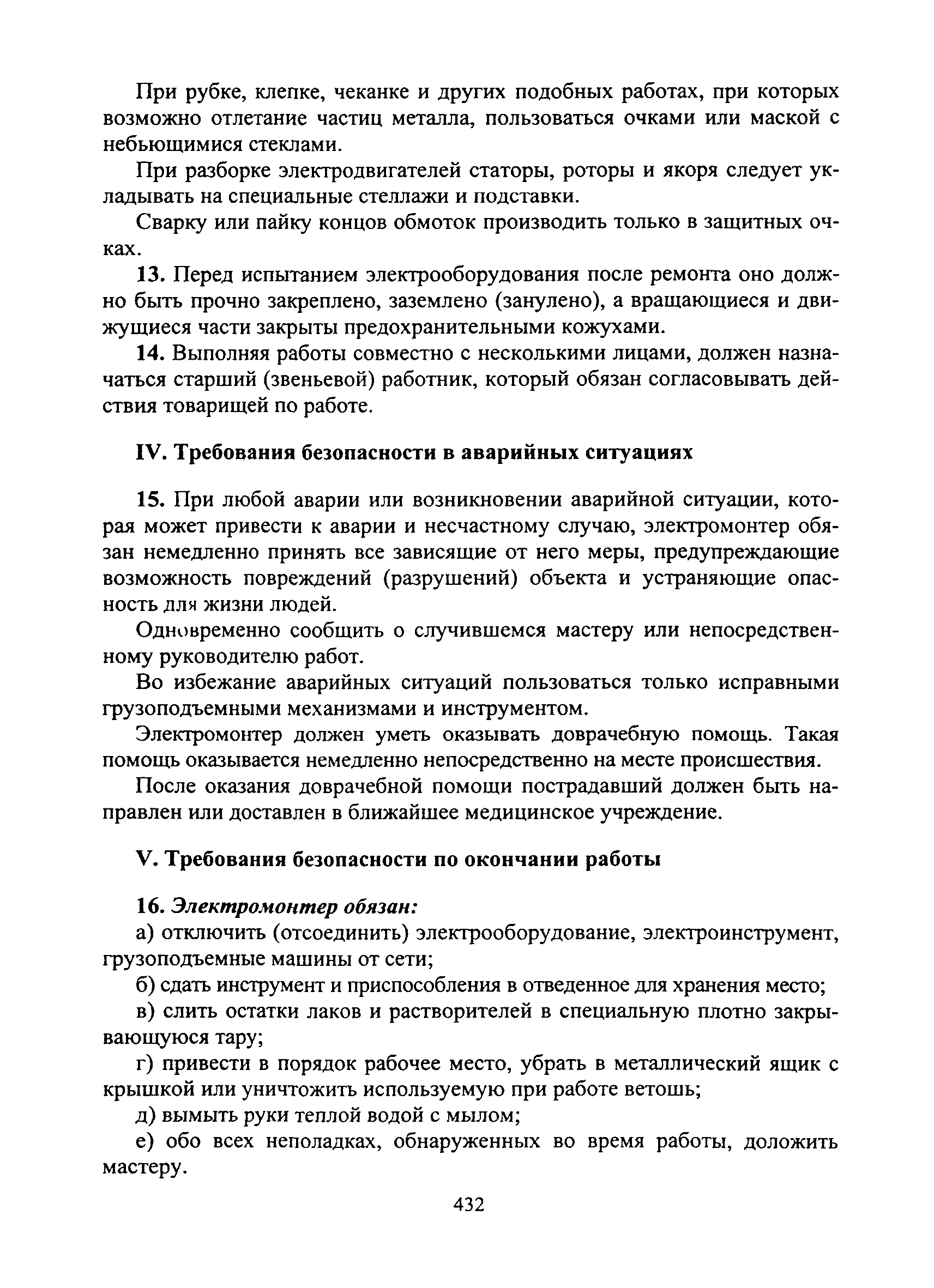 | Оглавление: | I Общие требования безопасности II Требования безопасности перед началом работы III Требования безопасности во время работы IV Требования безопасности в аварийных ситуациях V Требования безопасности по окончании работы |