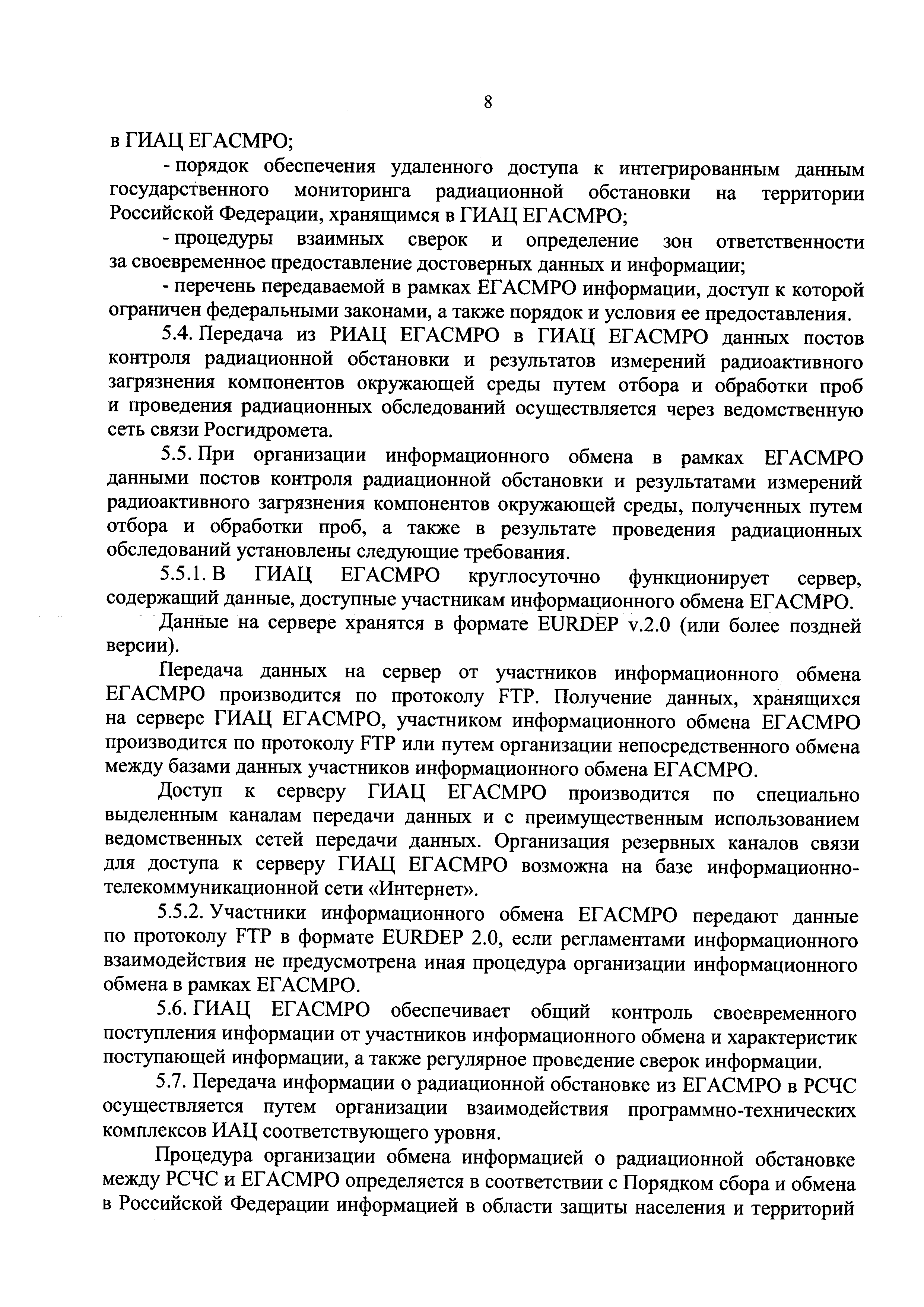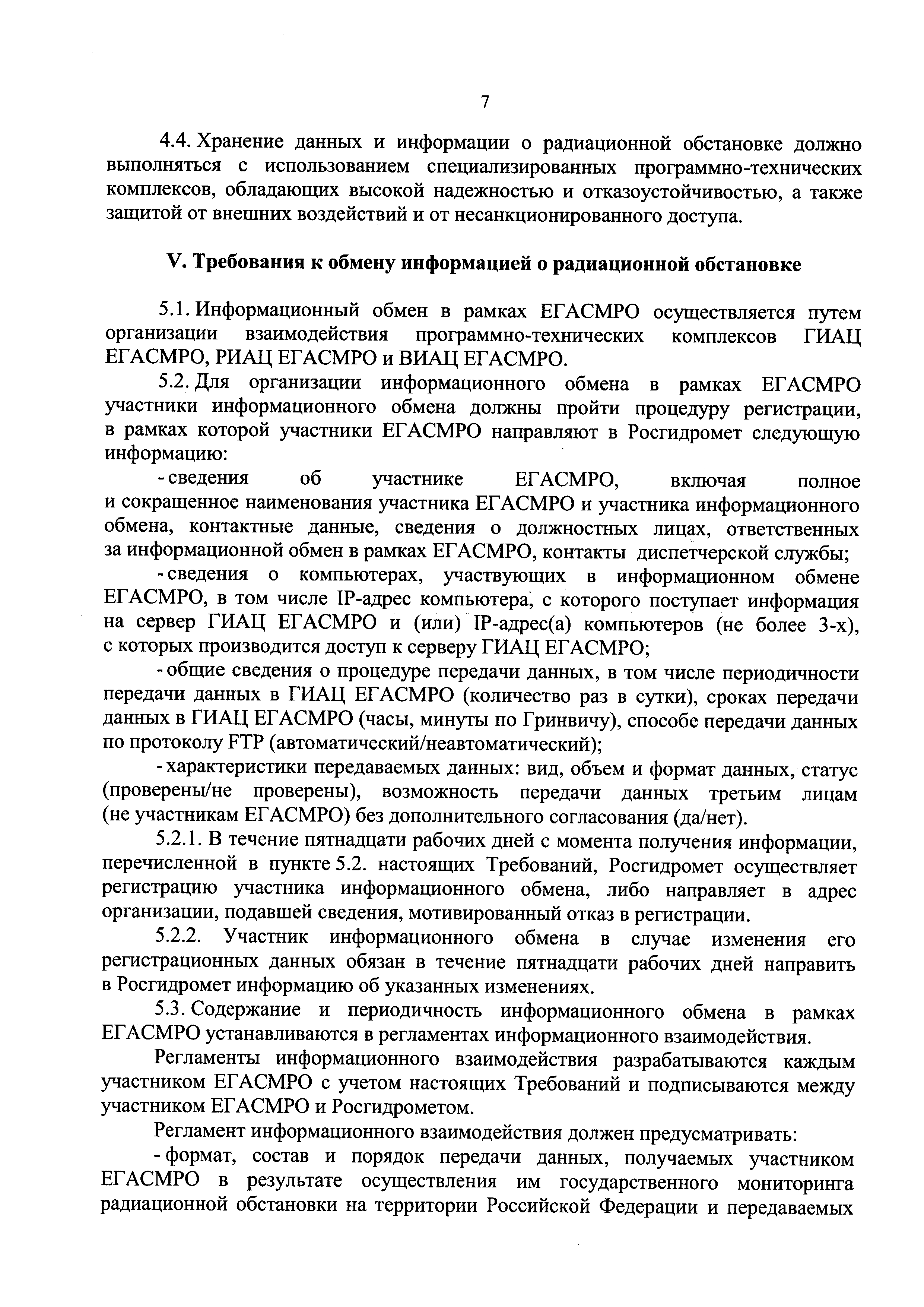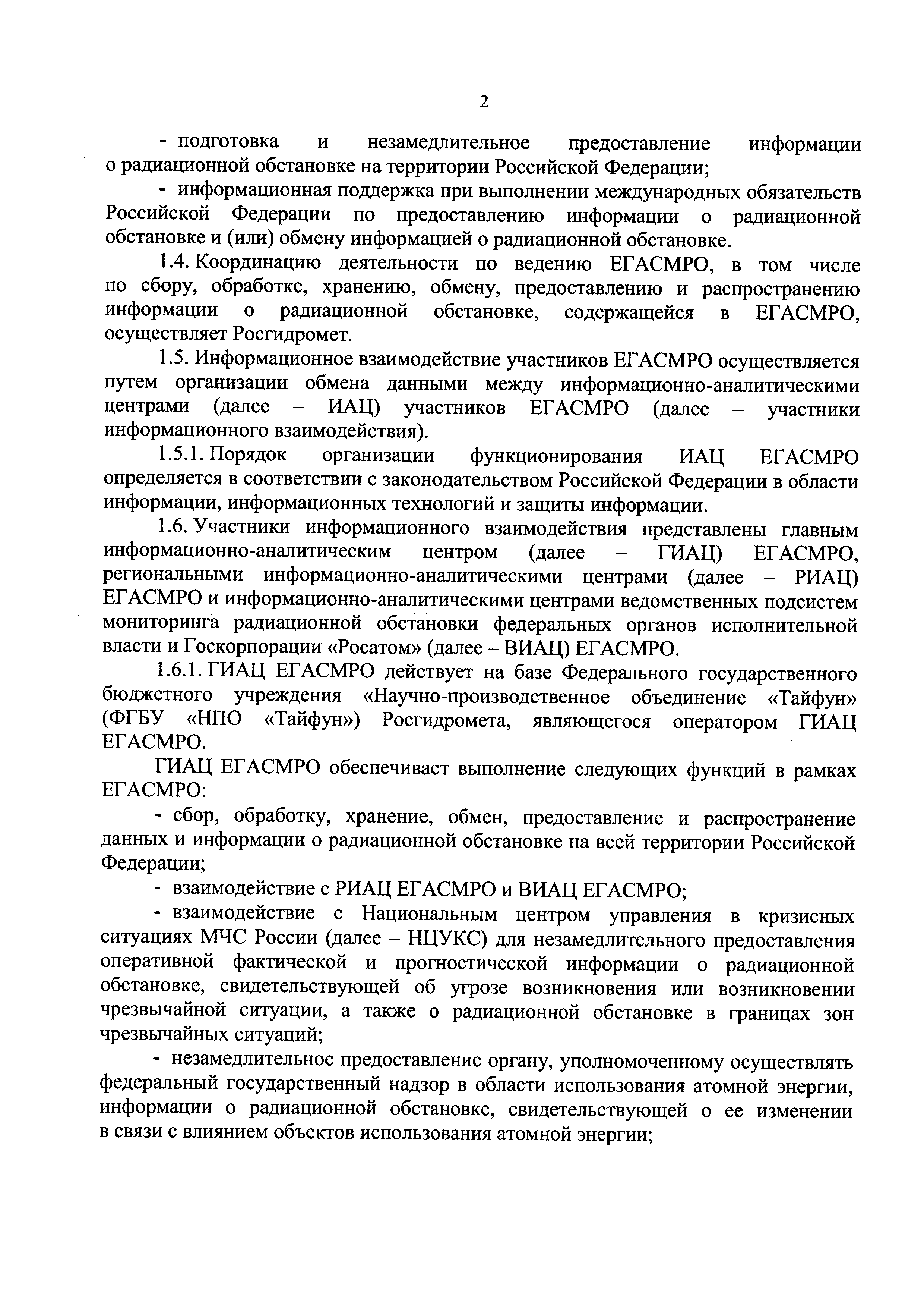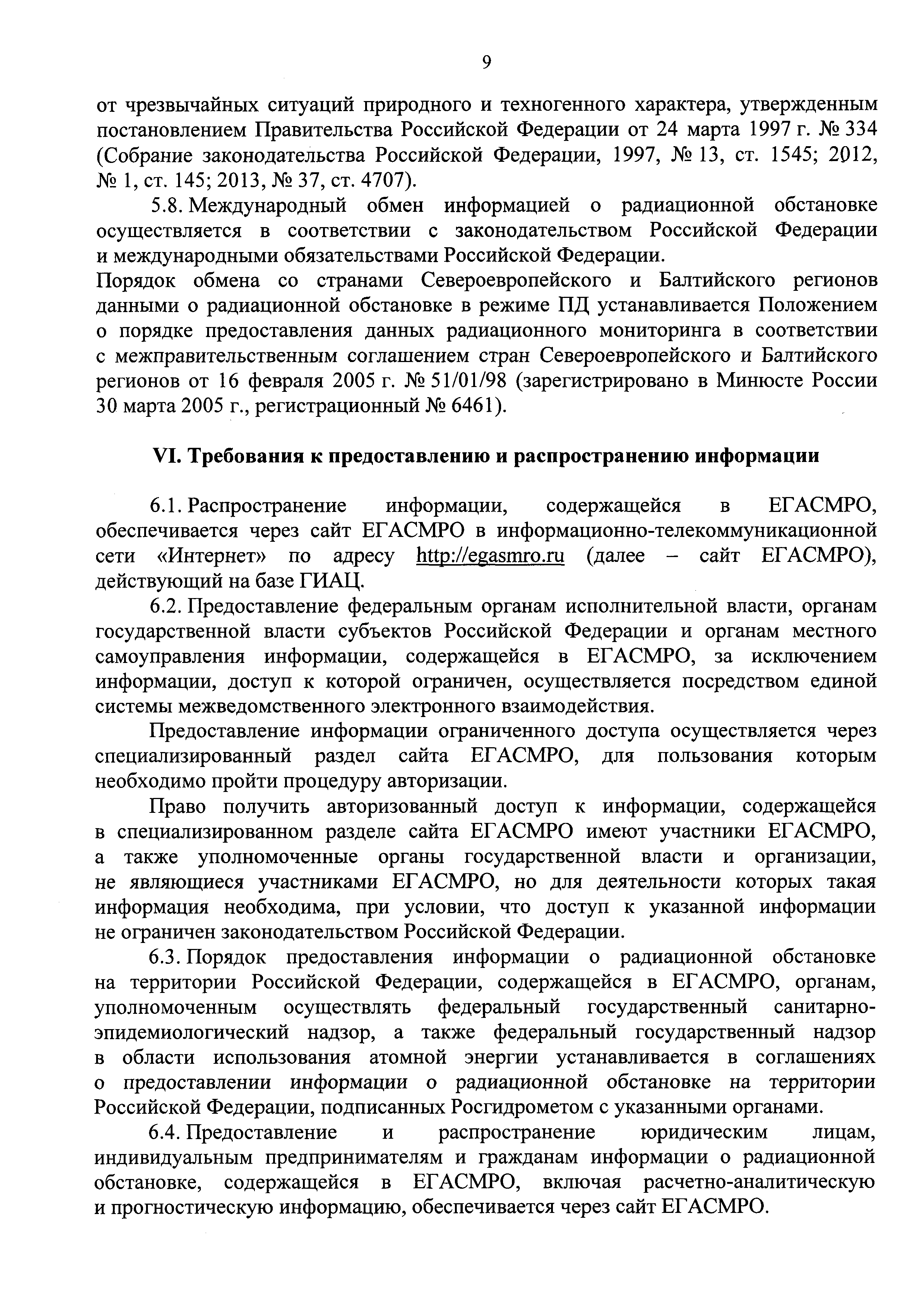 Требования к сбору, обработке, хранению, предоставлению, распространению информации о радиационной обстановке, содержащейся в единой государственной автоматизированной системе мониторинга радиационной обстановки на территории Российской Федерации и ее функциональных подсистемах, а также к обмену информацией о радиационной обстановке| Статус: | действует | | Название рус.: | Требования к сбору, обработке, хранению, предоставлению, распространению информации о радиационной обстановке, содержащейся в единой государственной автоматизированной системе мониторинга радиационной обстановки на территории Российской Федерации и ее функциональных подсистемах, а также к обмену информацией о радиационной обстановке | | Дата добавления в базу: | 05.05.2017 | | Дата актуализации: | 01.01.2021 | | Дата введения: | 20.01.2017 | | Область применения: | Документ устанавливает требования к сбору, обработке, хранению, предоставлению, распространению информации о радиационной обстановке, содержащейся в единой государственной автоматизированной системе мониторинга радиационной обстановки на территории Российской Федерации и ее функциональных подсистемах, а также к обмену такой информацией | | Оглавление: | I. Общие положения II. Требования к сбору информации III. Требования к обработке данных IV. Требования к хранению информации о радиационной обстановке V. Требования к обмену информацией о радиационной обстановке VI. Требования к предоставлению и распространению информации | | Утверждён: | 06.12.2016 Министерство природных ресурсов и экологии Российской Федерации (638)