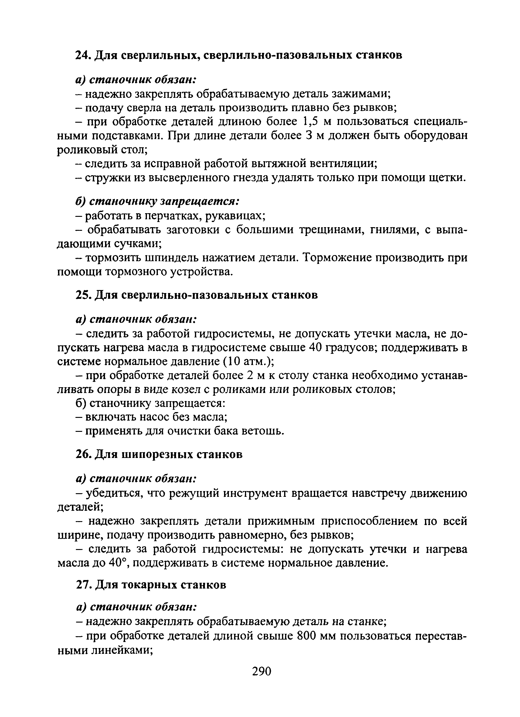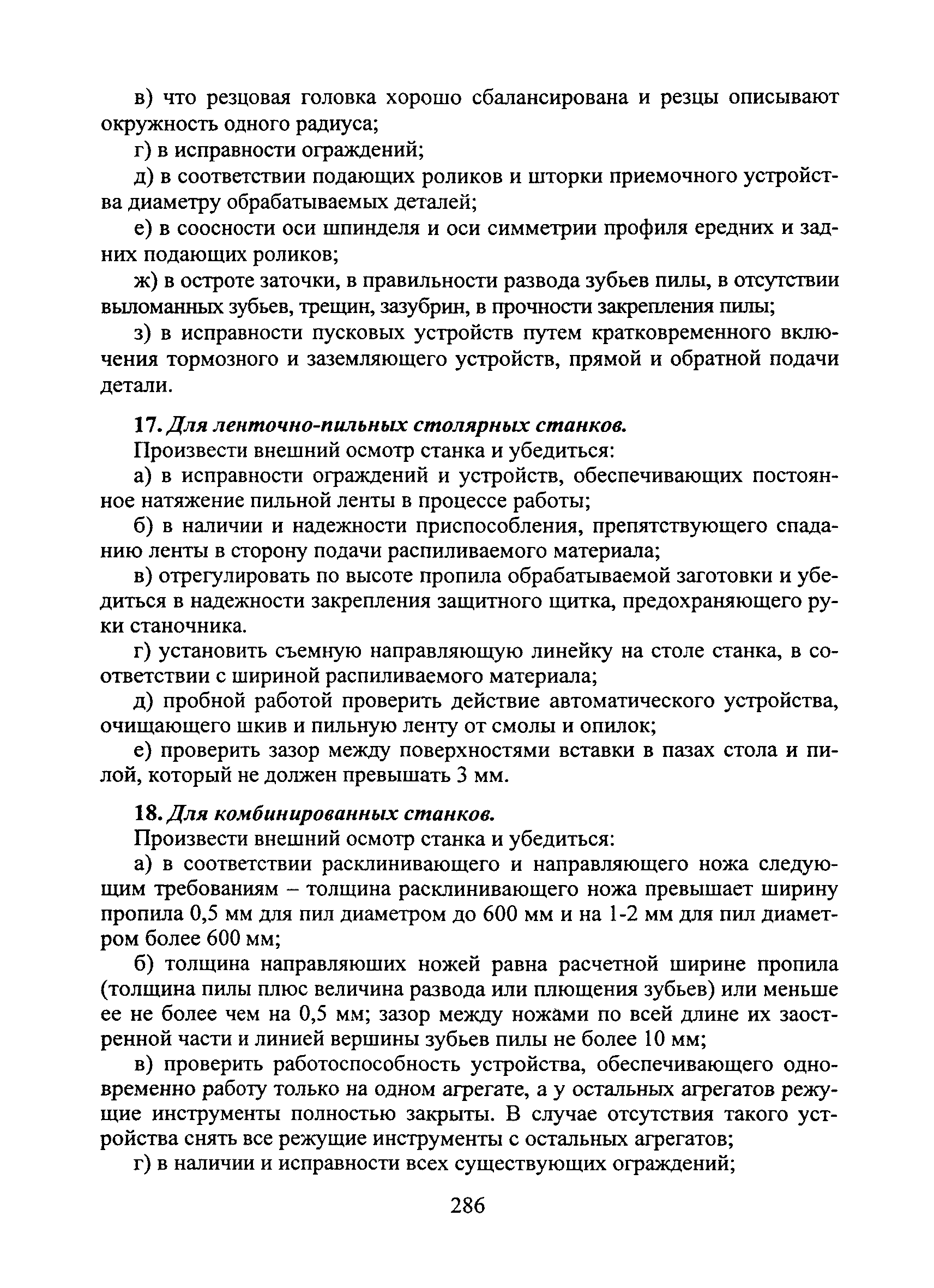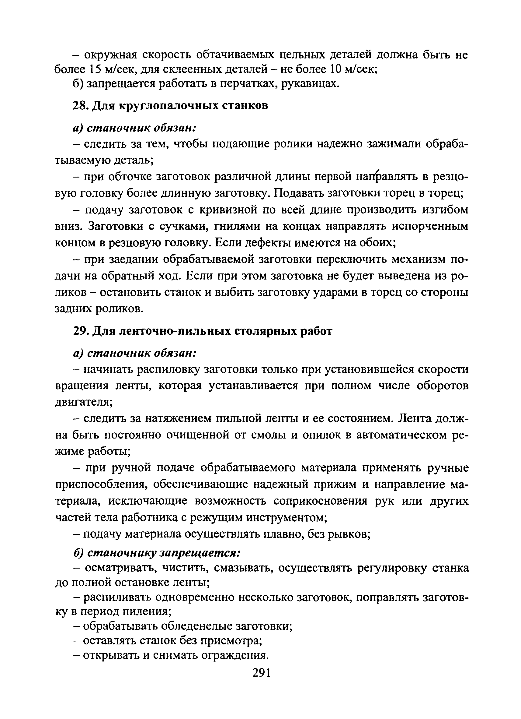 Типовая инструкция № 105 по охране труда для станочника-распиловщика (деревообрабатывающих станков: однопильные, многопильные рейсмусовые, четырехсторонние строгальные, шипорезные, токарные, круглопилочные, ленточно-пильные, столярные, комбинированные)| Статус: | справочные материалы, мп, тпр | | Название рус.: | Типовая инструкция № 105 по охране труда для станочника-распиловщика (деревообрабатывающих станков: однопильные, многопильные рейсмусовые, четырехсторонние строгальные, шипорезные, токарные, круглопилочные, ленточно-пильные, столярные, комбинированные) | | Дата добавления в базу: | 05.05.2017 | | Дата актуализации: | 01.01.2021 | | Область применения: | Инструкции по охране труда являются нормативными актами, устанавливающими требования по охране труда при выполнении различных работ гражданским персоналом и военнослужащими в воинских частях и организациях Вооруженных Сил Российской Федерации. | | Оглавление: | I Общие требования безопасности II Требования безопасности перед началом работы III Требования безопасности во время работы IV Требования безопасности в аварийных ситуациях V Требования безопасности по окончании работы | | Разработан: | Управление труда и заработной платы гражданского персонала Вооруженных Сил Российской Федерации