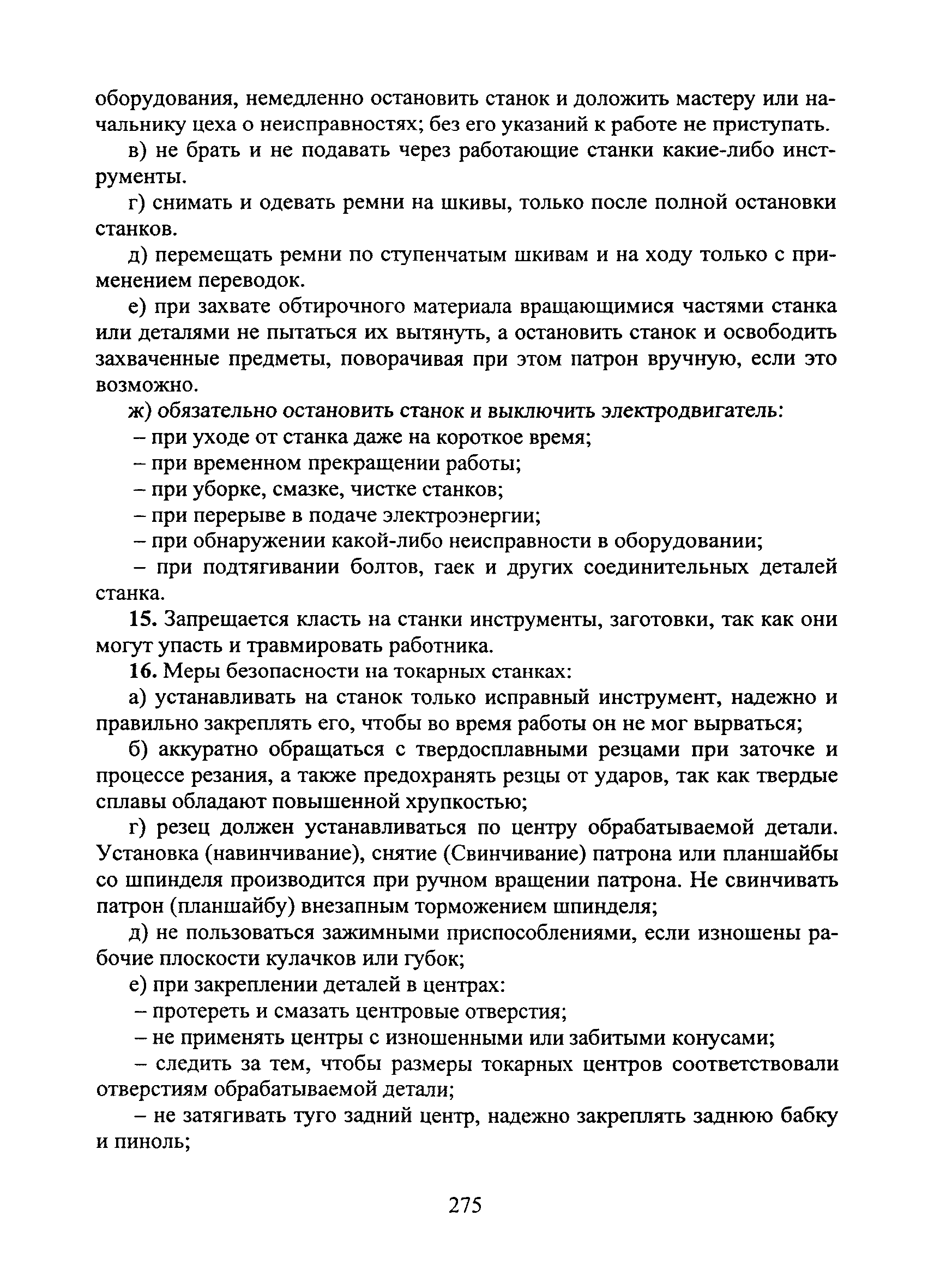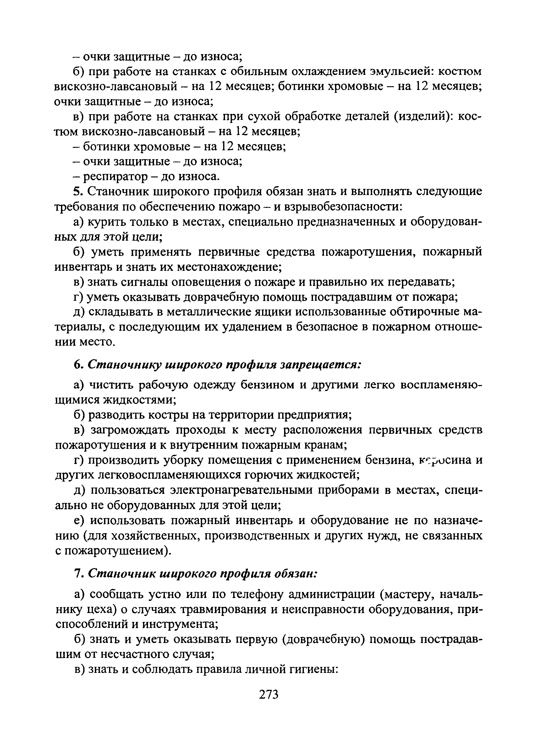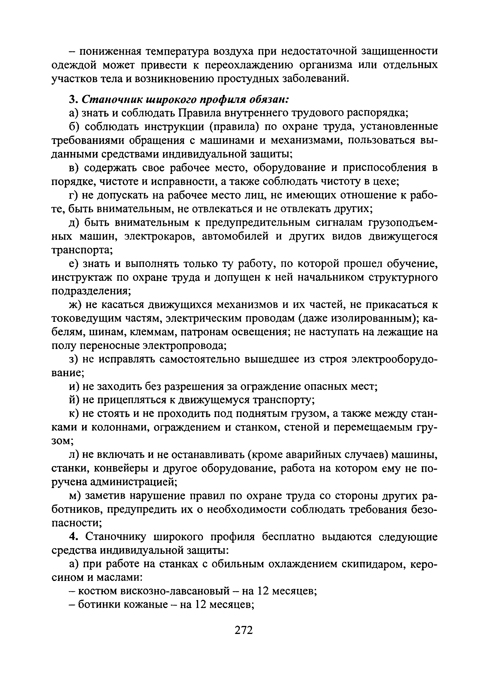 | Оглавление: | I Общие требования безопасности II Требования безопасности перед началом работы III Требования безопасности во время работы IV Требования безопасности в аварийных ситуациях V Требования безопасности по окончании работы |