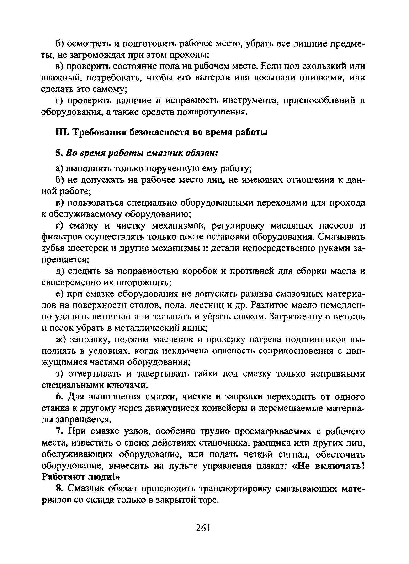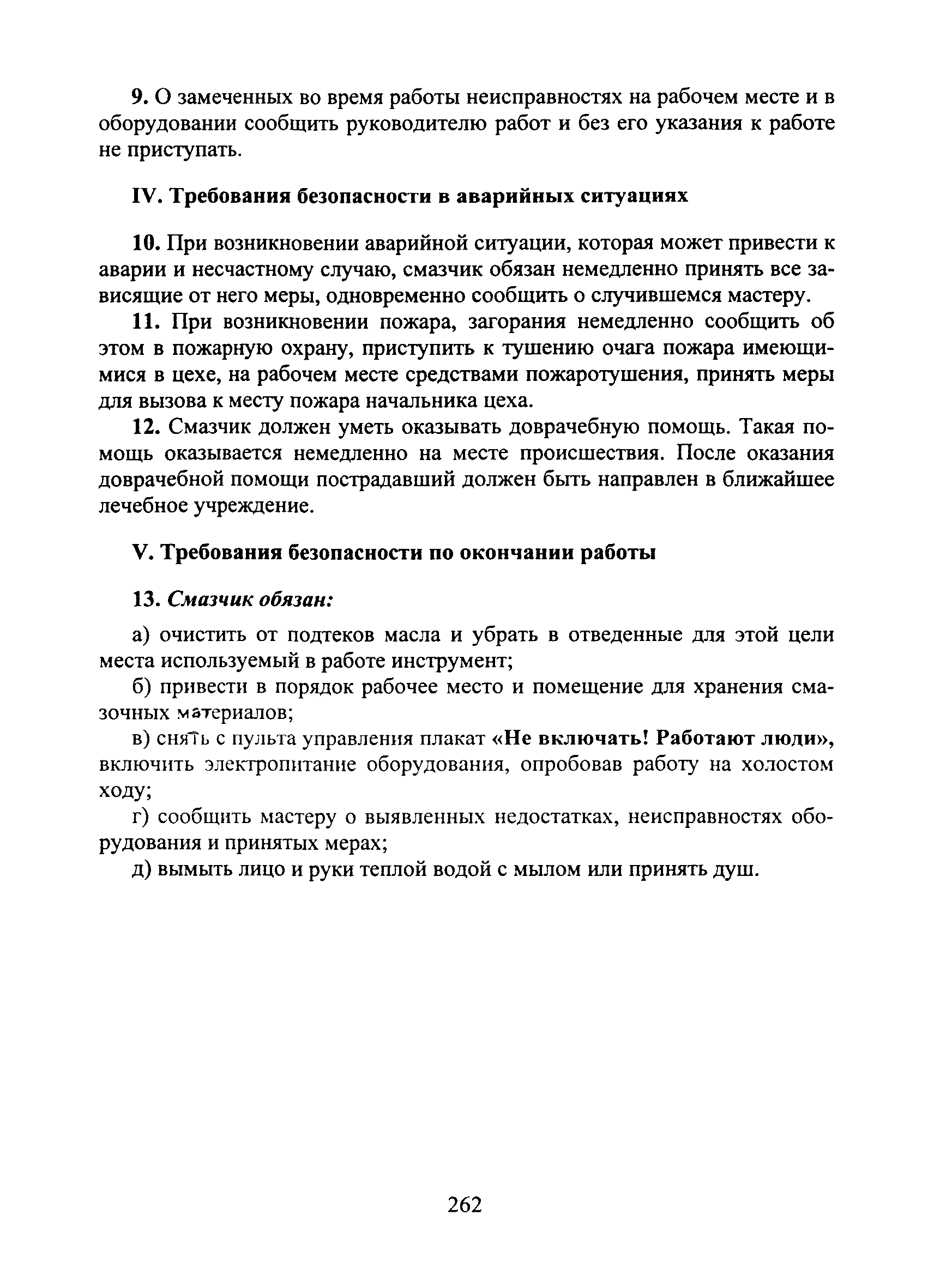 | Оглавление: | I Общие требования безопасности II Требования безопасности перед началом работы III Требования безопасности во время работы IV Требования безопасности в аварийных ситуациях V Требования безопасности по окончании работы |