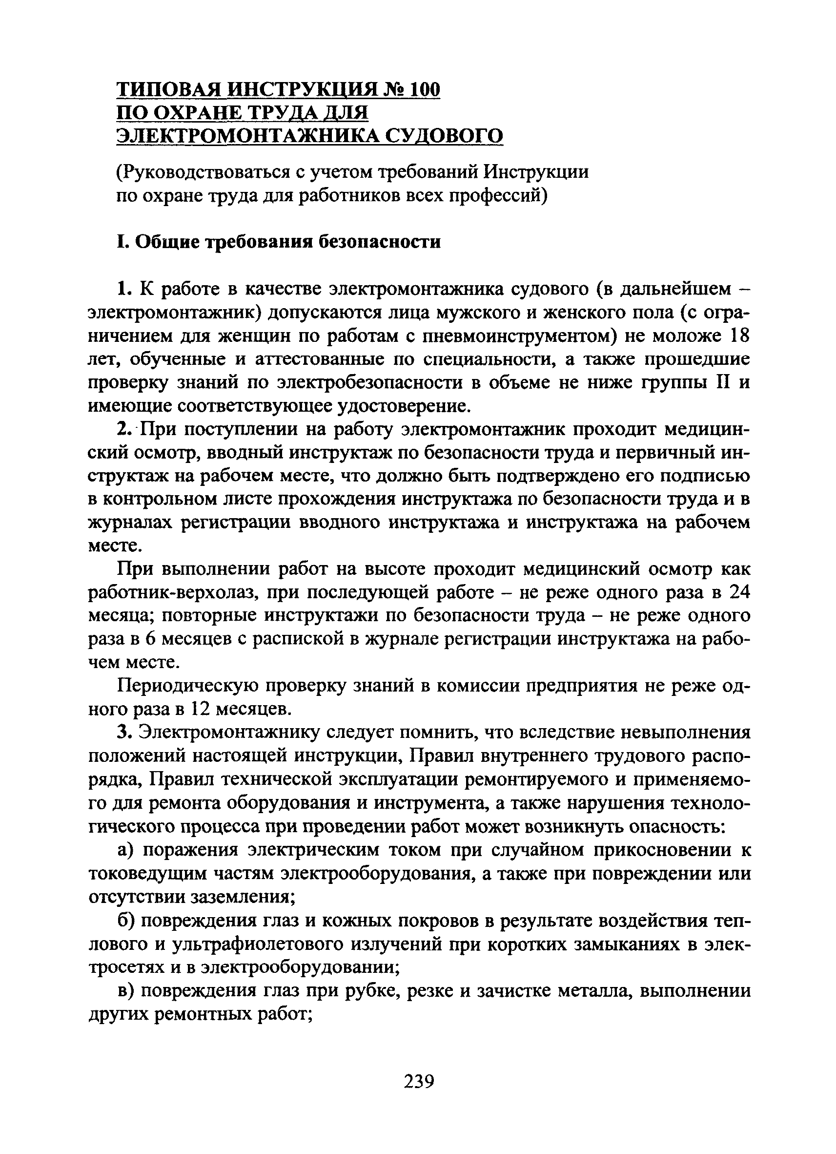 | Название рус.: | Типовая инструкция № 100 по охране труда для электромонтажника судового |