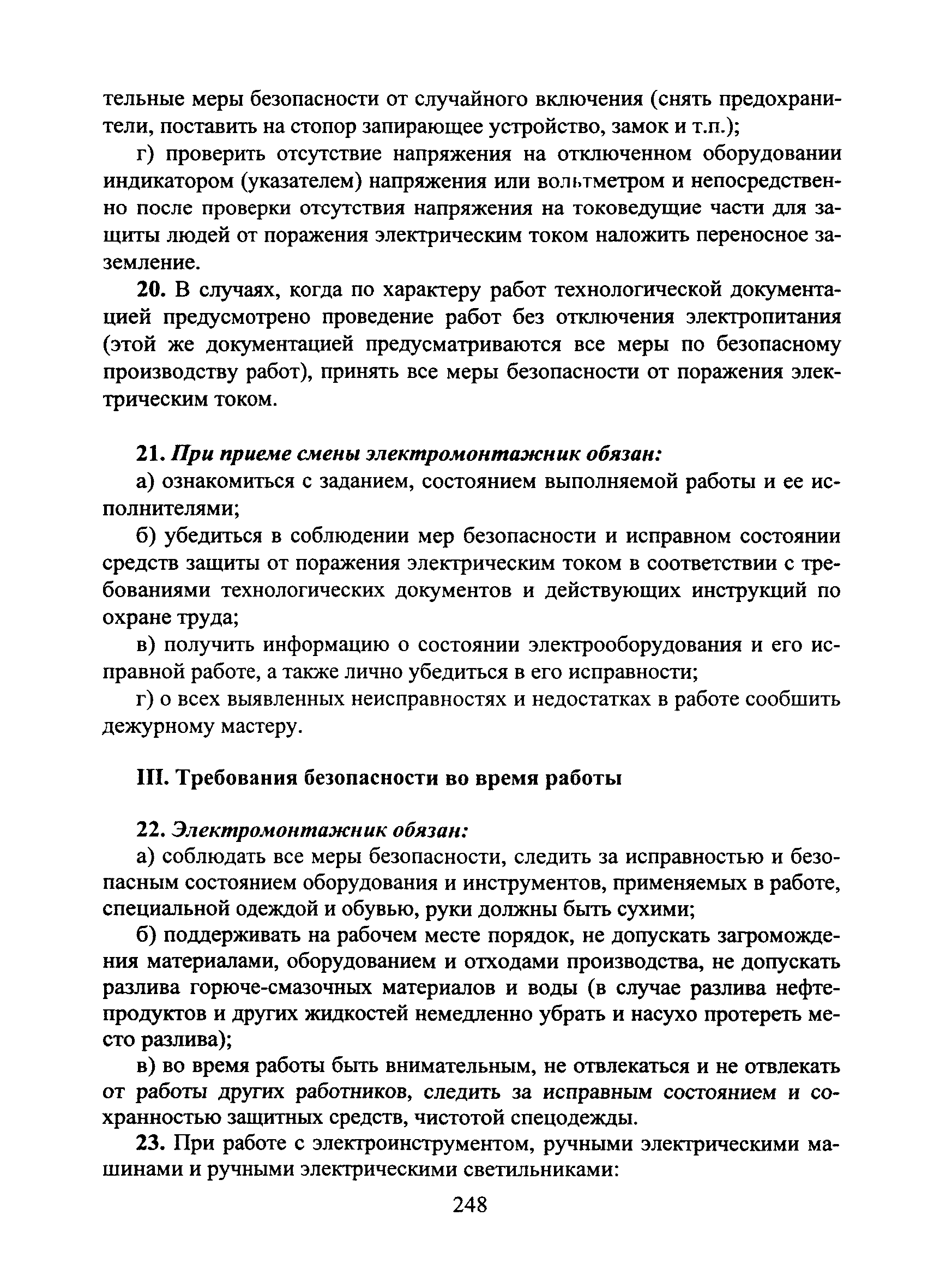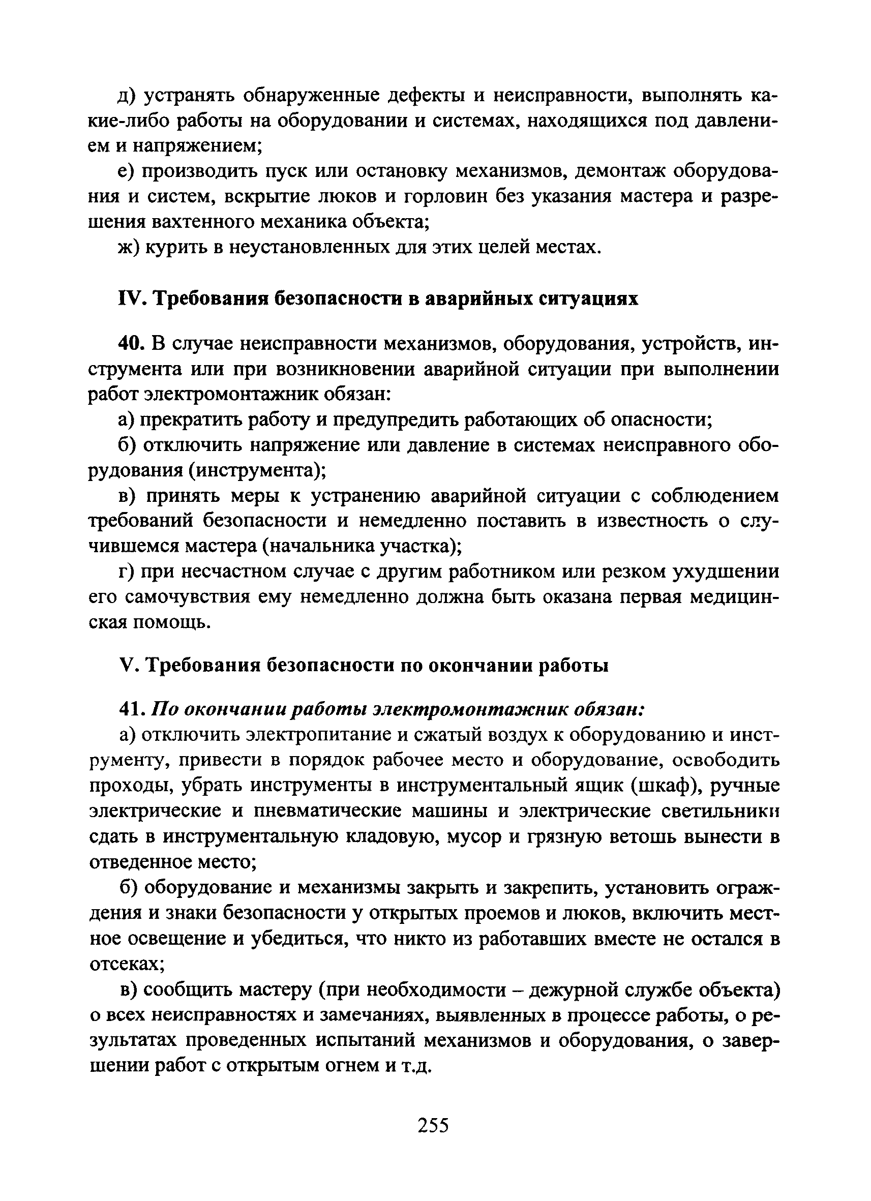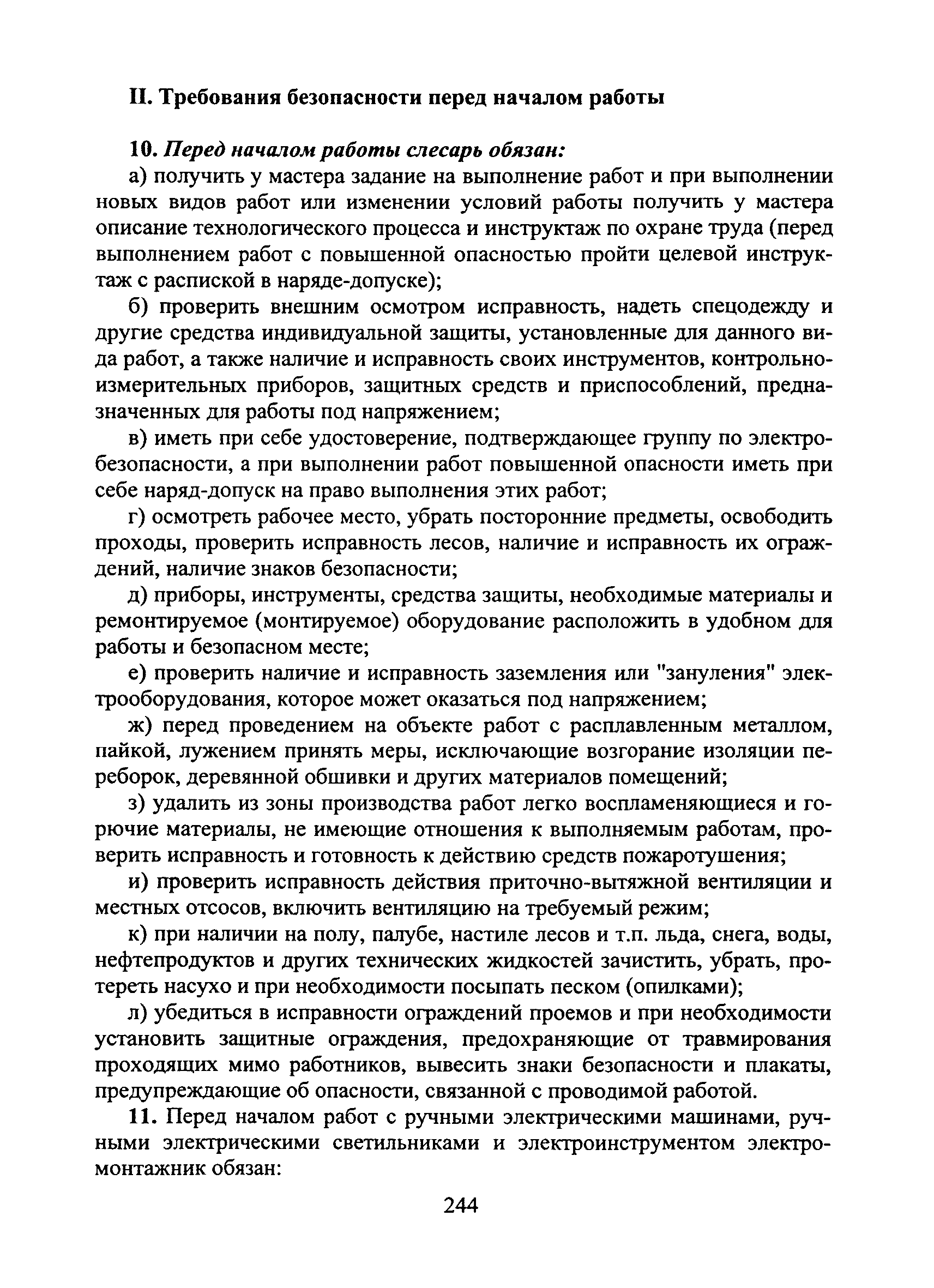| Оглавление: | I Общие требования безопасности II Требования безопасности перед началом работы III Требования безопасности во время работы IV Требования безопасности в аварийных ситуациях V Требования безопасности по окончании работы |