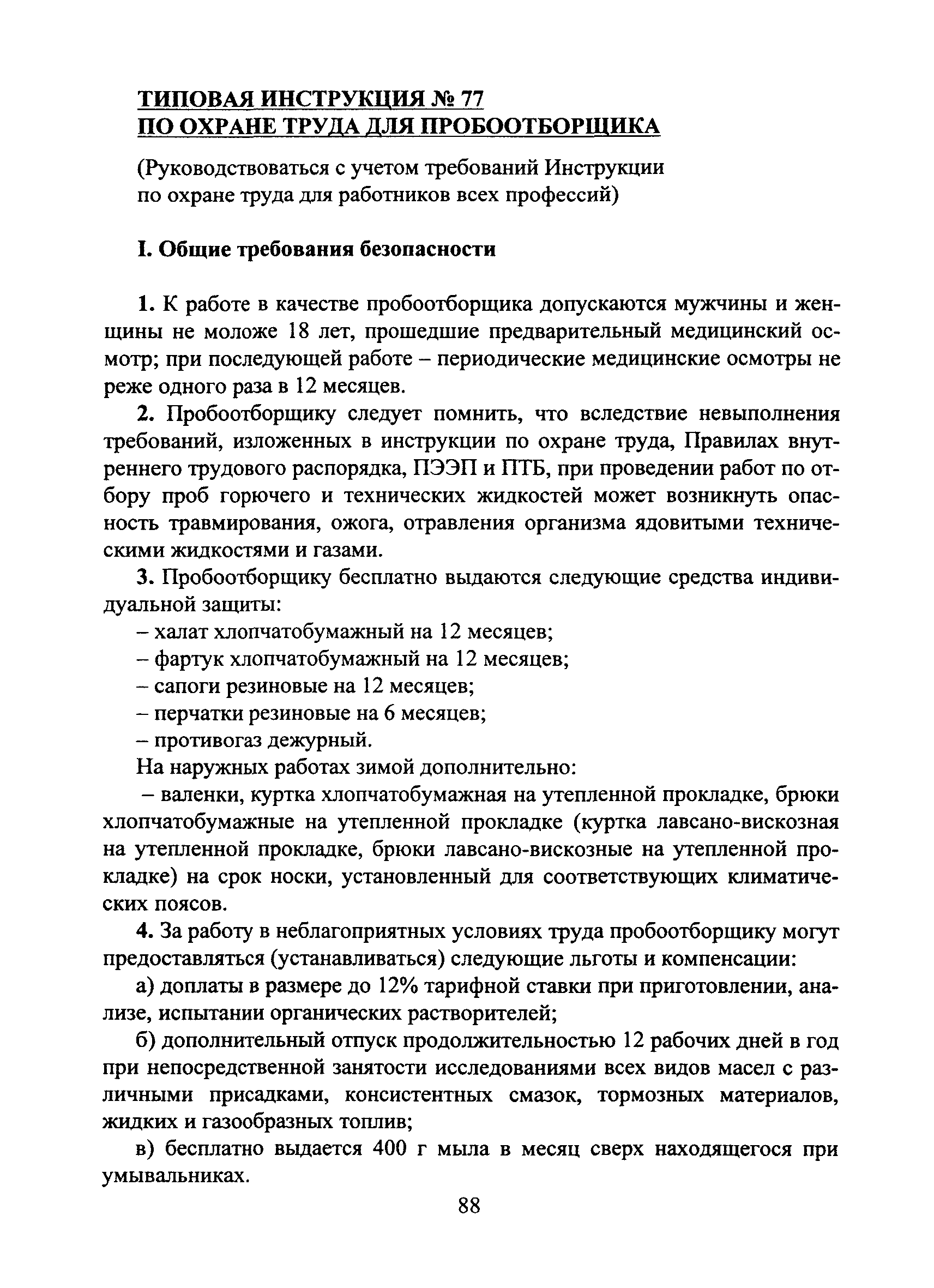 | Название рус.: | Типовая инструкция № 77 по охране труда для пробоотборщика |