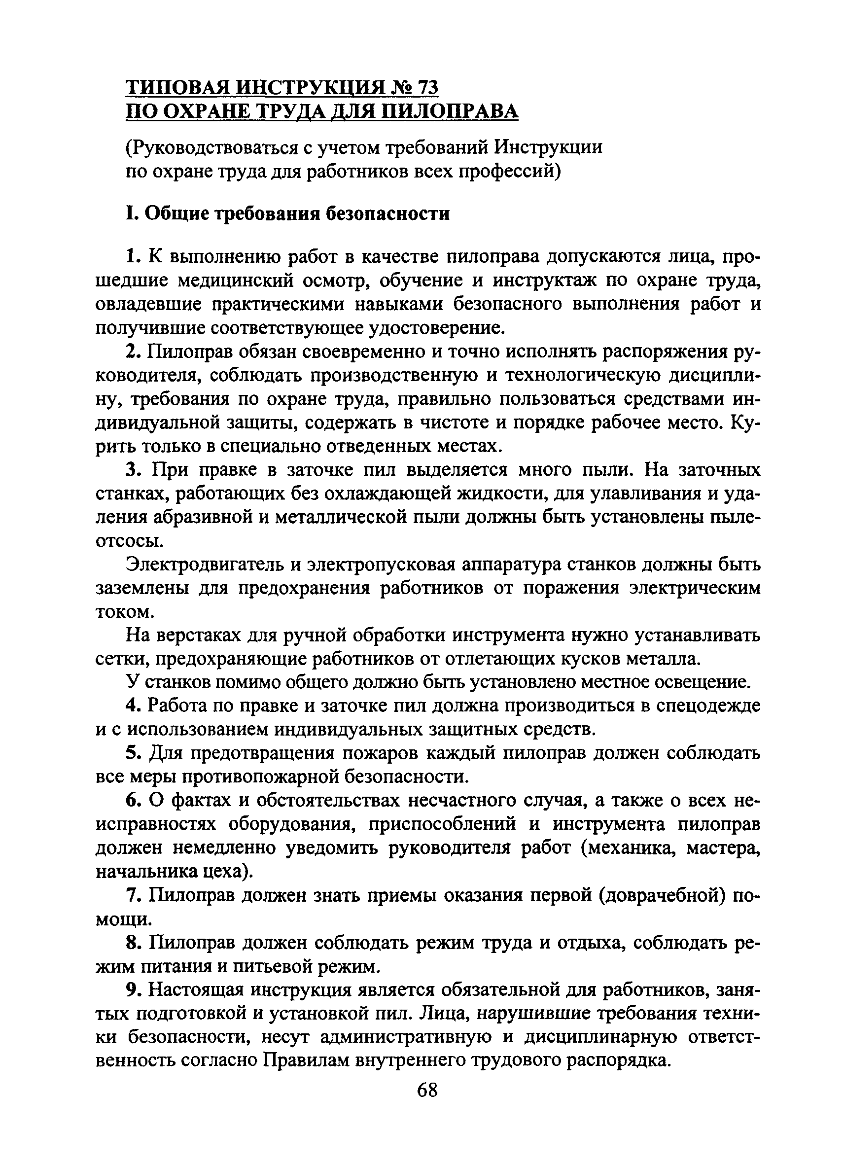 | Название рус.: | Типовая инструкция № 73 по охране труда для пилоправа |