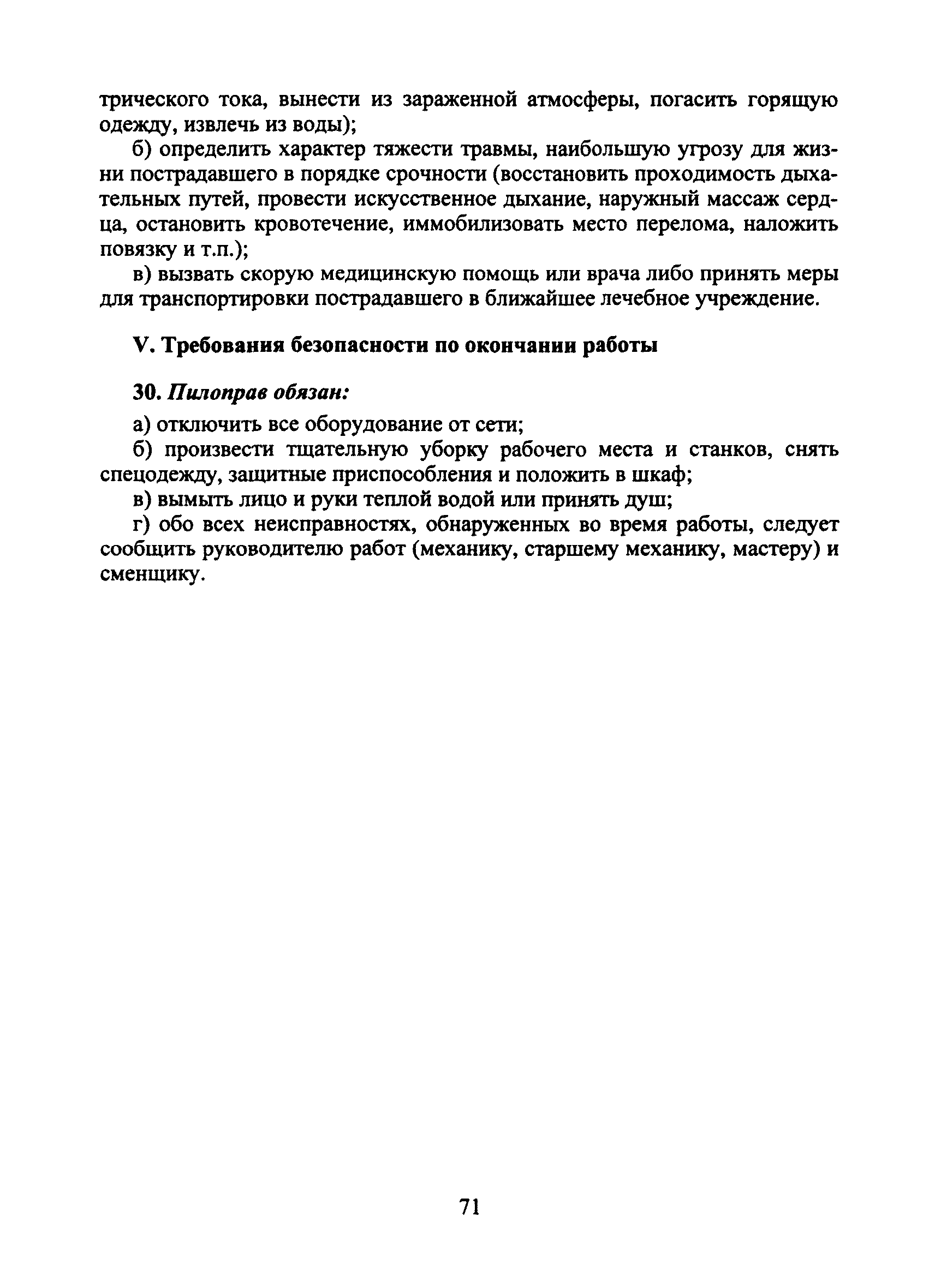 | Оглавление: | I Общие требования безопасности II Требования безопасности перед началом работы III Требования безопасности во время работы IV Требования безопасности в аварийных ситуациях V Требования безопасности по окончании работы |