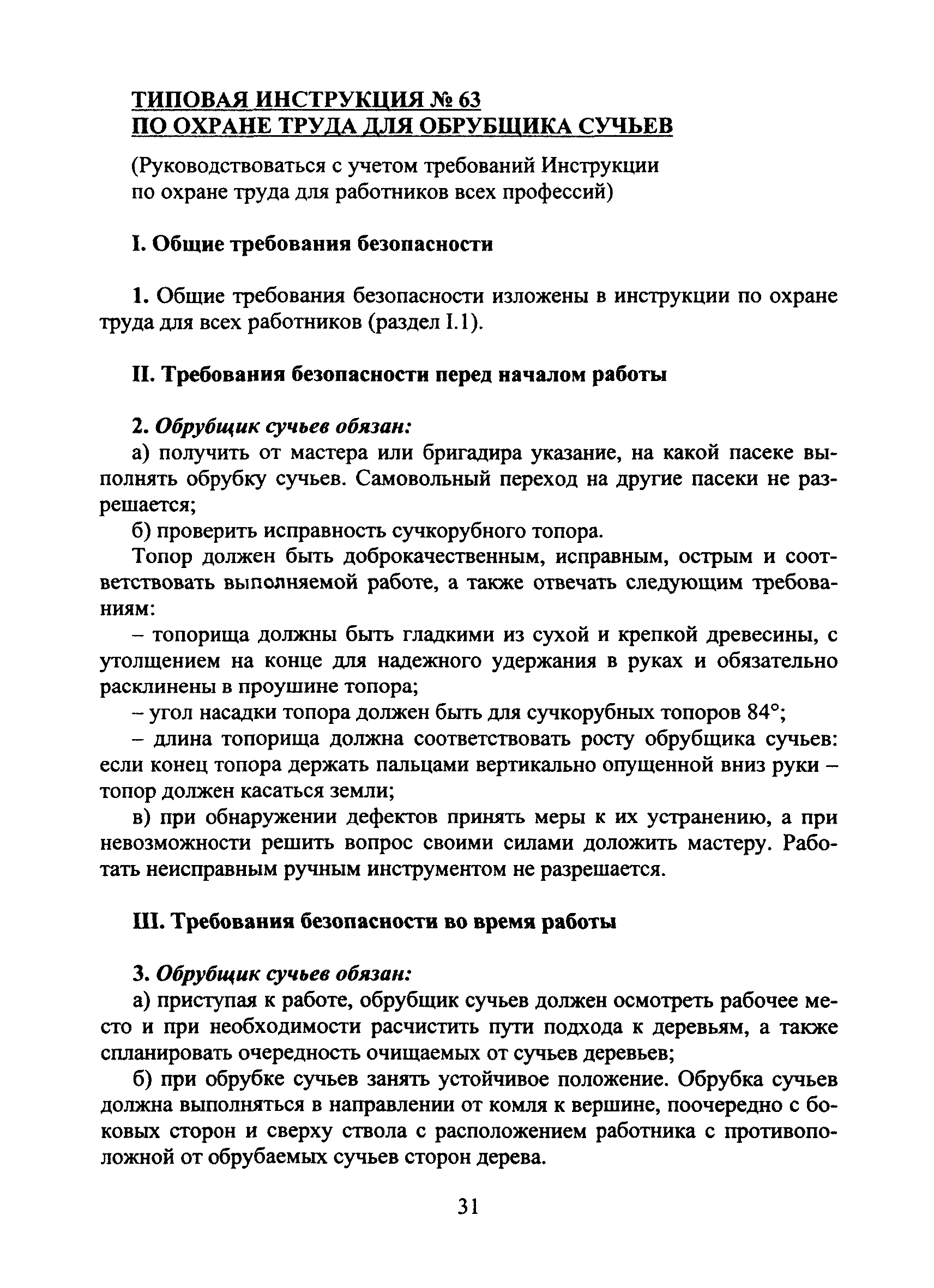 | Название рус.: | Типовая инструкция № 63 по охране труда для обрубщика сучьев |