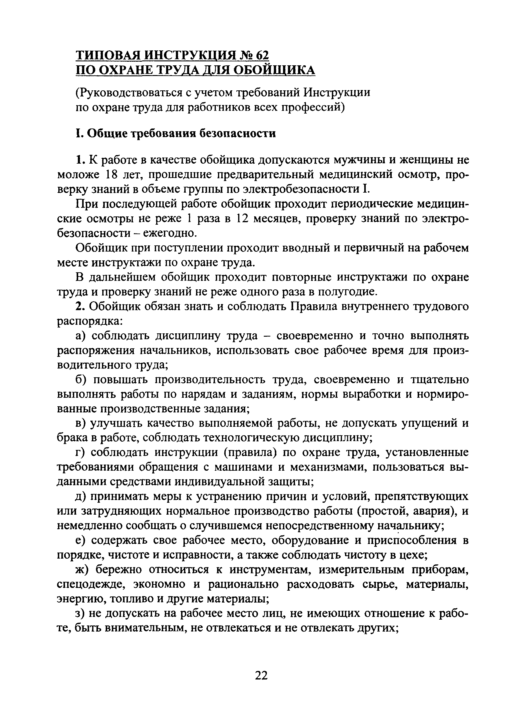 | Название рус.: | Типовая инструкция № 62 по охране труда для обойщика |