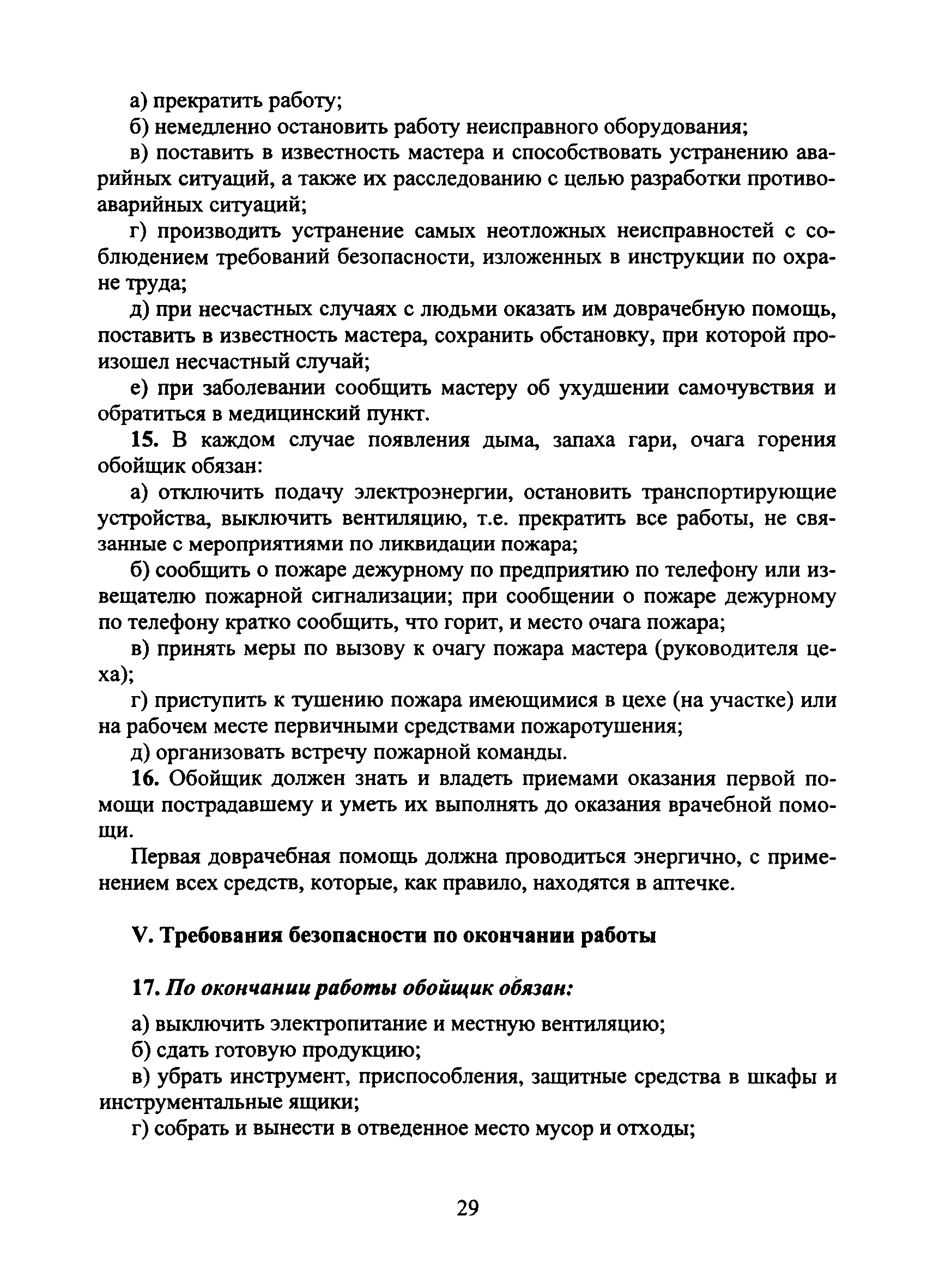 | Оглавление: | I Общие требования безопасности II Требования безопасности перед началом работы III Требования безопасности во время работы IV Требования безопасности в аварийных ситуациях V Требования безопасности по окончании работы |