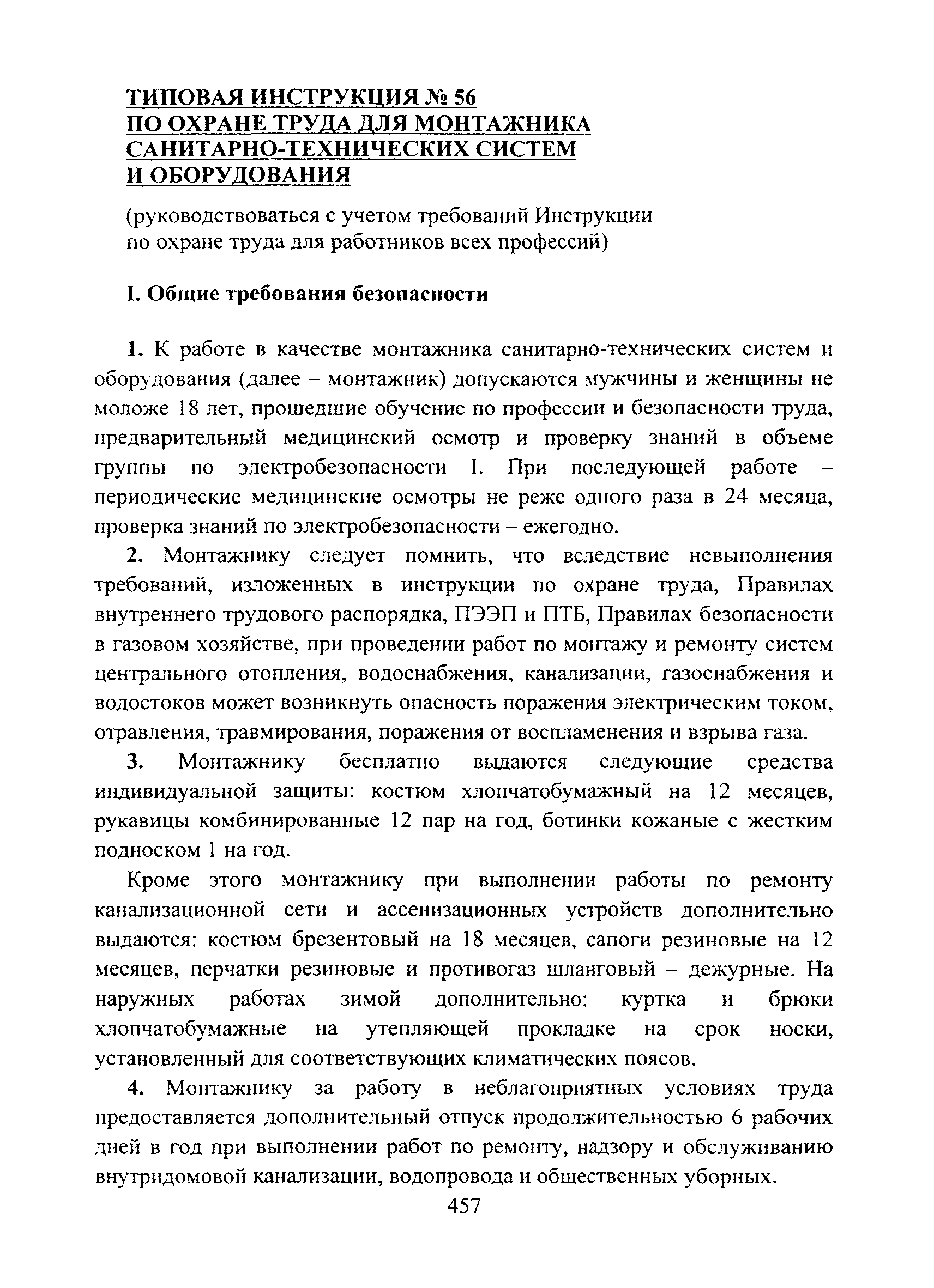 | Название рус.: | Типовая инструкция № 56 по охране труда для монтажника санитарно-технических систем и оборудования |
