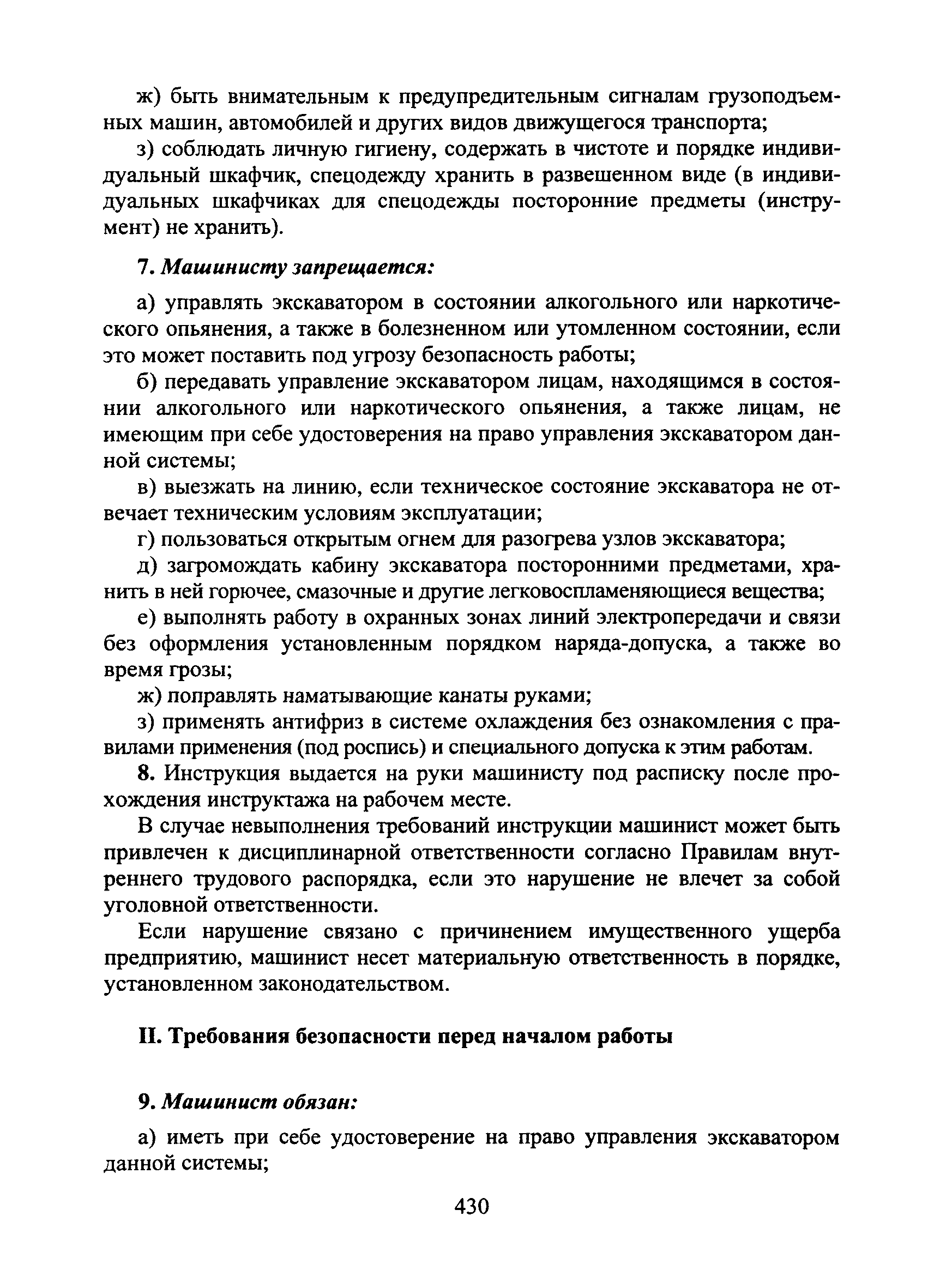 | Оглавление: | I Общие требования безопасности II Требования безопасности перед началом работы III Требования безопасности во время работы IV Требования безопасности в аварийных ситуациях V Требования безопасности по окончании работы |