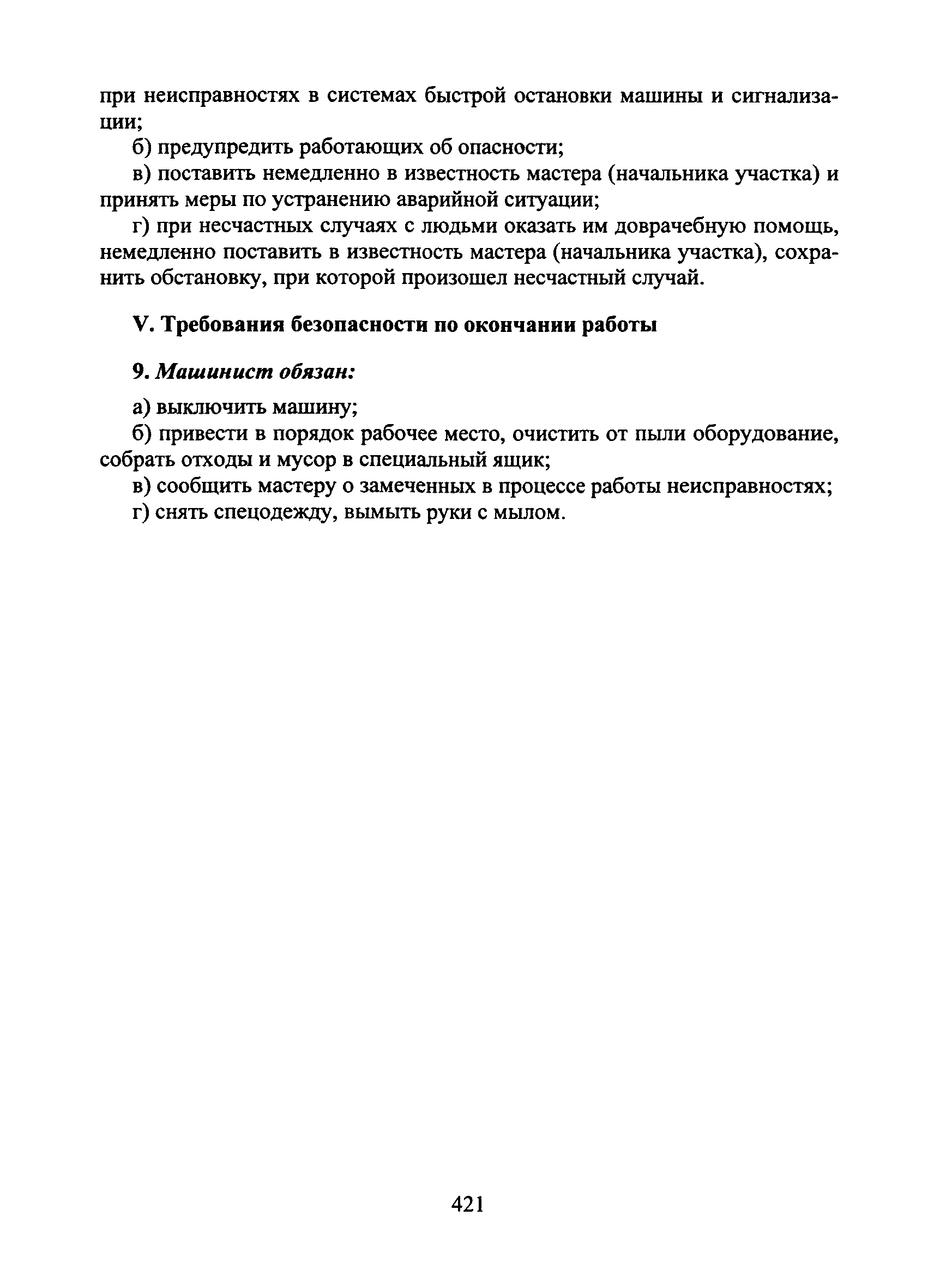 | Оглавление: | I Общие требования безопасности II Требования безопасности перед началом работы III Требования безопасности во время работы IV Требования безопасности в аварийных ситуациях V Требования безопасности по окончании работы |