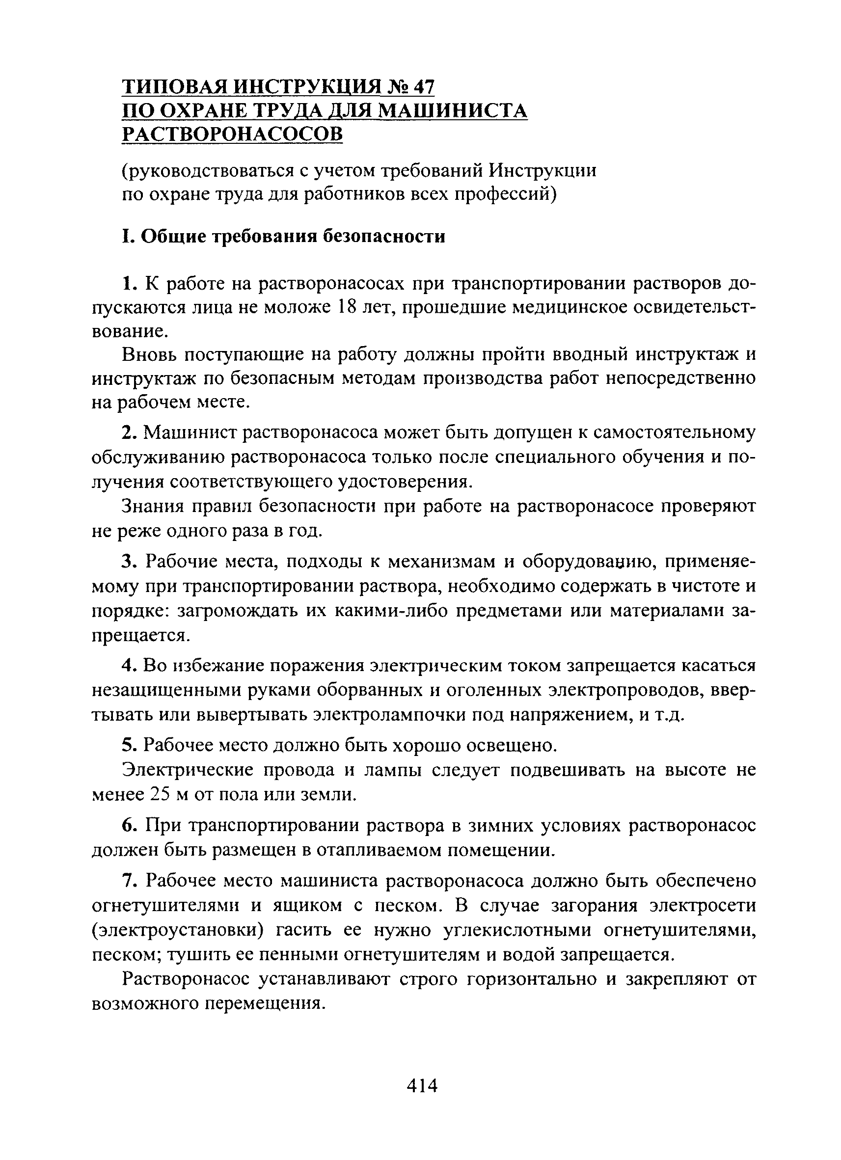 | Название рус.: | Типовая инструкция № 47 по охране труда для машиниста растворонасосов |