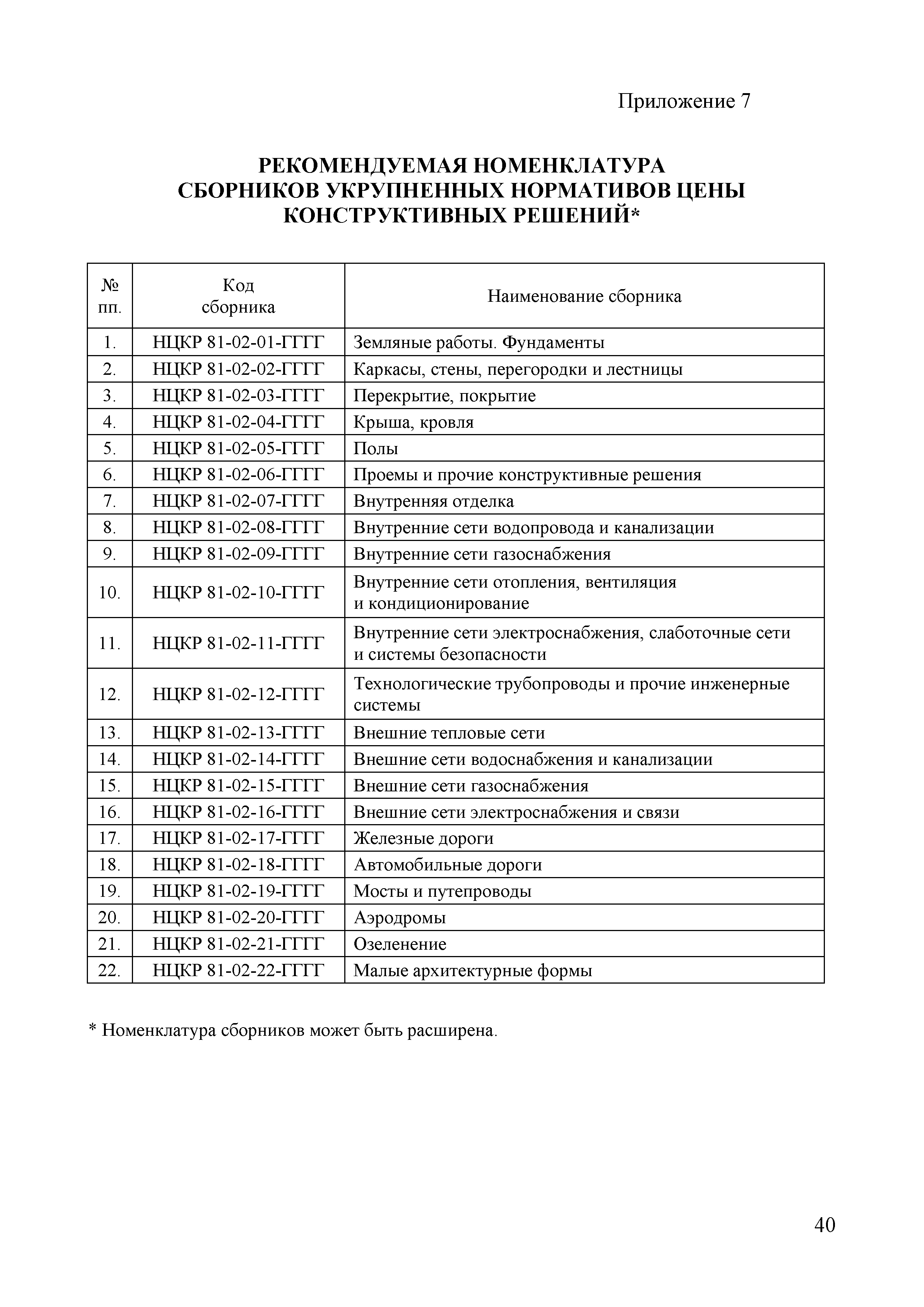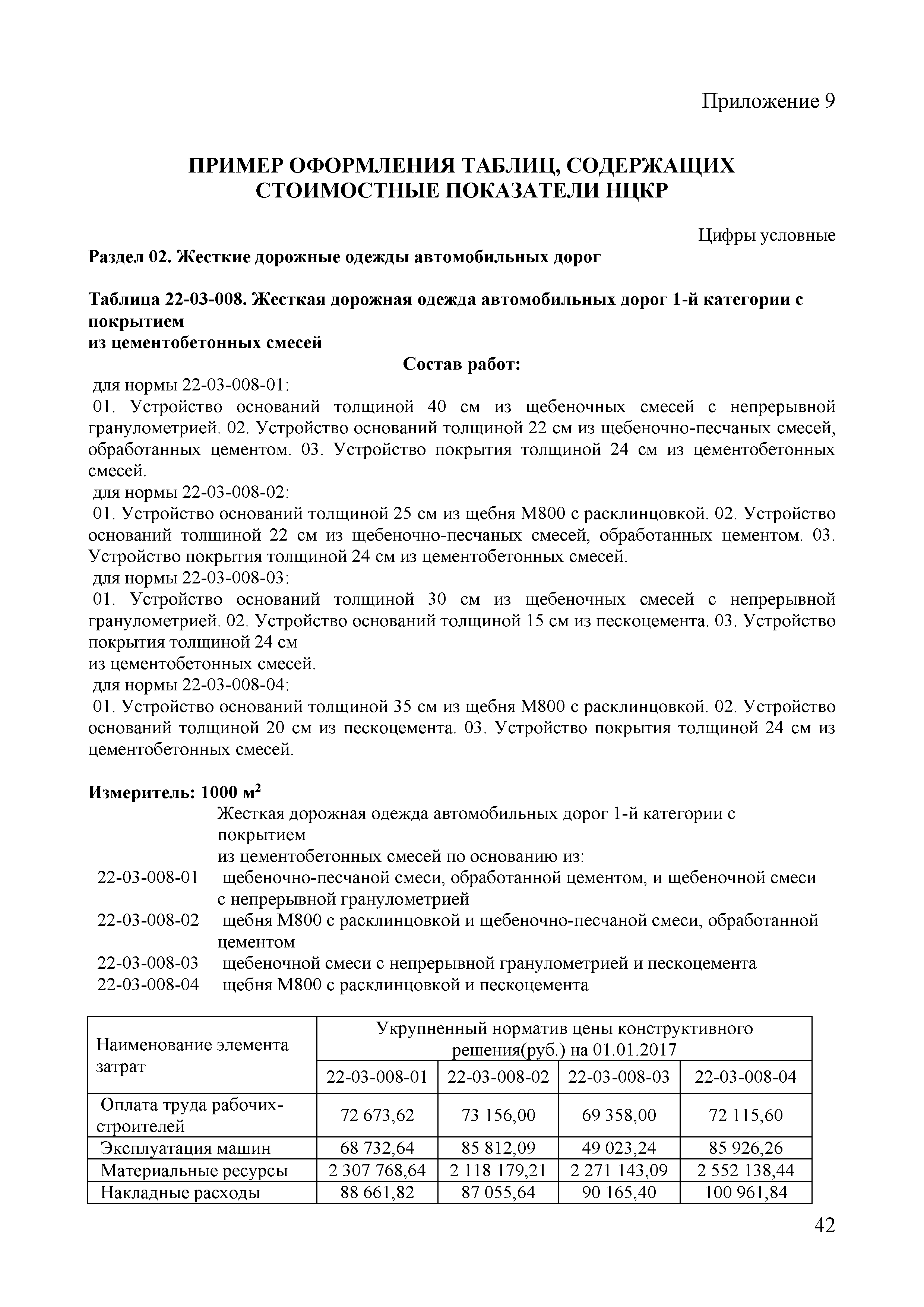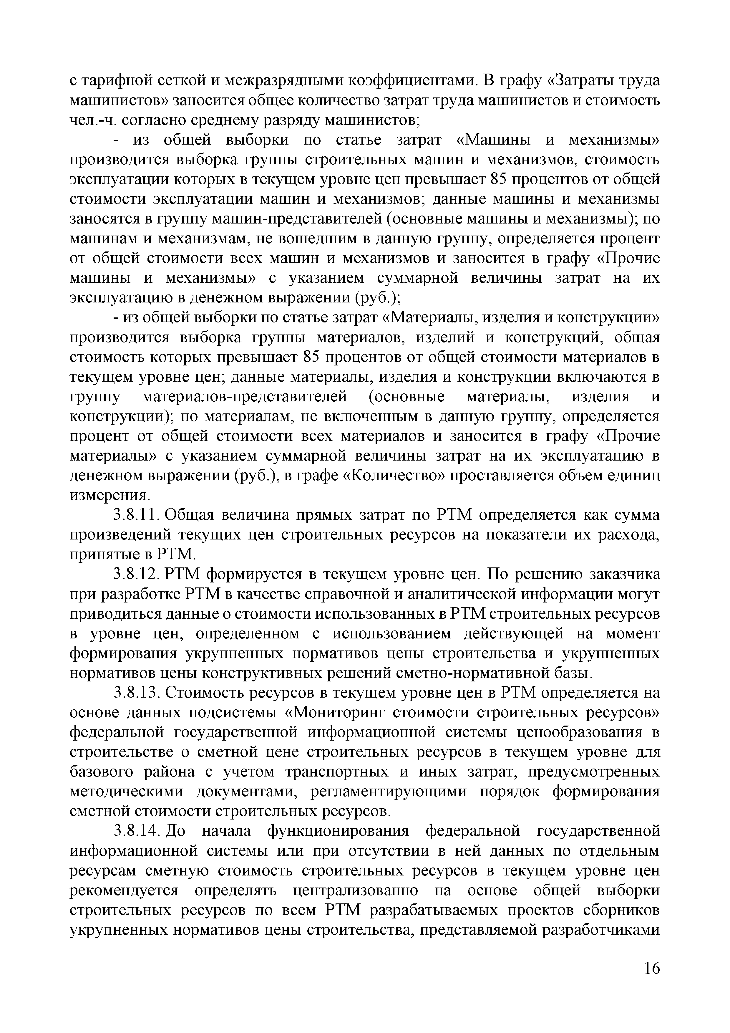 | Оглавление: | 1 Общие положения 2 Термины и определения 3 Разработка укрупненных нормативов цены строительства 3.1. Исходные данные, используемые при разработке укрупненных нормативов цены строительства 3.2. Перечень затрат, учитываемых в показателях укрупненных нормативов цены строительства 3.3. Последовательность разработки укрупненных нормативов цены строительства 3.4. Формирование и актуализация номенклатуры сборников укрупненных нормативов цены строительства и номенклатуры укрупненных нормативов цены строительства, включаемых в указанные сборники 3.5. Выбор измерителей показателей укрупненных нормативов цены строительства 3.6. Подбор проектной документации, используемой при расчете укрупненных нормативов цены строительства 3.7. Анализ сметной документации объекта-представителя, формирование локальных ресурсных смет, используемых для расчета укрупненных нормативов цены строительства 3.8. Разработка ресурсно-технологических моделей 3.9. Особенности разработки укрупненных нормативов цены строительства по линейным и комплексным объектам капитального строительства 3.10. Состав и содержание сборника укрупненных нормативов цены строительства 3.11. Применение поправочных коэффициентов к показателям укрупненных нормативов цены строительства 4. Разработка укрупненных нормативов цены конструктивных решений 4.1. Исходные данные, используемые при разработке укрупненных нормативов цены конструктивных решений 4.2. Перечень затрат, учитываемых в показателях укрупненного норматива цены конструктивных решений 4.3. Последовательность разработки сборников укрупненных нормативов цены конструктивных решений 4.4. Формирование и актуализация номенклатуры сборников укрупненных нормативов цены конструктивных решений и номенклатуры укрупненных нормативов цены конструктивных решений, включаемых в указанные сборники 4.5. Выбор измерителей показателей укрупненных нормативов цены конструктивных решений 4.6. Подбор проектной документации, используемой при расчете укрупненных нормативов цены конструктивных решений 4.7. Разработка локальных ресурсных смет для разработки укрупненных нормативов цены конструктивных решений 4.8. Состав и содержание сборника укрупненных нормативов цены конструктивных решений 4.9. Применение поправочных коэффициентов к показателям укрупненных нормативов цены конструктивных решений Приложение 1. Рекомендуемая номенклатура сборников укрупненных нормативов цены строительства Приложение 2. Сравнительная таблица отбора объектов-представителей Приложение 3. Таблицы РТМ Приложение 4. Образец титульного листа сборника нормативов цены строительства Приложение 5. Образец таблиц сборника укрупненных нормативов цены строительства Приложение 6. Объекты-представители (заполняется для зданий и сооружений, за исключением линейных объектов) Приложение 7. Рекомендуемая номенклатура сборников укрупненных нормативов цены конструктивных решений Приложение 8. Образец титульного листа сборника нормативов цены конструктивных решений Приложение 9. Пример оформления таблиц, содержащих стоимостные показатели НЦКР Приложение 10. Пример оформления таблиц, содержащих ресурсные показатели НЦКР |