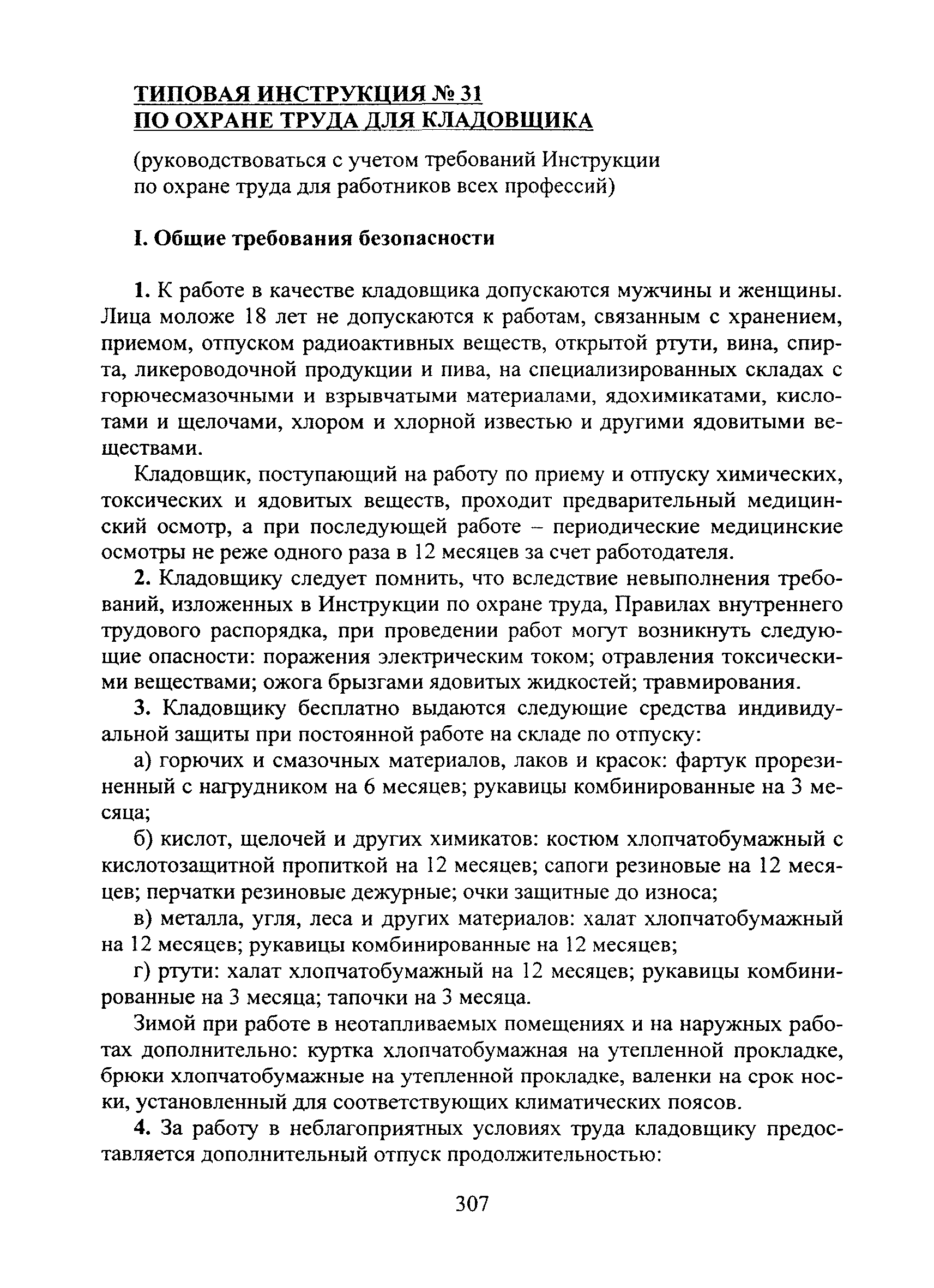 | Название рус.: | Типовая инструкция № 31 по охране труда для кладовщика |
