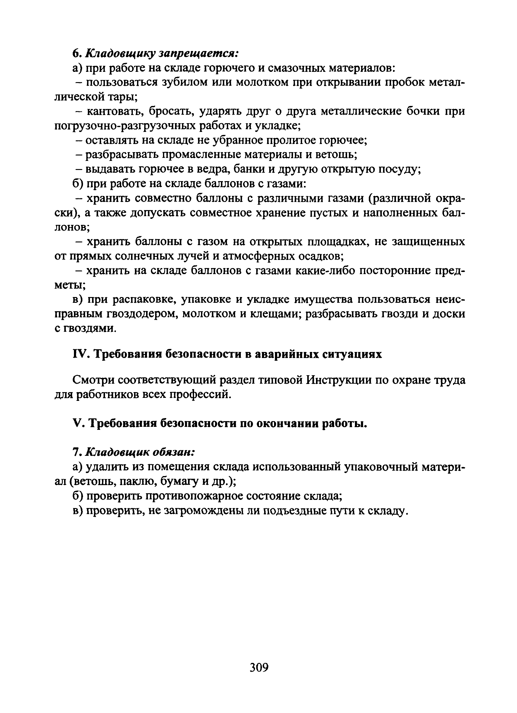 | Оглавление: | I Общие требования безопасности II Требования безопасности перед началом работы III Требования безопасности во время работы IV Требования безопасности в аварийных ситуациях V Требования безопасности по окончании работы |