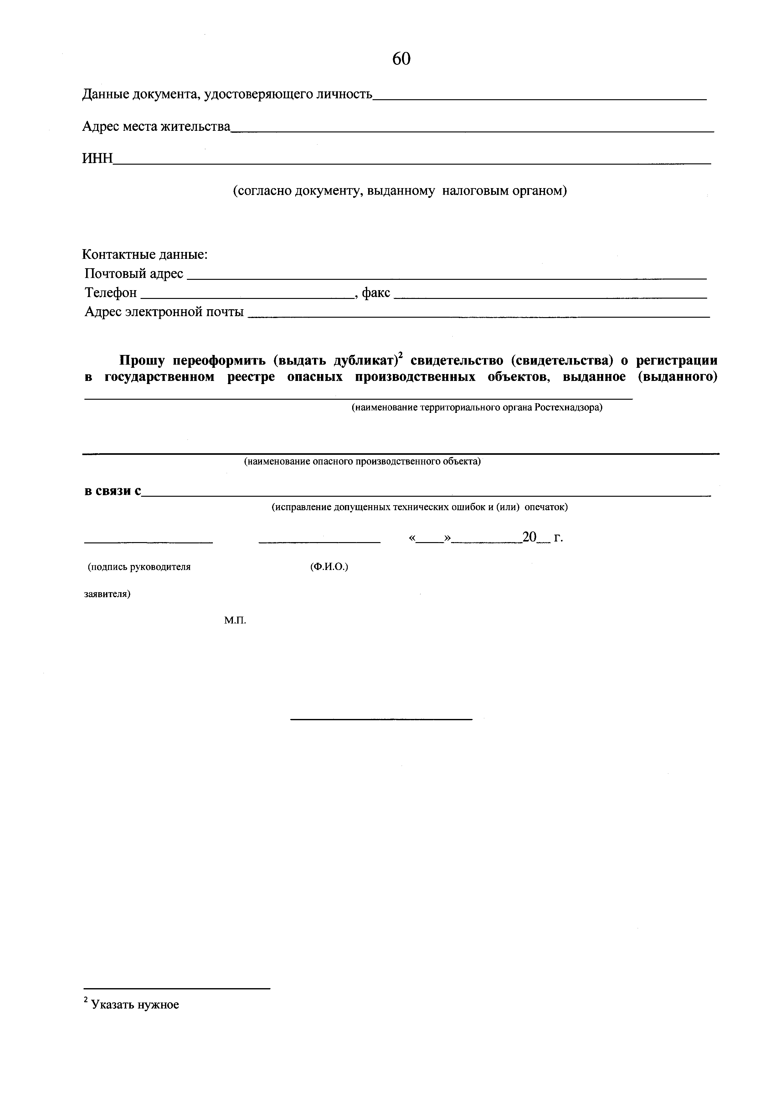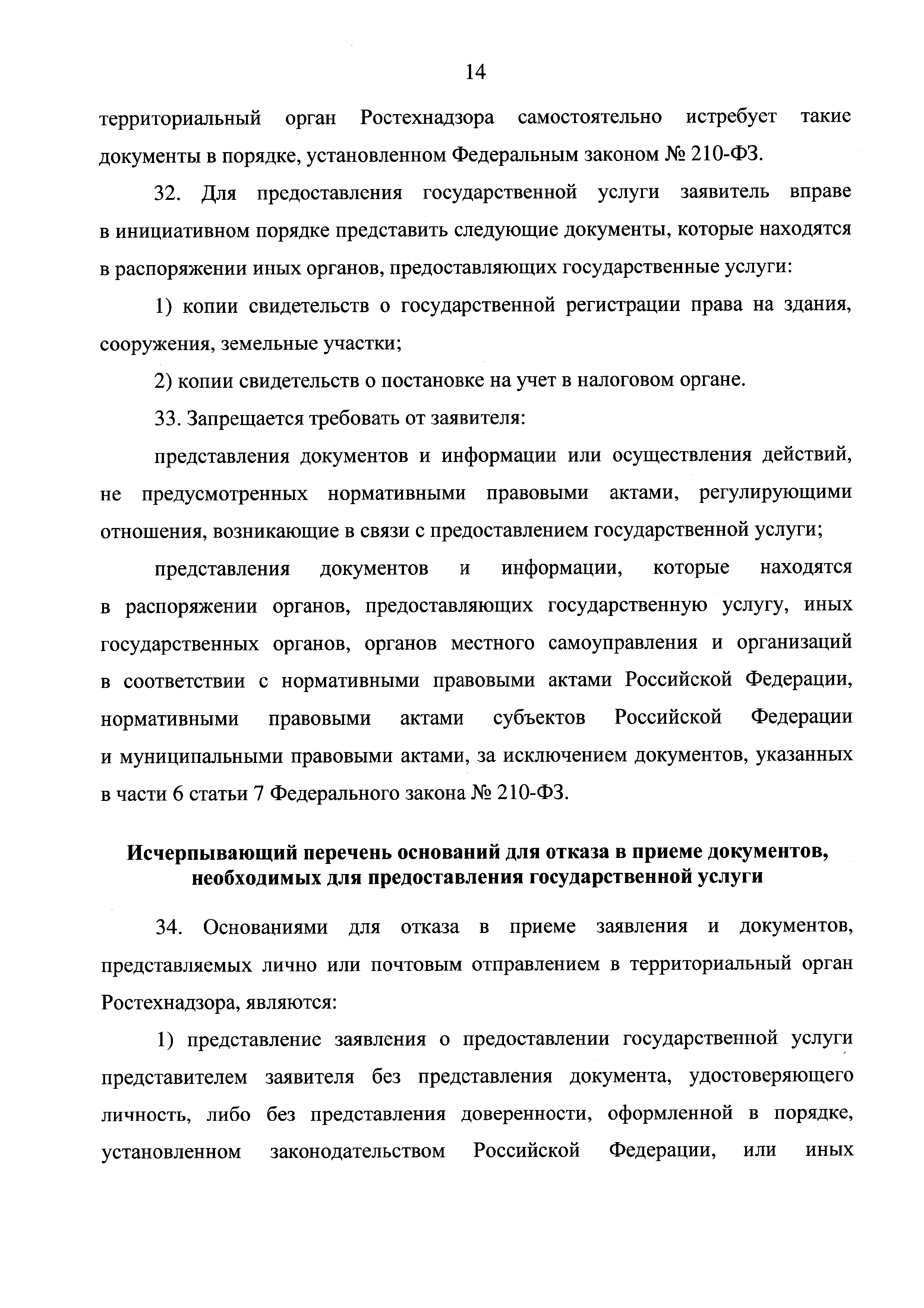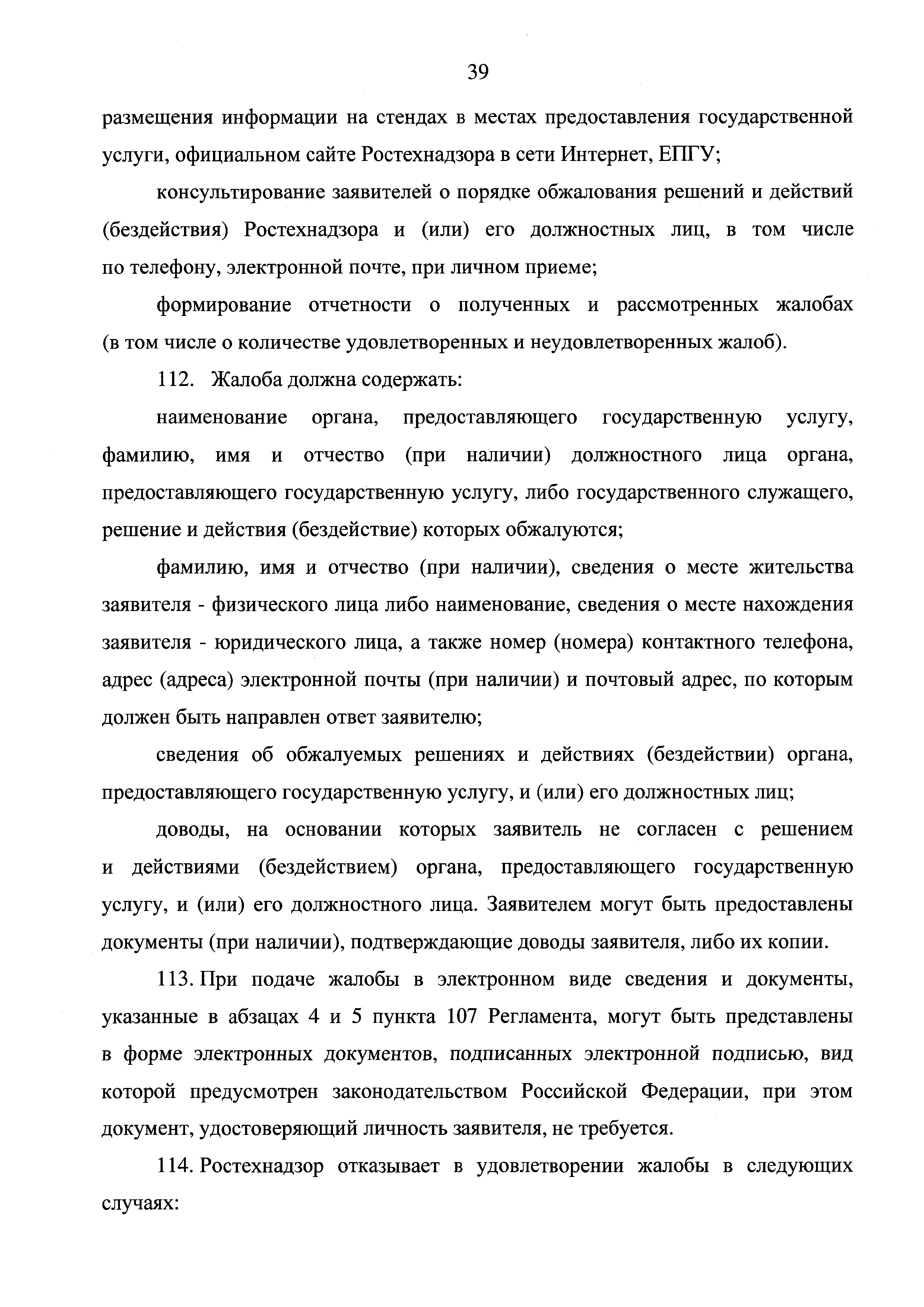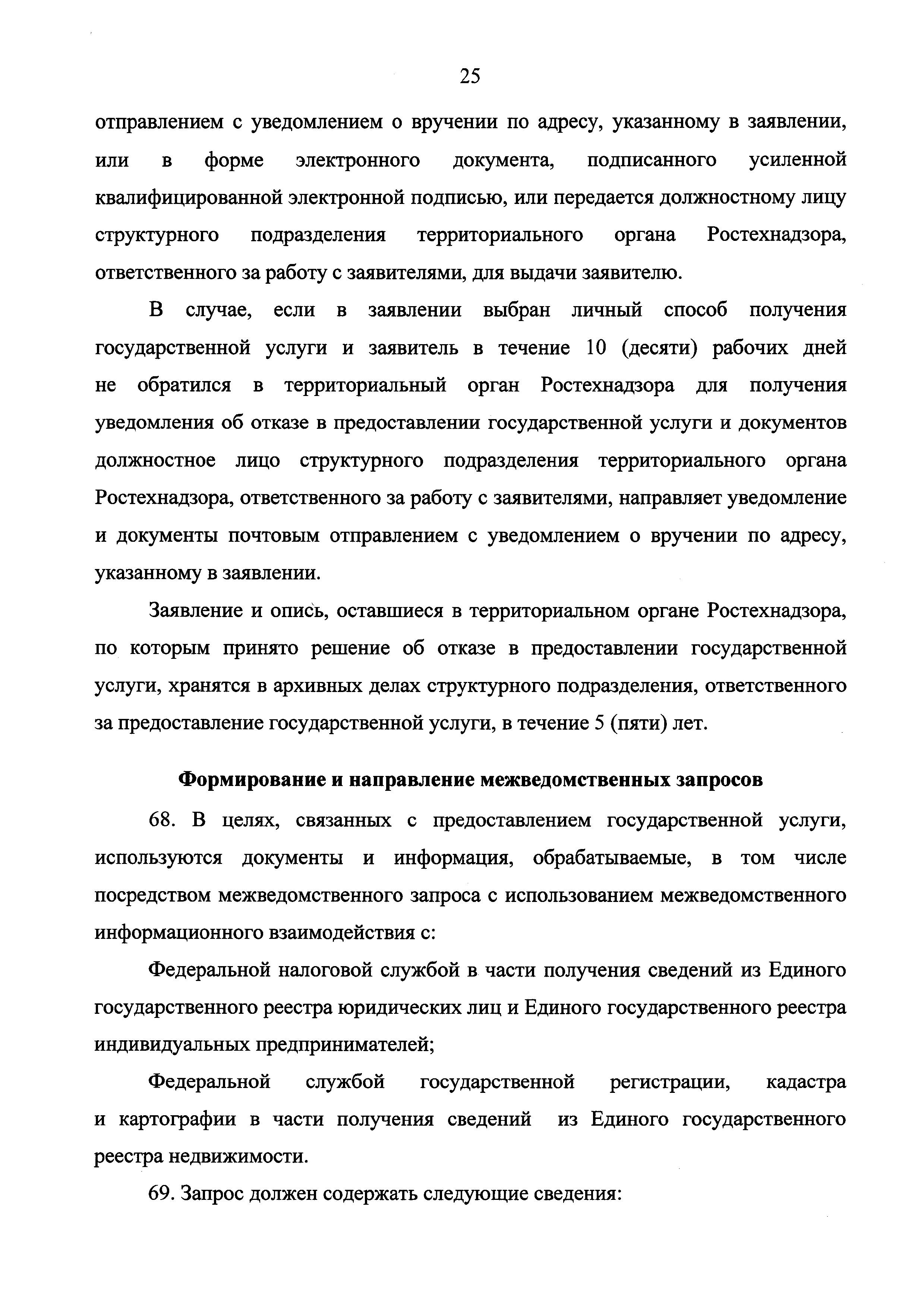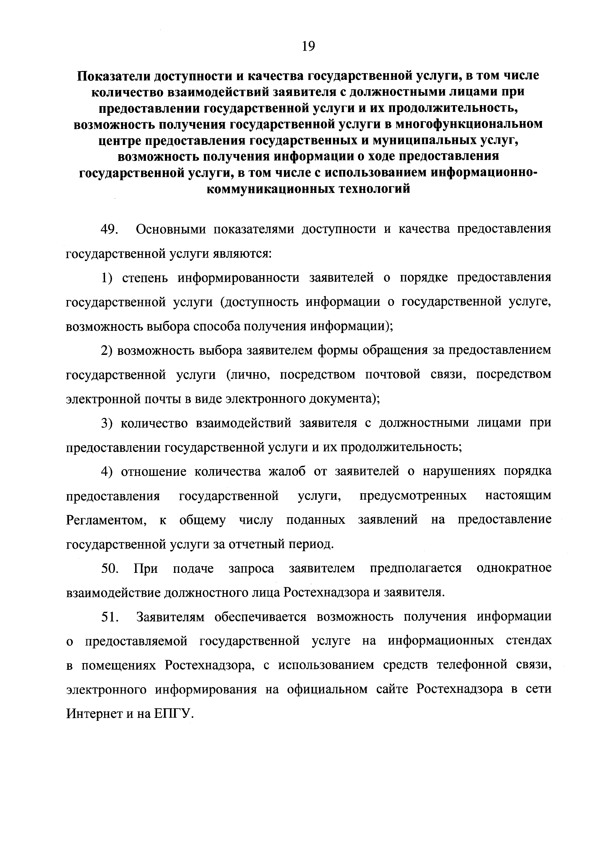 | Оглавление: | I. Общие положения II. Стандарт предоставления государственной услуги III. Состав, последовательность и сроки выполнения административных процедур (действий), требования к порядку их выполнения, в том числе особенности выполнения административных процедур (действий) в электронной форме IV. Формы контроля за исполнением настоящего Регламента V. Досудебный (внесудебный) порядок обжалования решений и действий (бездействия) Ростехнадзора, а также его должностных лиц Приложение № 1. Сведения о местах нахождения, контактных телефонах, адресах официальных сайтов, электронной почты территориальных органов Ростехнадзора Приложение № 2. Опись документов Приложение № 3. Заявление Приложение № 4. Сведения, характеризующие ОПО Приложение № 5. Заявление о переоформлении (выдаче дубликата) свидетельства о регистрации в государственном реестре опасных производственных объектов Приложение № 6. Заявление о предоставлении информации о зарегистрированных в Реестре ОПО в форме выписки Приложение № 7. Блок-схема предоставления государственной услуги |