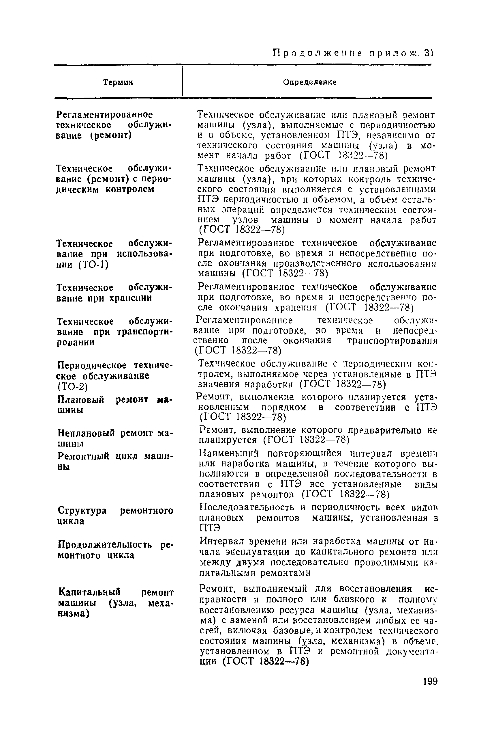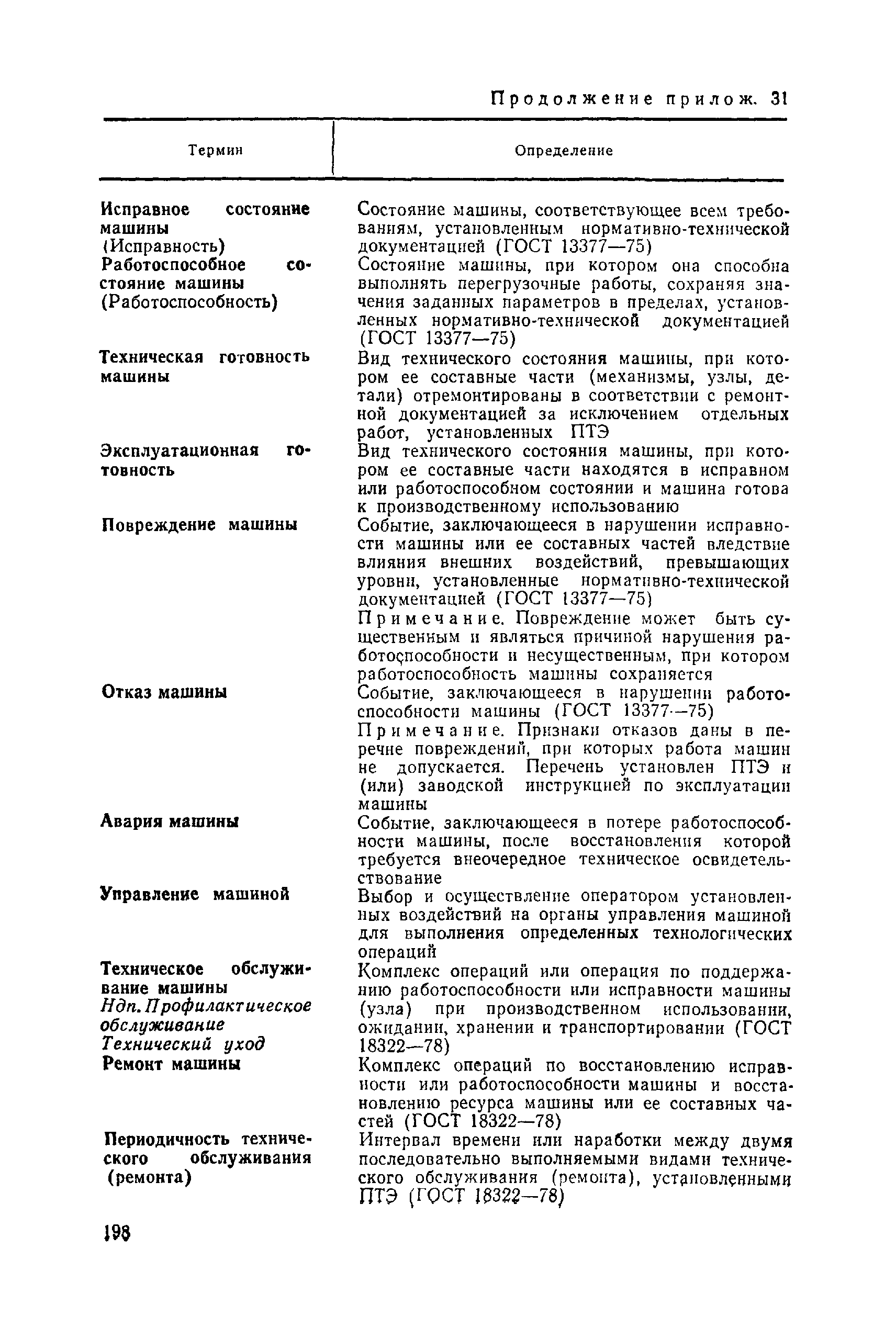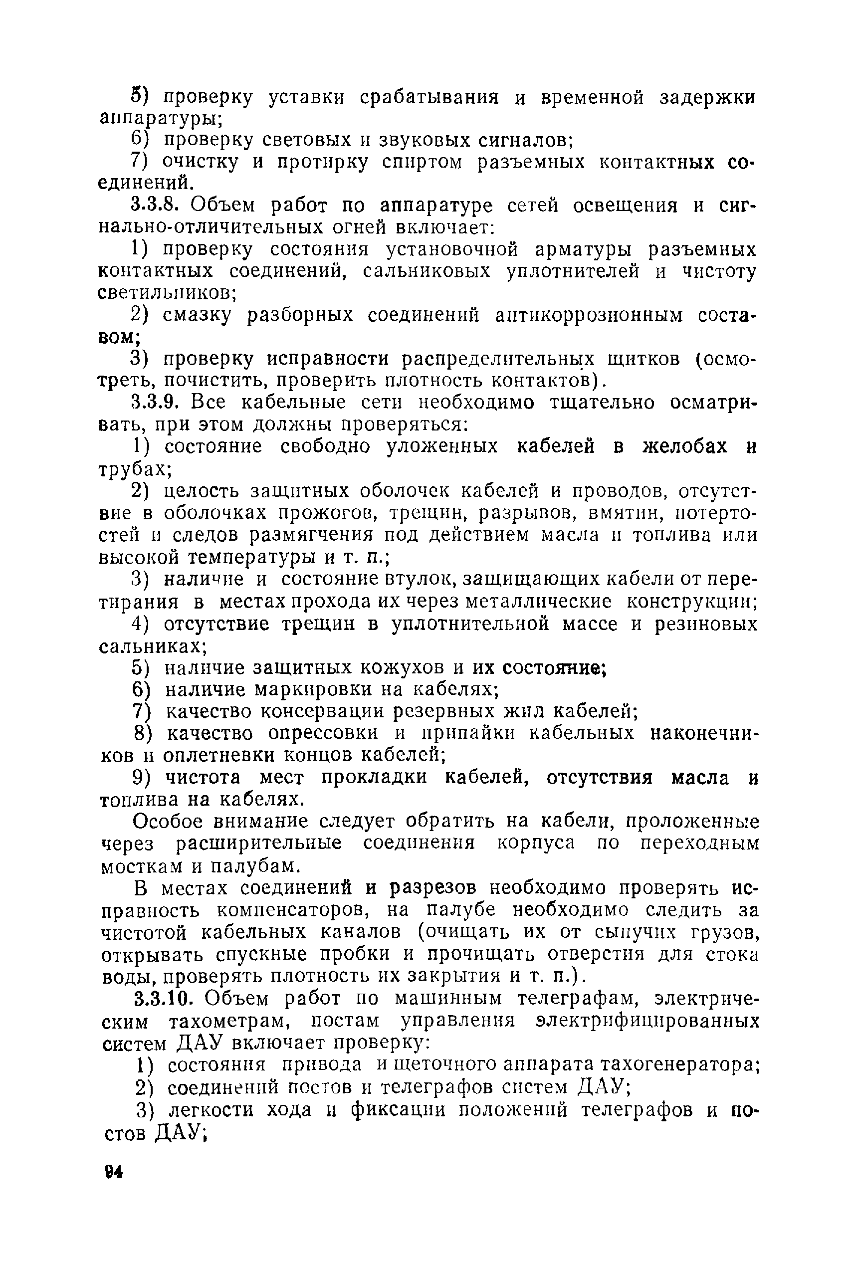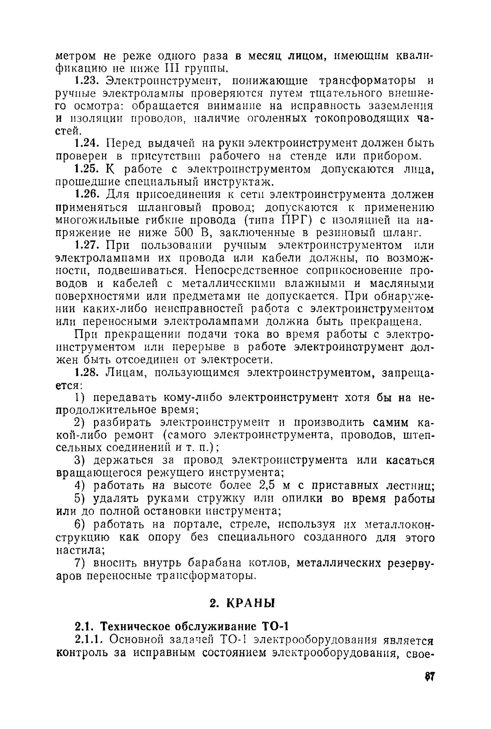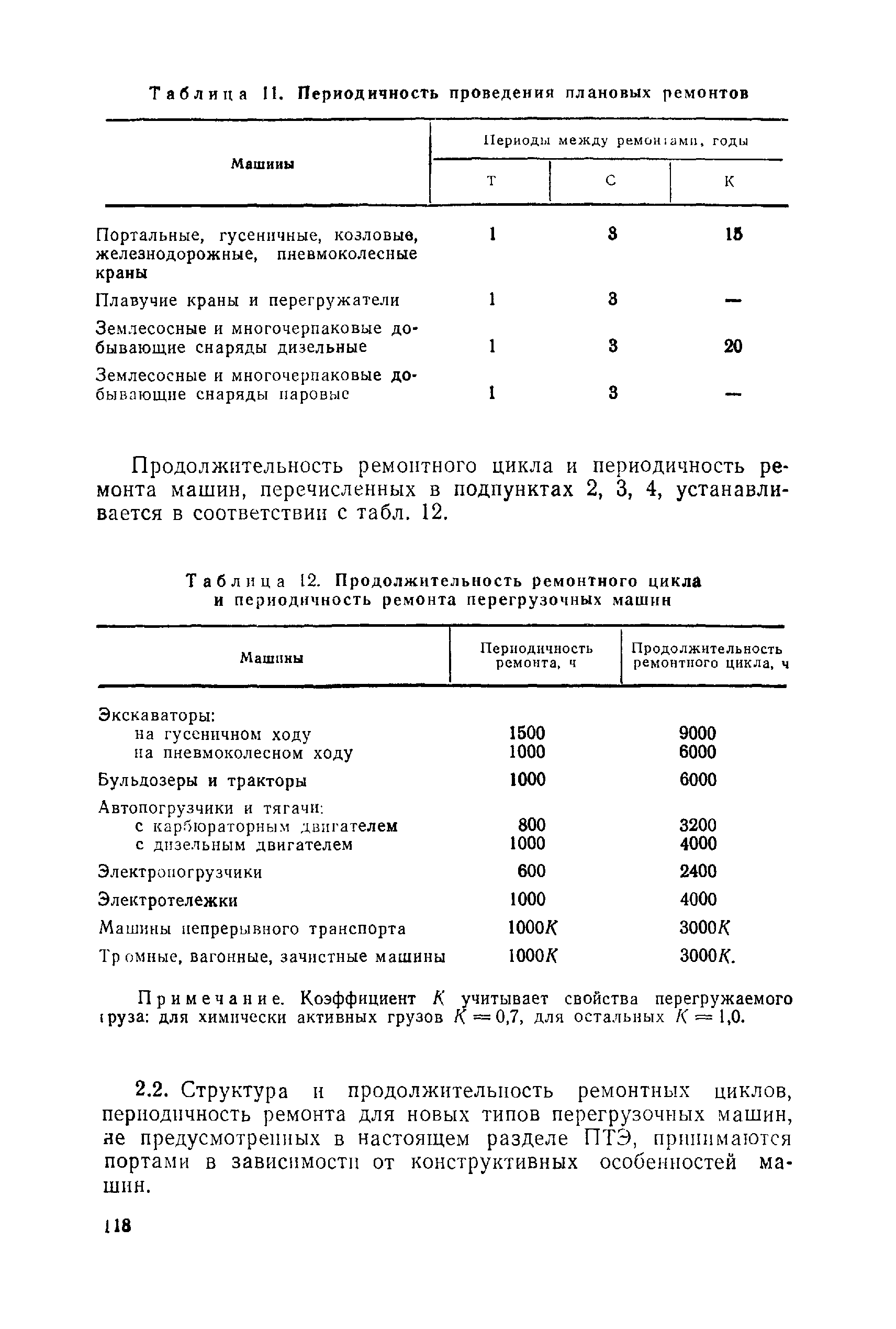 Правила технической эксплуатации перегрузочных машин речных портов| Статус: | взамен | | Название рус.: | Правила технической эксплуатации перегрузочных машин речных портов | | Дата добавления в базу: | 05.05.2017 | | Дата актуализации: | 01.01.2021 | | Дата введения: | 01.01.1984 | | Область применения: | Правила технической эксплуатации перегрузочных машин регламентируют управление машинами, технический надзор, техническое обслуживание и плановый ремонт перегрузочных машин. | | Оглавление: | Введение Часть первая. Организация технической эксплуатации перегрузочных машин 1. Область применения ПТЭ 2. Управление перегрузочными машинами 3. Техническое обслуживание перегрузочных машин 3.1. Виды и содержание технического обслуживания 3.2. Организация технического обслуживания 4. Технический надзор за перегрузочными машинами 4.1. Регистрация машин 4.2. Виды и организация технического надзора 4.3. Технические освидетельствования 4.4. Навигационные осмотры 4.5. Оперативные осмотры 5. Ремонт перегрузочных машин 6. Техническая документация 7. Порядок расследования аварий и несчастных случаев Часть вторая. Техническое обслуживание механического оборудования перегрузочных машин и технический надзор за ним 1. Краны 1.1. Общие правила работы кранов 1.2 Спаренная работа кранов 1.3. Особенности работы железнодорожных, гусеничных, пневмоколесных и автомобильных кранов 1.4. Особенности работы кранов с грейфером 1.5. Особенности работы кранов с грузоподъемным электромагнитом 1.6. Работа кранов при ветре и низкой температуре окружающей среды 1.7. Порядок ухода портовых рабочих-крановщиков с крана 1.8. Запрещенные приемы работы 1.9. Повреждения, при которых работа кранов не допускается 1.10. Техническое обслуживание при использовании (ТО-1) 1.11. Периодическое техническое обслуживание (ТО-2) 1.12. Технические освидетельствования береговых кранов 1.13. Технические освидетельствования плавучих кранов 2. Добывающие землесосные снаряды и гидроперегружатели 2.1. Общие правила работы машин 2.2. Управление машинами 2.3. Техническое обслуживание при использовании (ТО-1) 2.4. Периодическое техническое обслуживание (ТО-2) 2.5. Технические освидетельствования 3. Добывающие многочерпаковые снаряды 3.1. Общие правила работы машин 3.2. Управление машинами 3.3. Техническое обслуживание при использовании (ТО-1) 3.4. Периодическое техническое обслуживание (ТО-2) 3.5. Технические освидетельствования 4. Машины внутрипортового безрельсового транспорта 4.1. Общие правила работы машин 4.2. Правила работы погрузчиков 4.3 Правила работы тягачей, прицепов (трейлеров) и аккумуляторных тележек 4.4. Правила работы зачистных машин 4.5. Повреждения, при которых работа машин не допускается 4.6. Техническое обслуживание при использовании (ТО-1) 4.7. Периодическое техническое обслуживание (ТО-2) 4.8. Технические освидетельствования 5. Машины непрерывного транспорта 5.1. Общие правила работы машин 5.2. Повреждения, при которых работа машин не допускается 5.3. Техническое обслуживание при использовании (ТО-1) 5.4. Периодическое техническое обслуживание (ТО-2) 5.5. Технические освидетельствования 6. Двигатели внутреннего сгорания 7. Сменные грузозахватные органы, съемные грузозахватные приспособления и тара Часть третья. Техническое обслуживание электрооборудования перегрузочных машин и технический надзор за мим 1. Общие требования по эксплуатации в те
