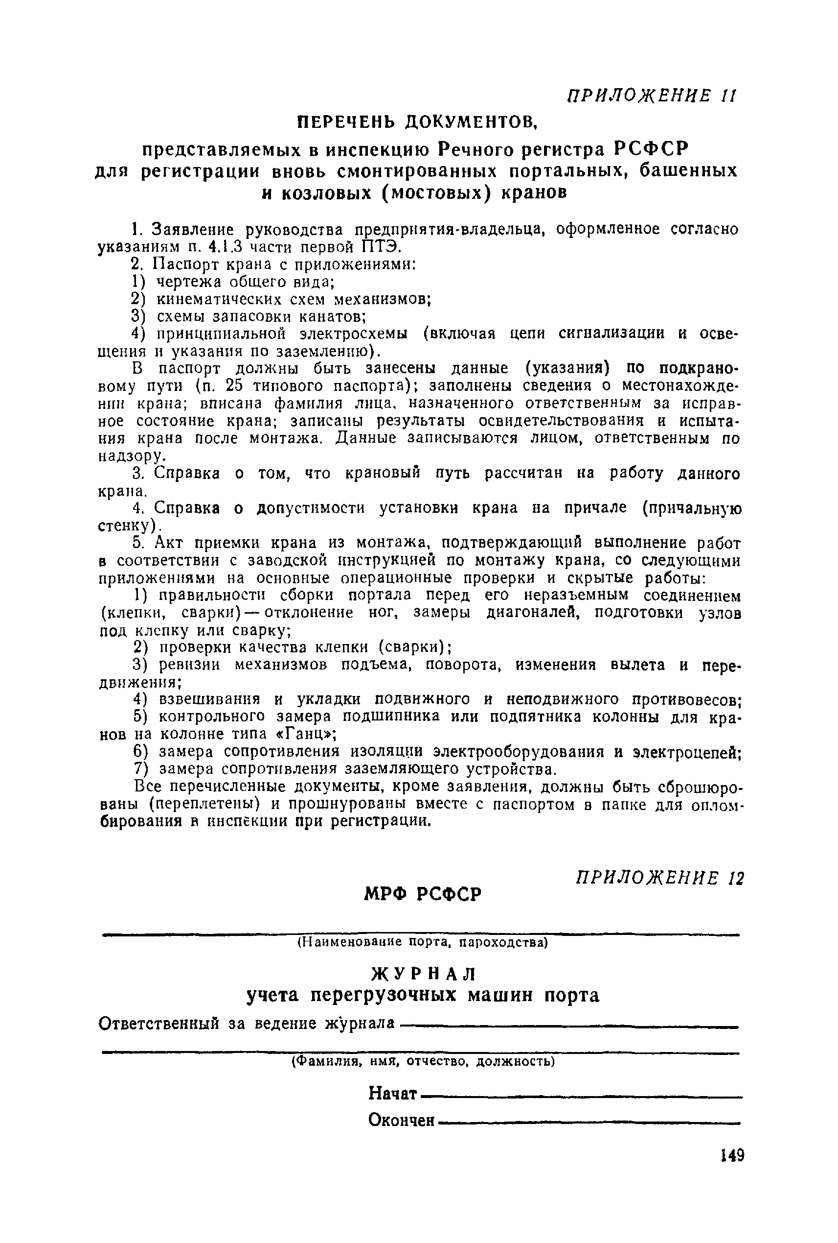 | | Заменяет собой: | - «Правила технической эксплуатации портовых перегрузочных машин»