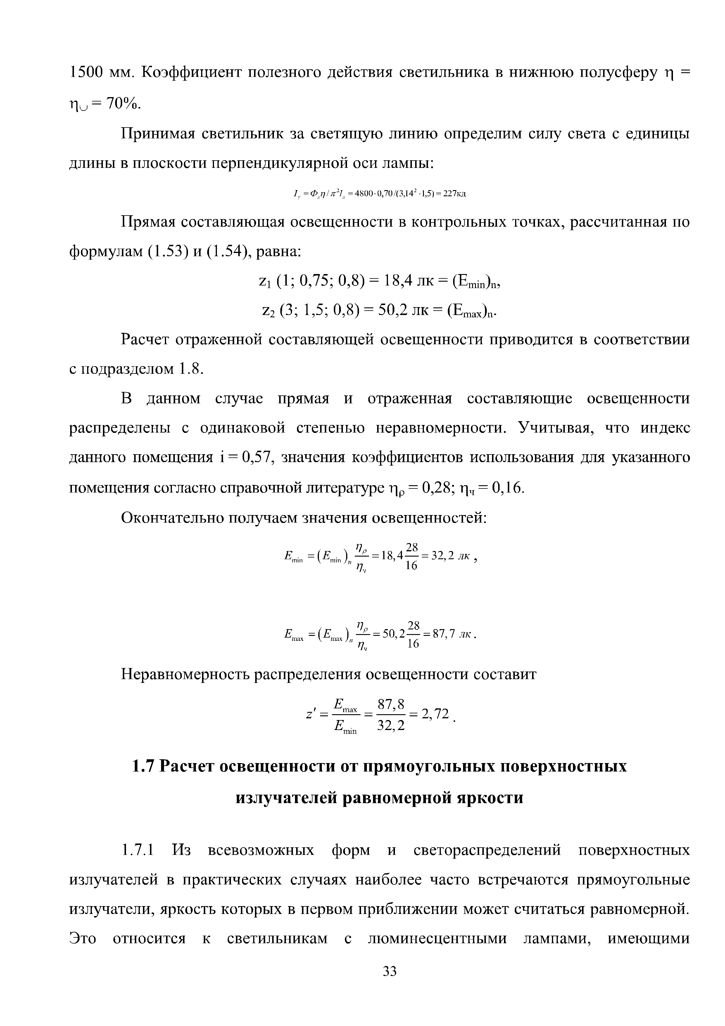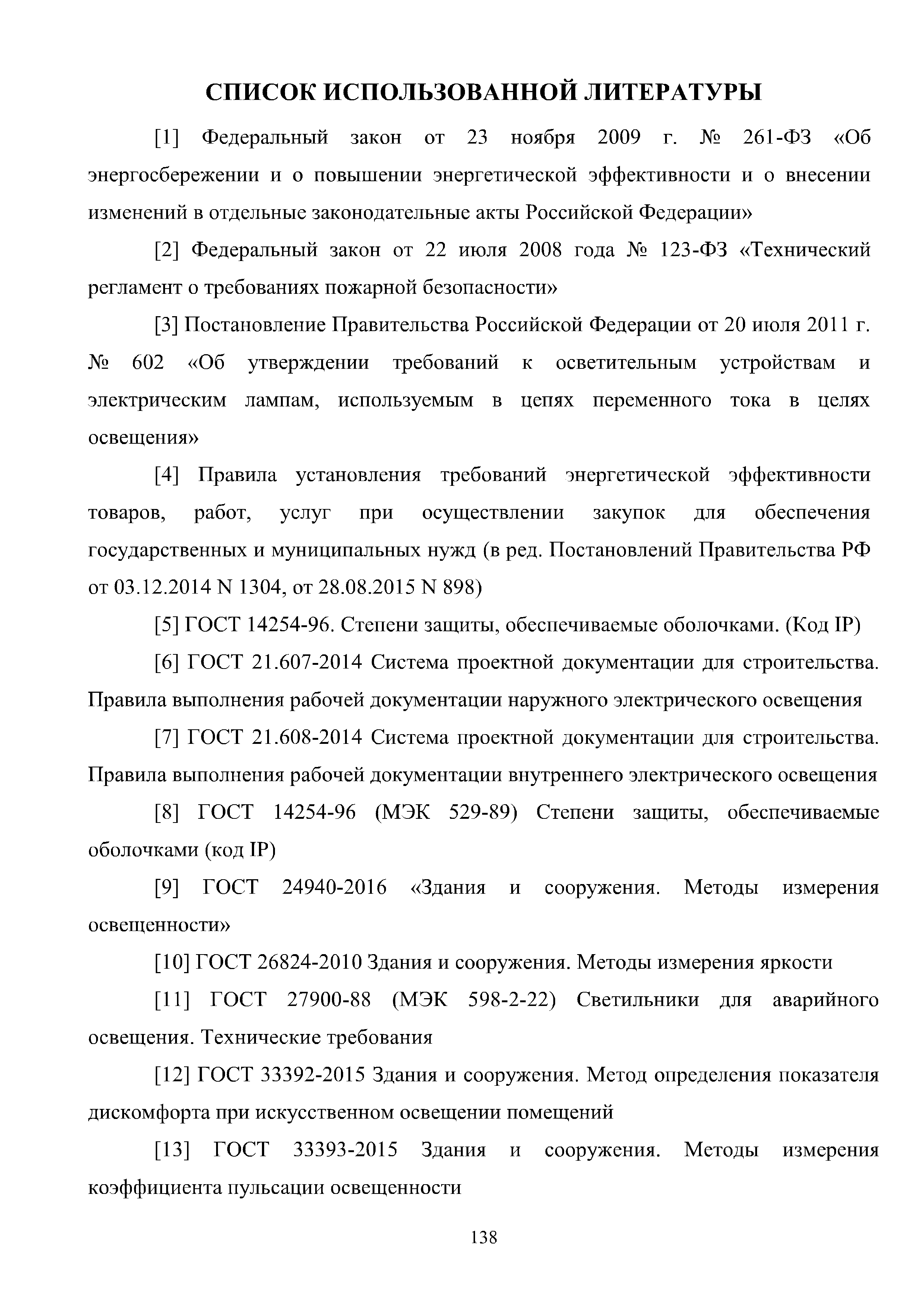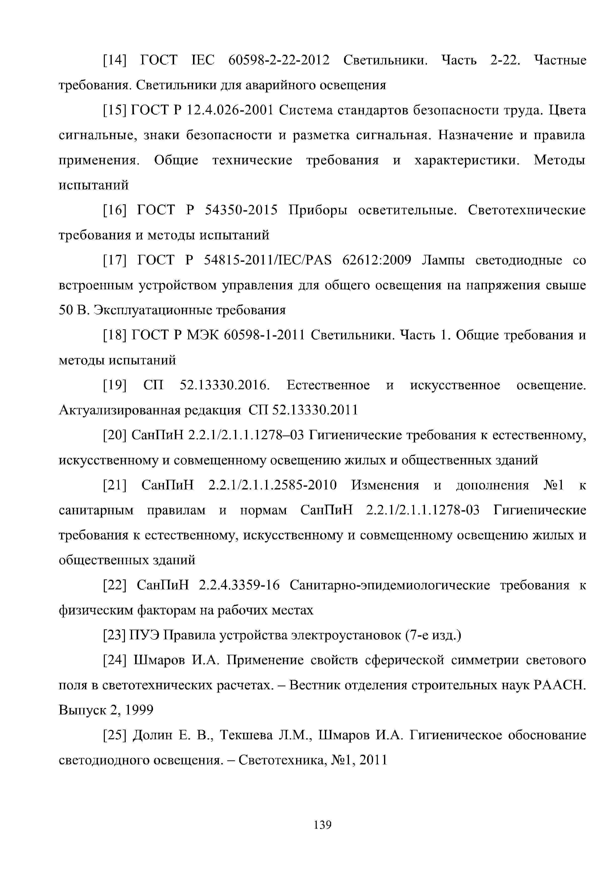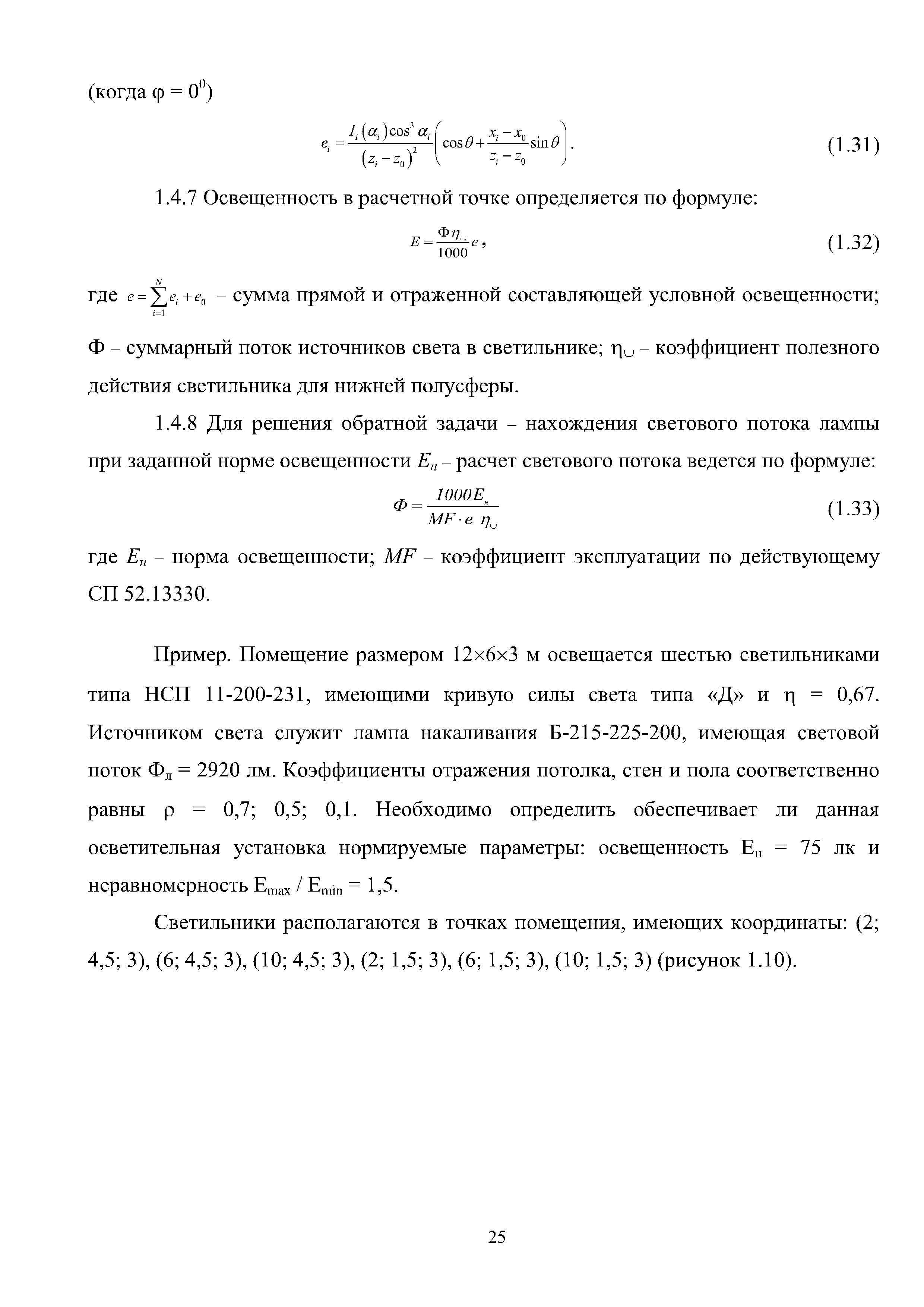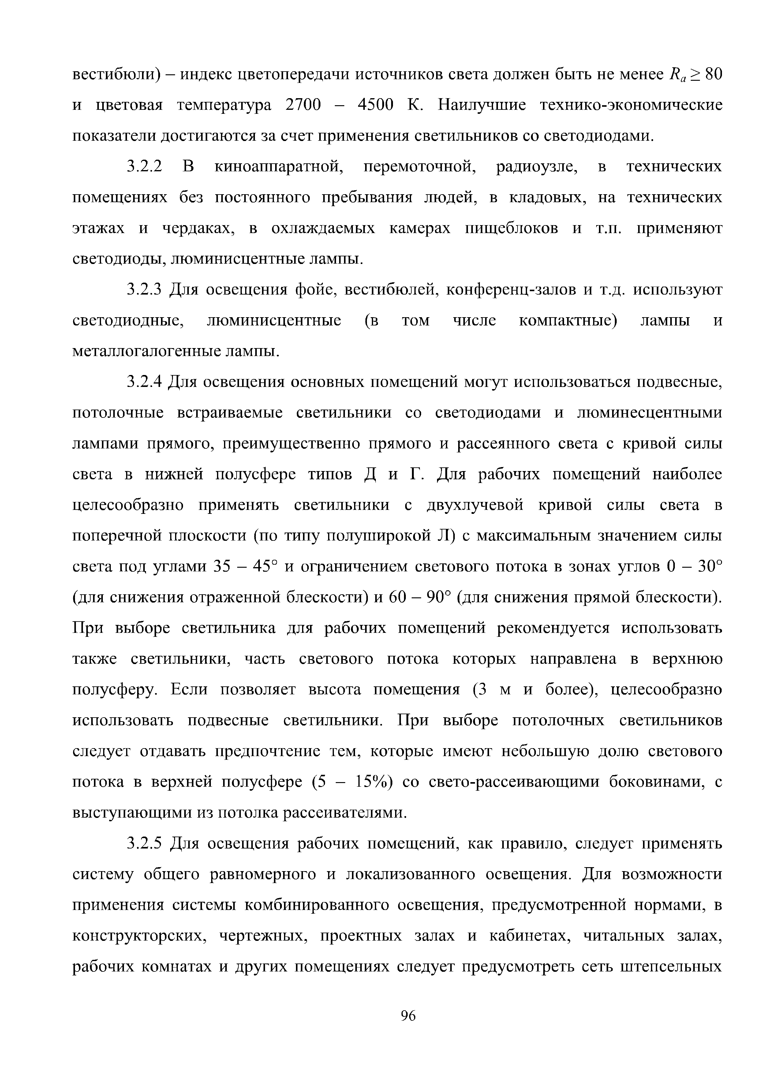 | Оглавление: | Введение 1 Расчет искусственного освещения помещений общественных и жилых зданий 1.1 Выбор источника света 1.2 Выбор метода расчета 1.3 Светотехнические характеристики светильников. Кривые силы света и фотометрические файлы 1.4 Расчет прямой составляющей освещенности точечным методом. Расчет освещенности от точечного излучателя с симметричным светораспределением 1.5 Расчет освещенности от точечного излучателя с несимметричным светораспределением 1.6 Расчет освещенности от линейных излучателей 1.7 Расчет освещенности от прямоугольных поверхностных излучателей равномерной яркости 1.8 Учет отраженной составляющей освещенности 1.9 Расчет средней освещенности методом коэффициента использования светового потока 1.10 Расчет средней освещенности методом удельной мощности 2 Инженерные методы расчета качественных показателей искусственного светового потока 2.1 Ограничение слепящего действия искусственного освещения в помещениях 2.2 Коэффициент пульсации освещенности в помещении 2.3 Цилиндрическая освещенность 3 Искусственное освещение общественных и жилых помещений 3.1 Общие положения 3.2 Освещение административных помещений 3.3 Освещение помещений дошкольных образовательных учреждений 3.4 Освещение помещений общеобразовательных школ и высших учебных заведений 3.5 Освещение помещений лечебно-профилактических учреждений 3.6 Освещение помещений предприятий торговли 3.7 Освещение помещений предприятий общественного питания 3.8 Освещение помещений предприятий бытового обслуживания 3.9 Освещение гостиничных помещений 4 Искусственное освещение помещений жилых зданий Приложение А Основные понятия, термины и определения Приложение Б Пример расчета объединенного показателя дискомфорта Приложение В Программные средства для расчета искусственного освещения помещений жилых и общественных зданий Список использованной литературы Заключение |
