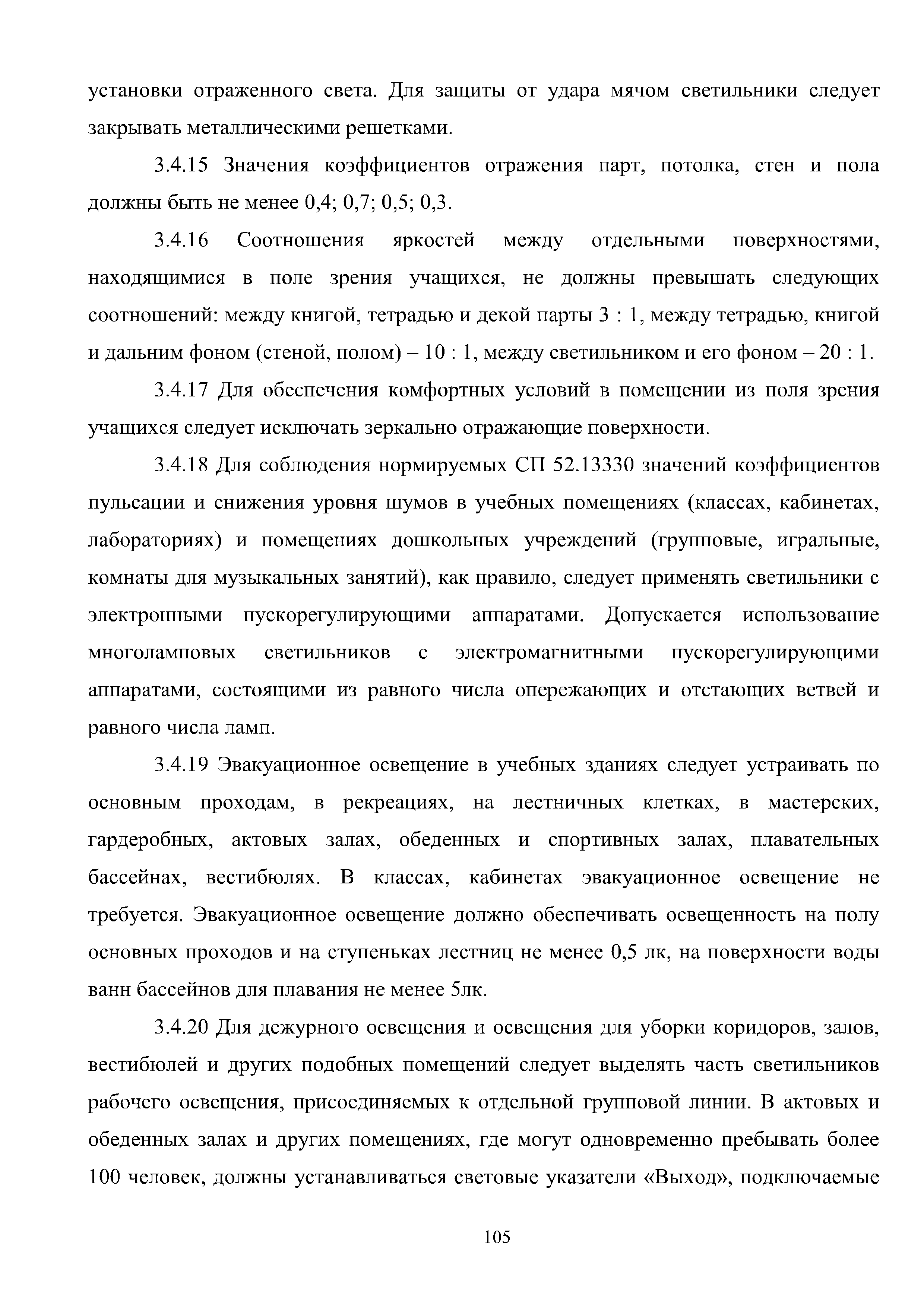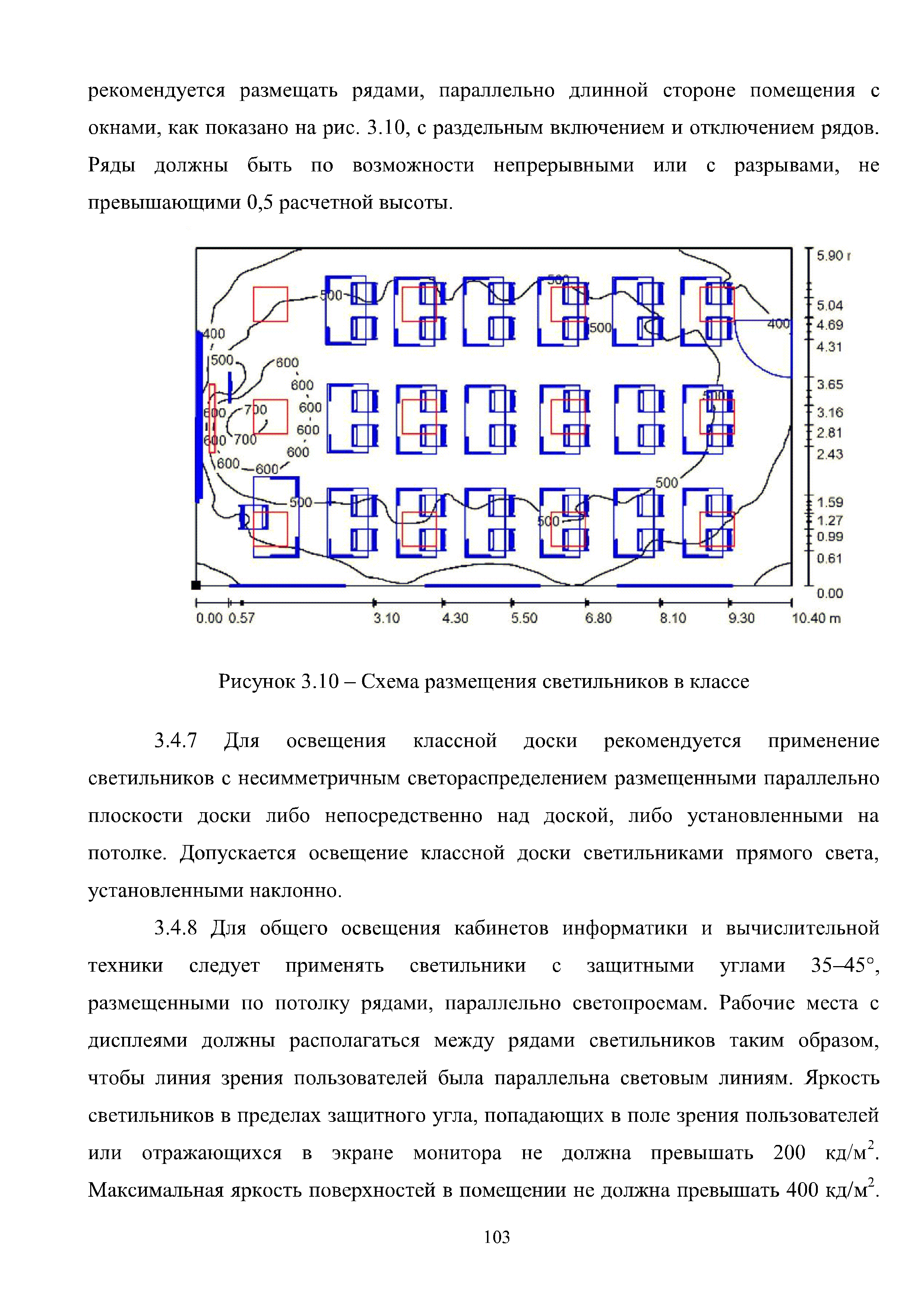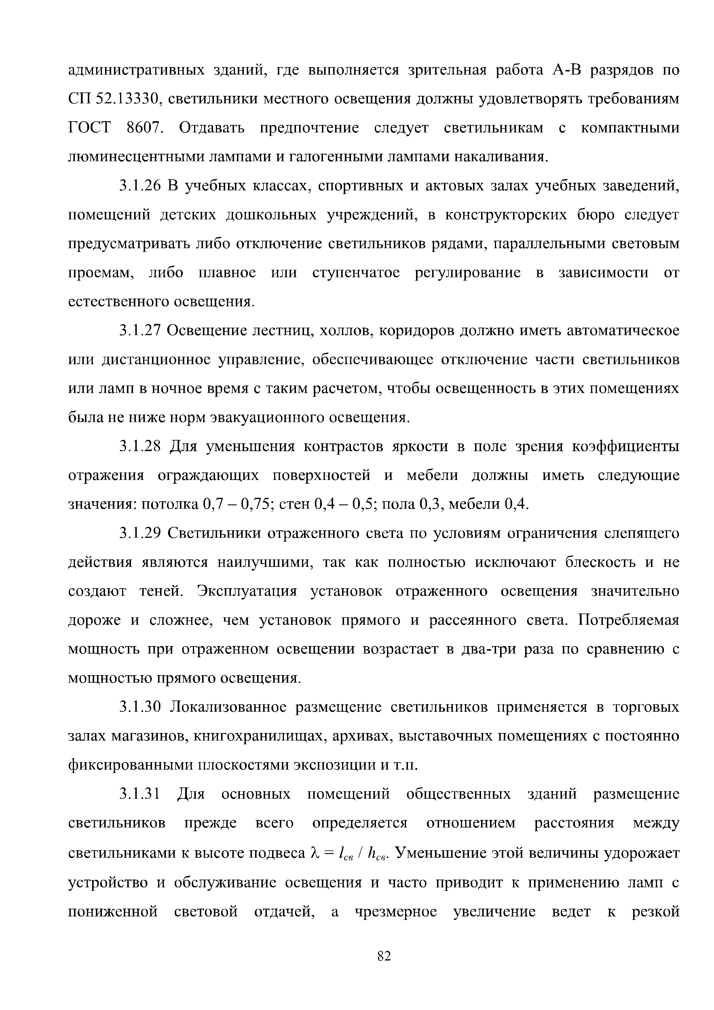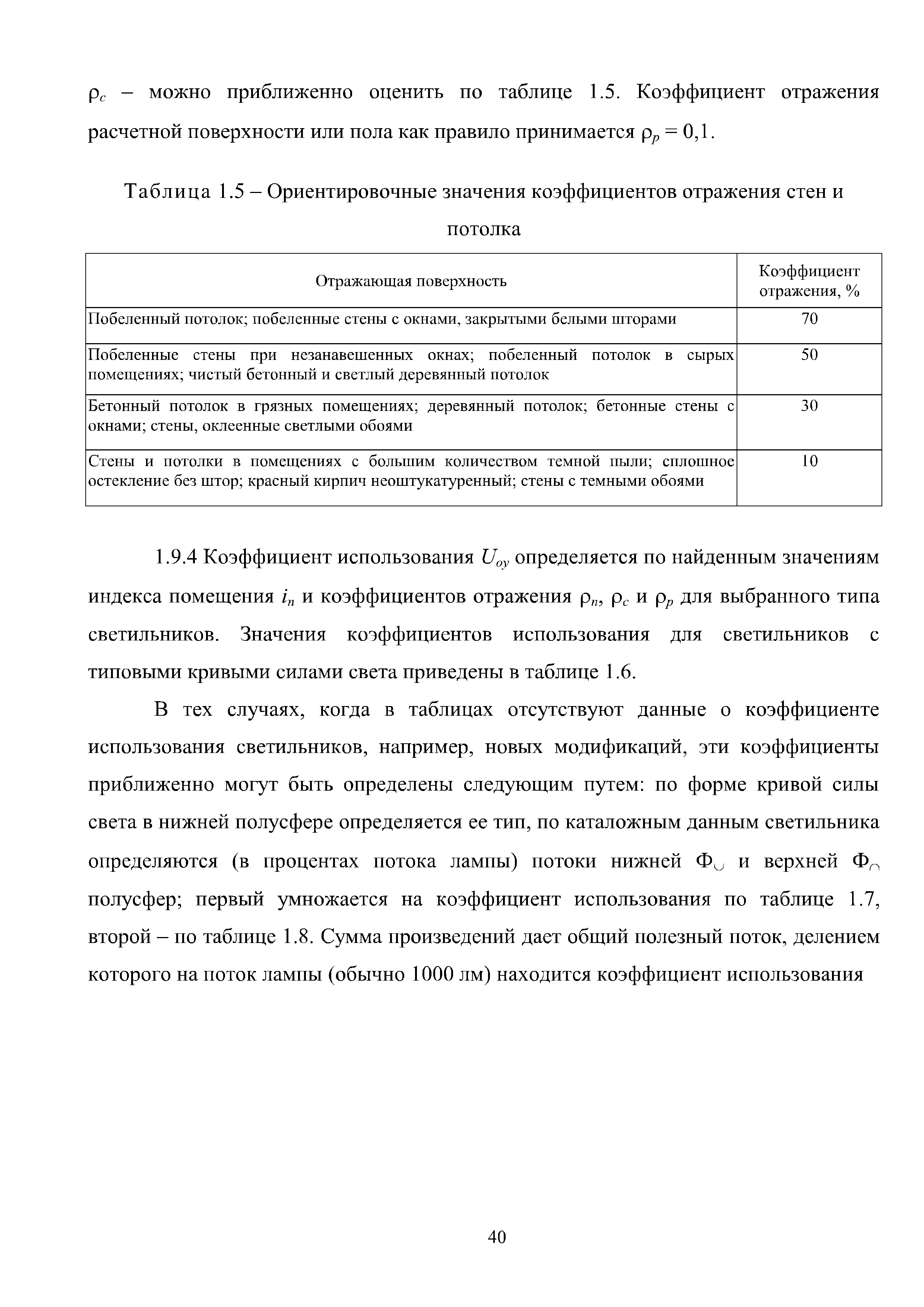 | Оглавление: | Введение 1 Расчет искусственного освещения помещений общественных и жилых зданий 1.1 Выбор источника света 1.2 Выбор метода расчета 1.3 Светотехнические характеристики светильников. Кривые силы света и фотометрические файлы 1.4 Расчет прямой составляющей освещенности точечным методом. Расчет освещенности от точечного излучателя с симметричным светораспределением 1.5 Расчет освещенности от точечного излучателя с несимметричным светораспределением 1.6 Расчет освещенности от линейных излучателей 1.7 Расчет освещенности от прямоугольных поверхностных излучателей равномерной яркости 1.8 Учет отраженной составляющей освещенности 1.9 Расчет средней освещенности методом коэффициента использования светового потока 1.10 Расчет средней освещенности методом удельной мощности 2 Инженерные методы расчета качественных показателей искусственного светового потока 2.1 Ограничение слепящего действия искусственного освещения в помещениях 2.2 Коэффициент пульсации освещенности в помещении 2.3 Цилиндрическая освещенность 3 Искусственное освещение общественных и жилых помещений 3.1 Общие положения 3.2 Освещение административных помещений 3.3 Освещение помещений дошкольных образовательных учреждений 3.4 Освещение помещений общеобразовательных школ и высших учебных заведений 3.5 Освещение помещений лечебно-профилактических учреждений 3.6 Освещение помещений предприятий торговли 3.7 Освещение помещений предприятий общественного питания 3.8 Освещение помещений предприятий бытового обслуживания 3.9 Освещение гостиничных помещений 4 Искусственное освещение помещений жилых зданий Приложение А Основные понятия, термины и определения Приложение Б Пример расчета объединенного показателя дискомфорта Приложение В Программные средства для расчета искусственного освещения помещений жилых и общественных зданий Список использованной литературы Заключение |