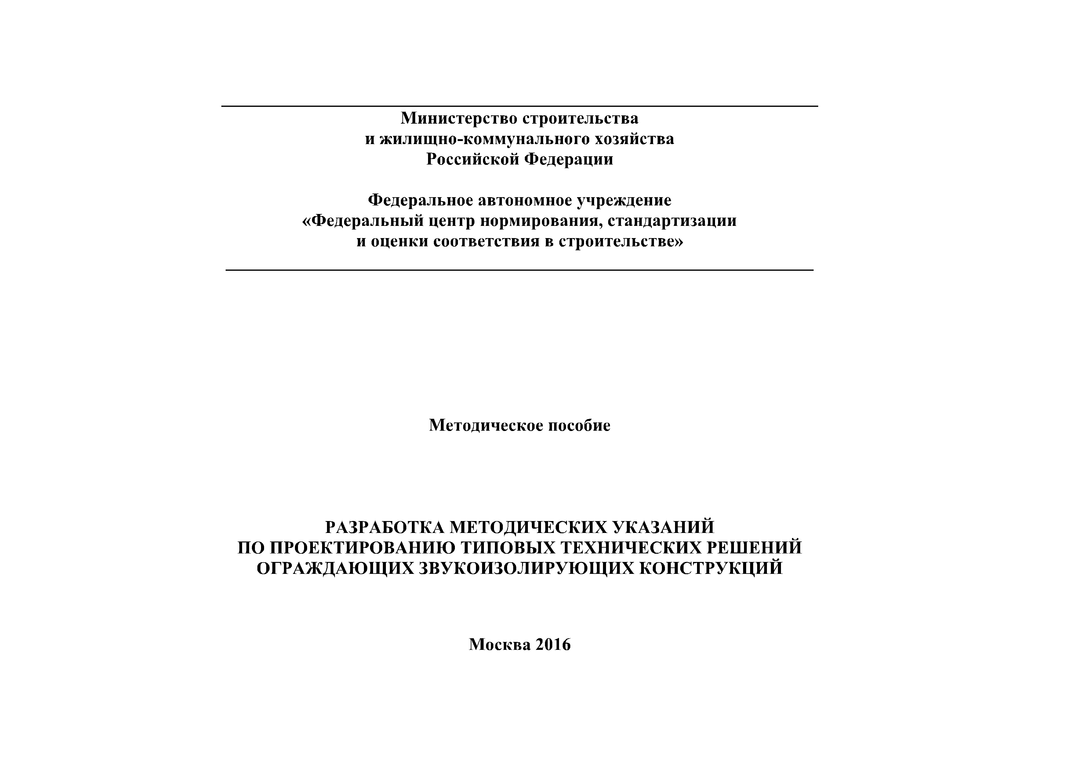 | Название рус.: | Методическое пособие. Разработка методических указаний по проектированию типовых технических решений ограждающих звукоизолирующих конструкций |
