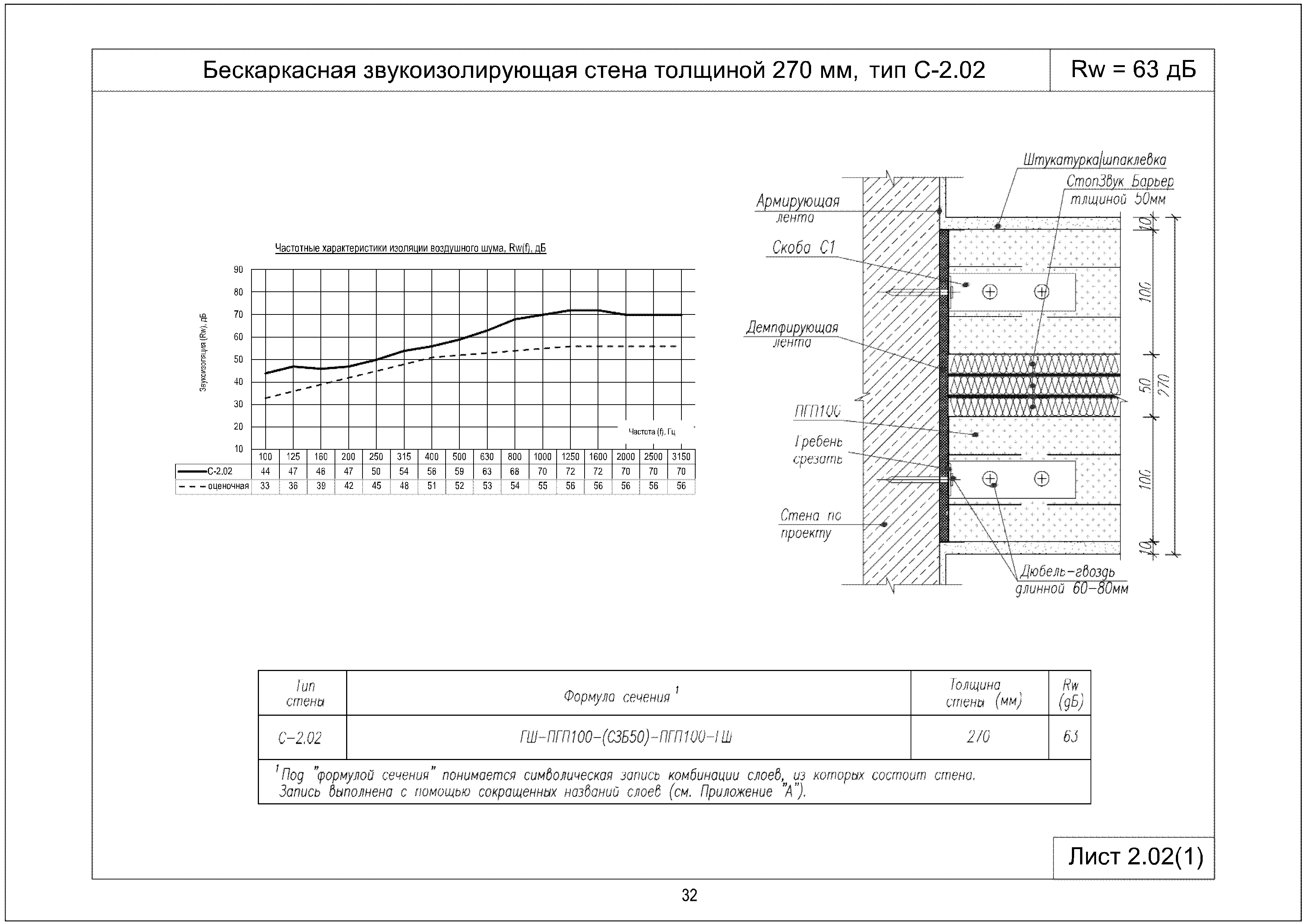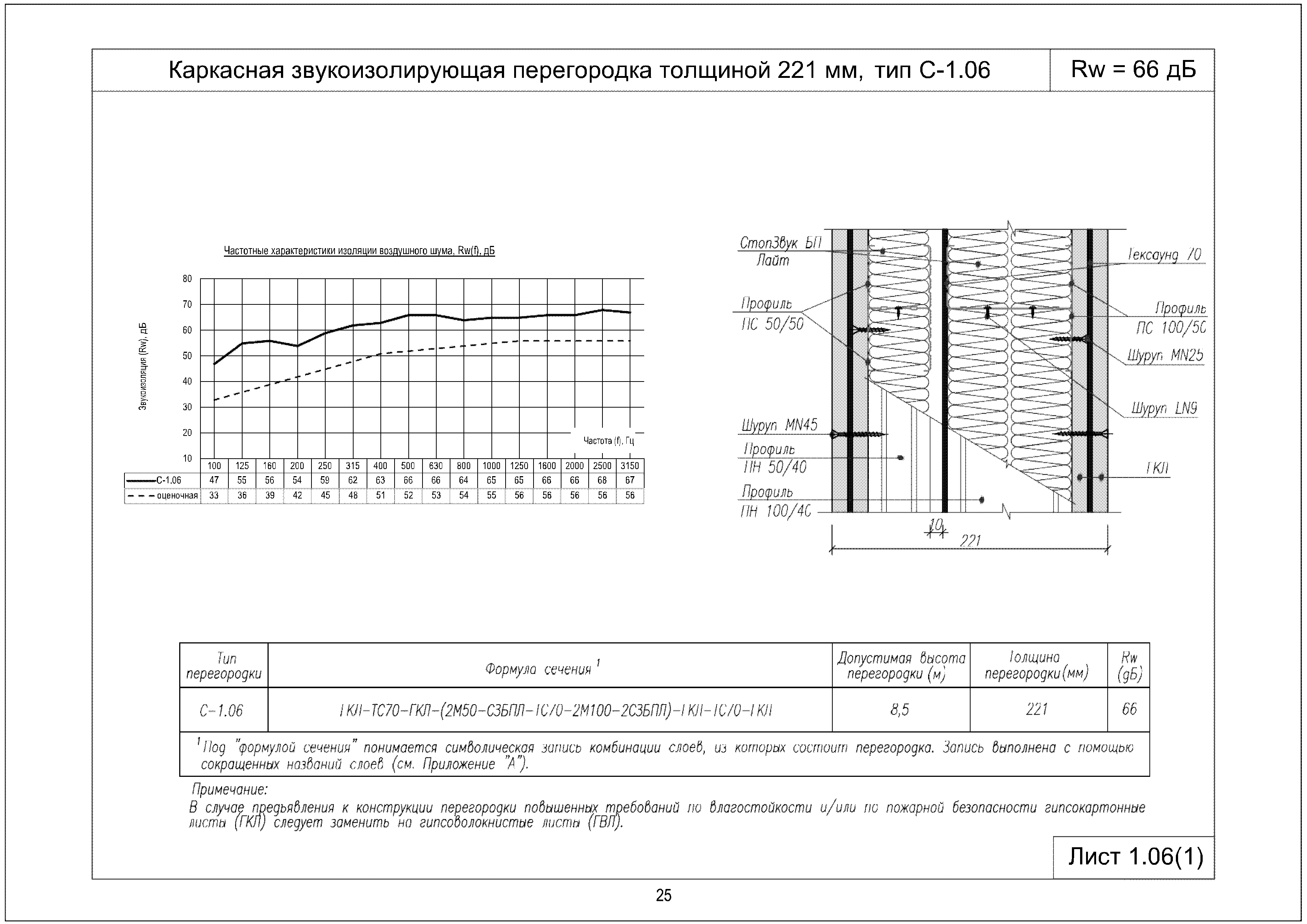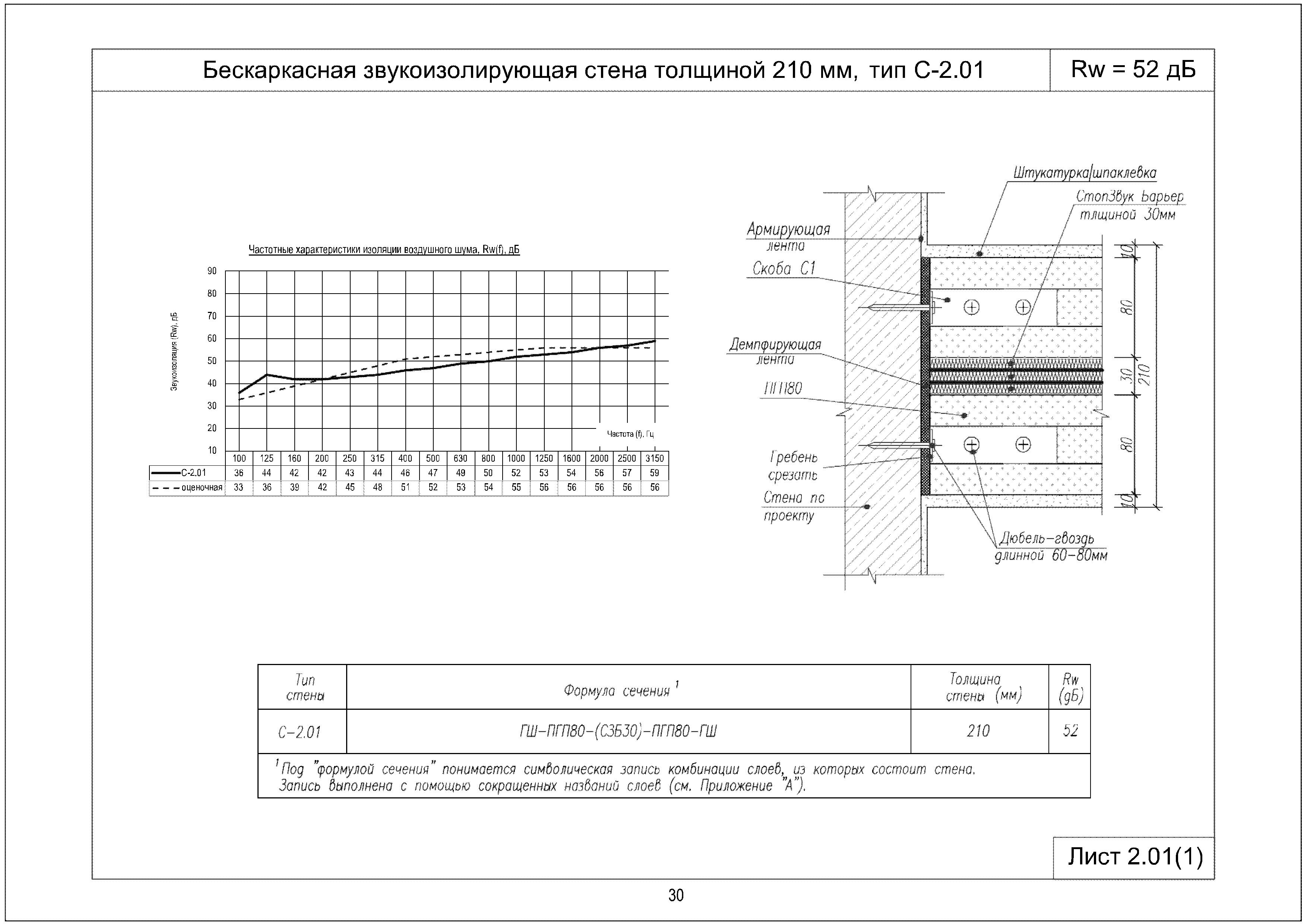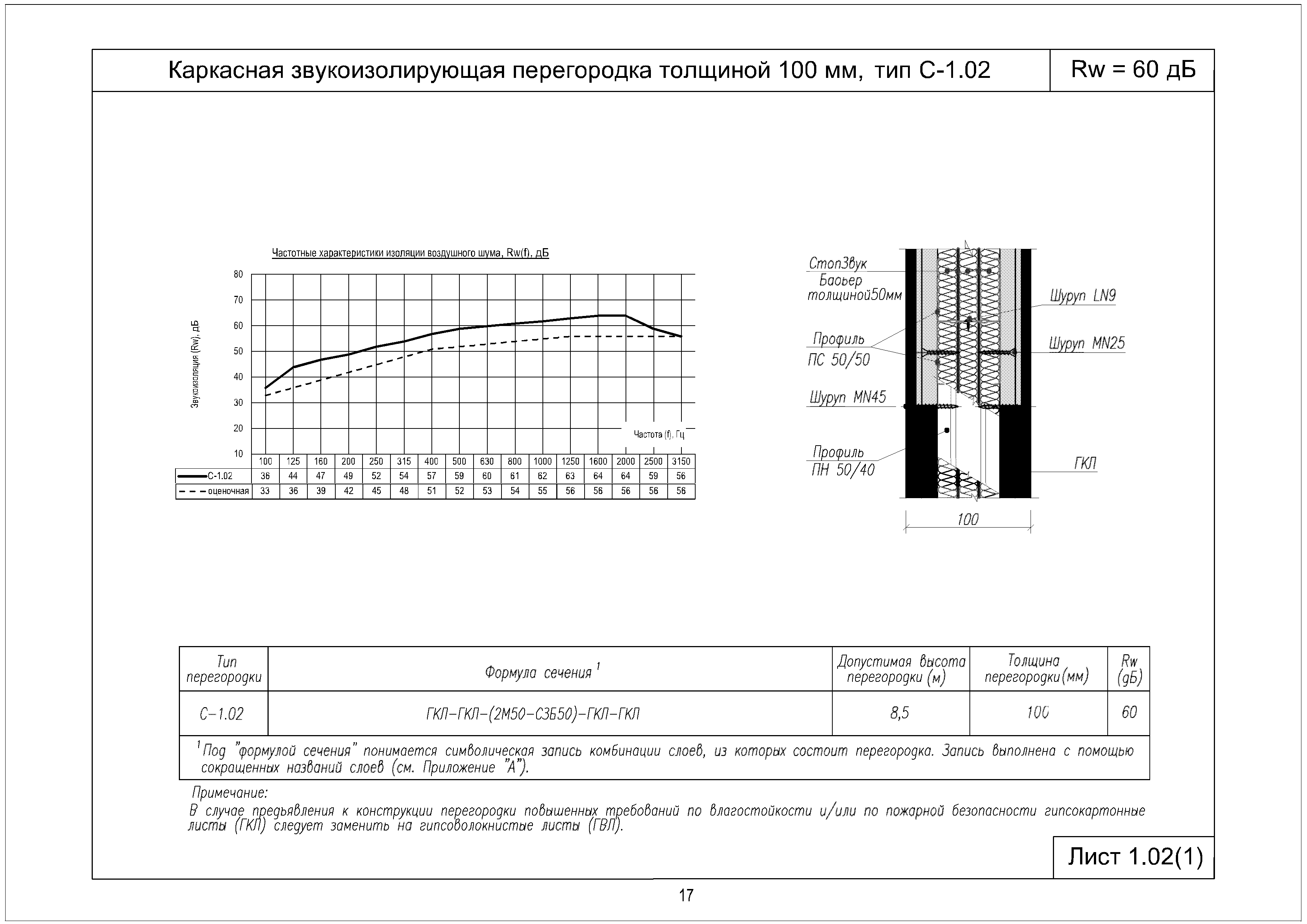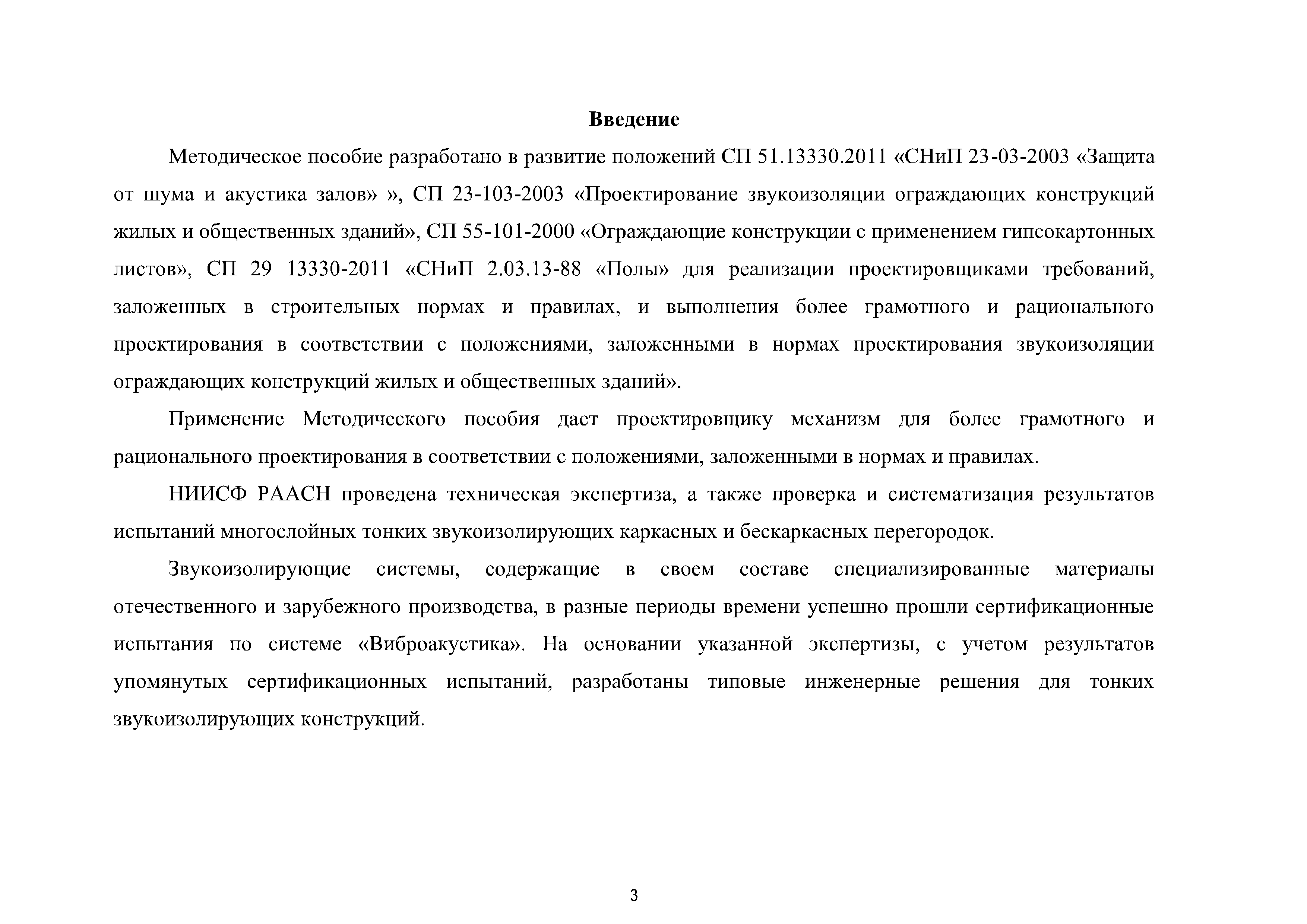 | Оглавление: | Введение Область применения Раздел 1. Общие положения. Нормативы и методики Общие положения Нормативы и методики Перечень схем ограждающих конструкций и помещений для возможного применения Раздел 2. Звукоизолирующие каркасные перегородки Перегородки на одинарном каркасе Перегородки на двойном каркасе Перегородки на специальном каркасе Раздел 3. Бескаркасные перегородки и межквартирные стены Звукоизолирующие межквартирные стены с облицовкой Звукоизолирующие перегородки и межквартирные стены без облицовки Раздел 4. Звукоизолирующие обшивки стен Раздел 5. Звукоизолирующие обшивки потолков Раздел 6. Звукоизолирующие конструкции полов Приложение А. Перечень акустических материалов и конструктивных элементов Приложение Б. Нормативные данные (выписка из СП 51.13330.2011 "СНиП 23-03-2003 "Защита от шума") Приложение В. Методика расчета звукоизоляции внутренних ограждающих конструкций жилых и общественных зданий |