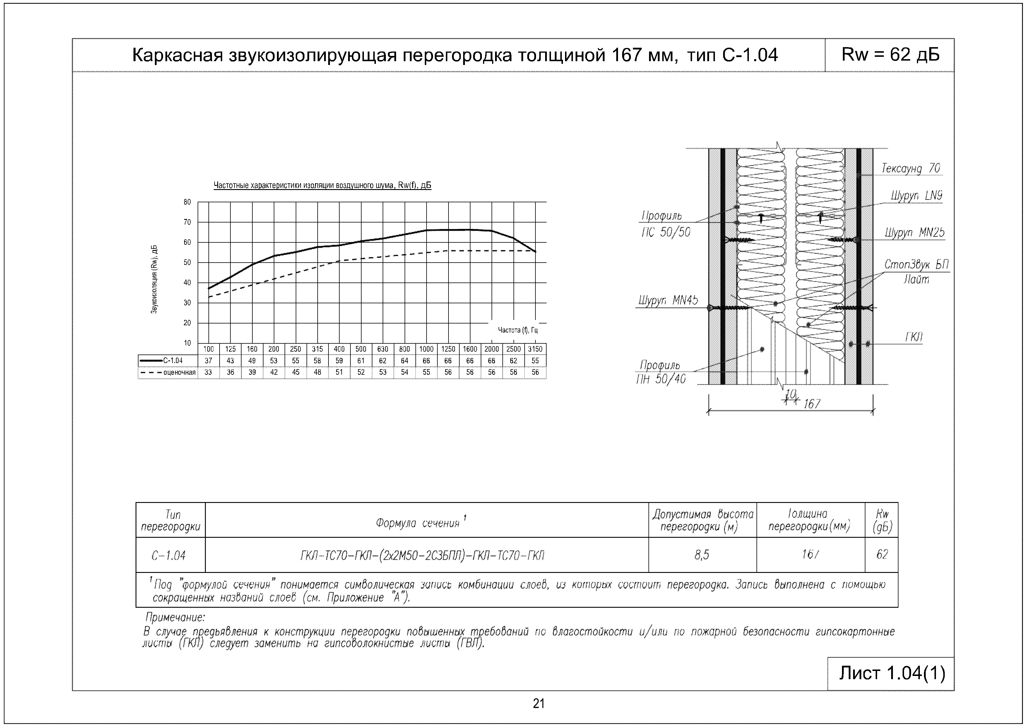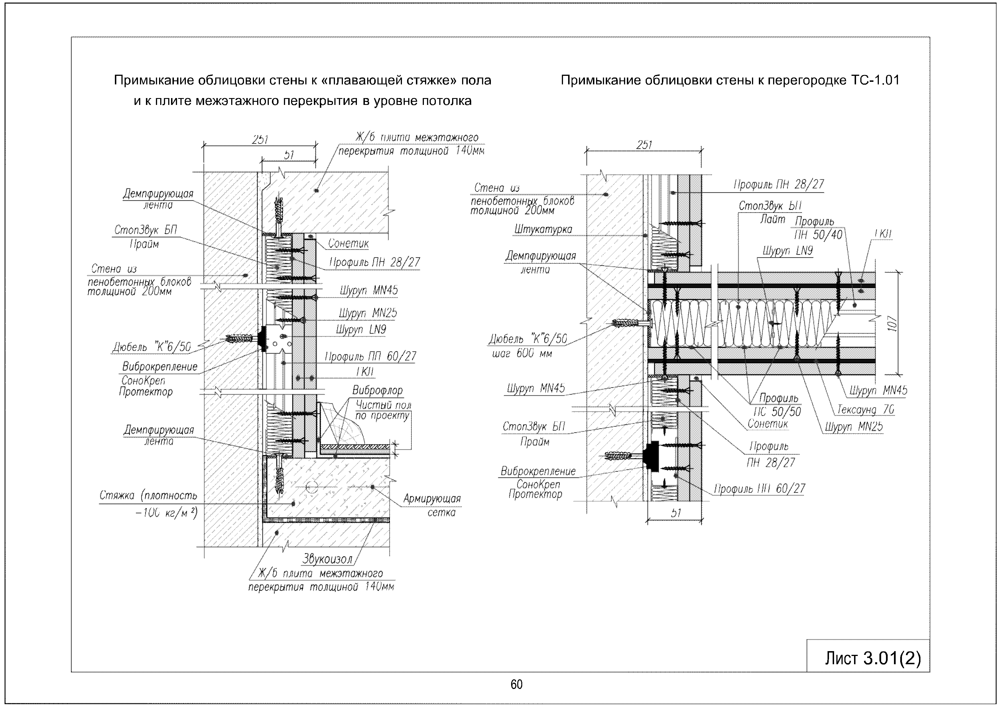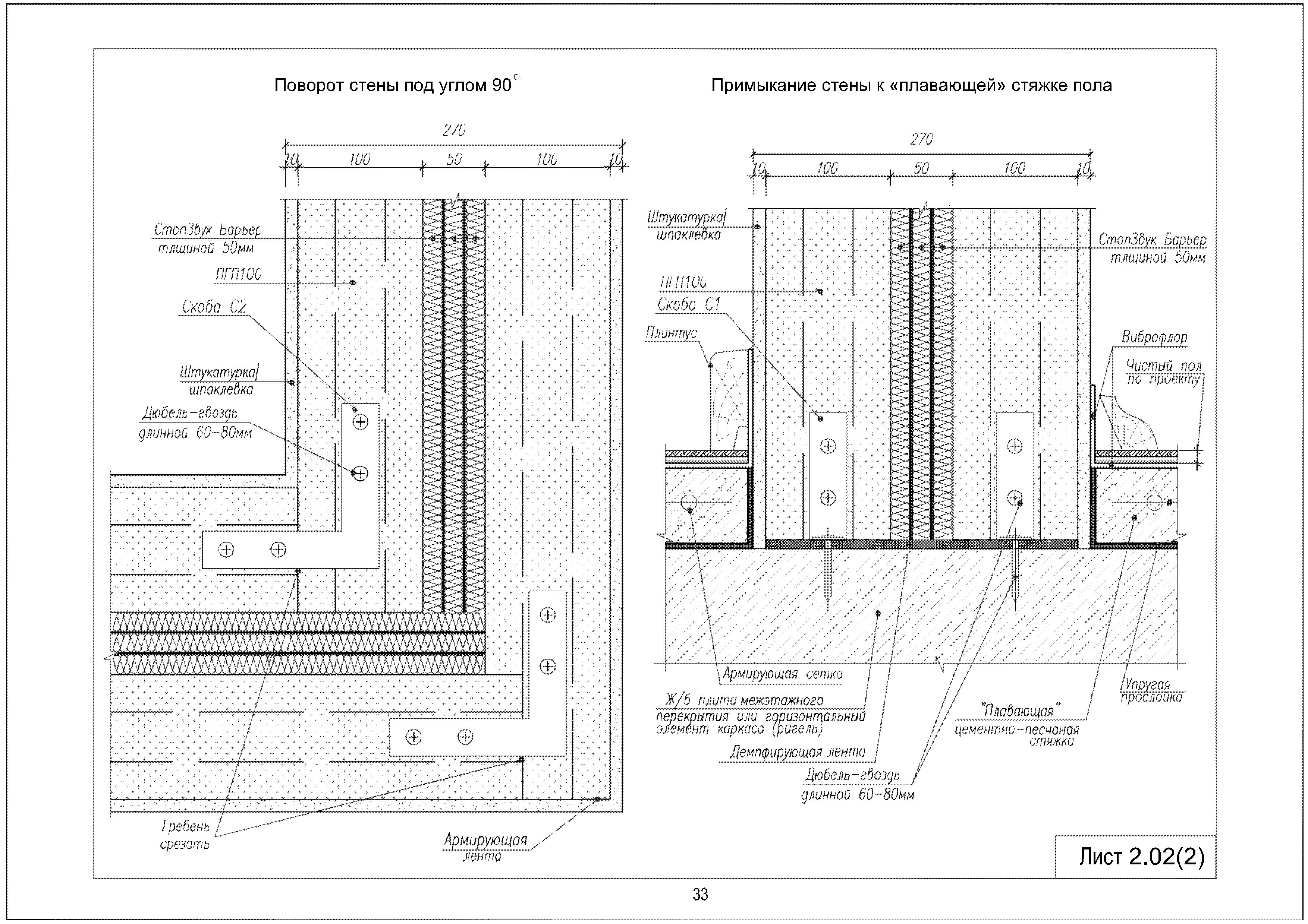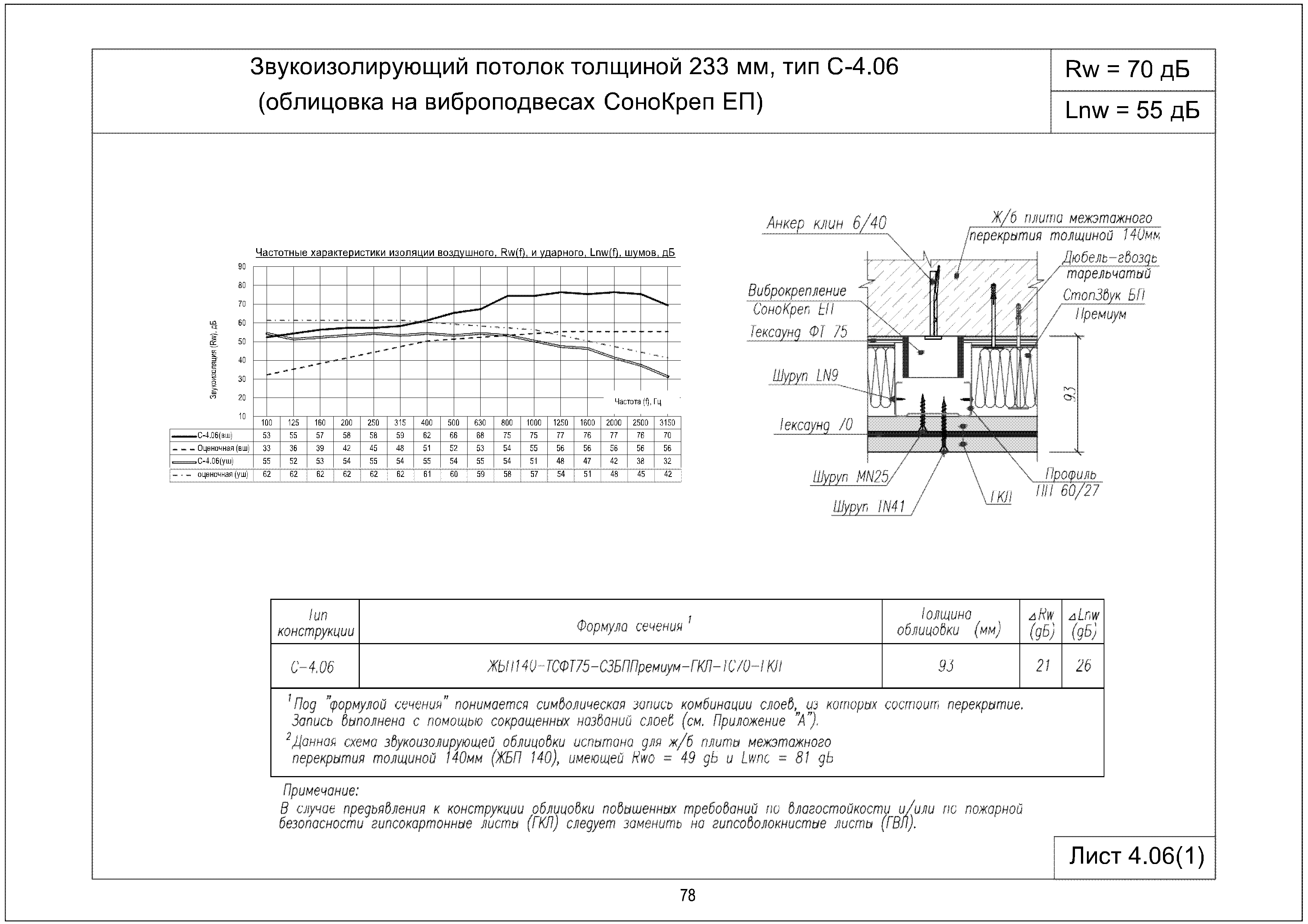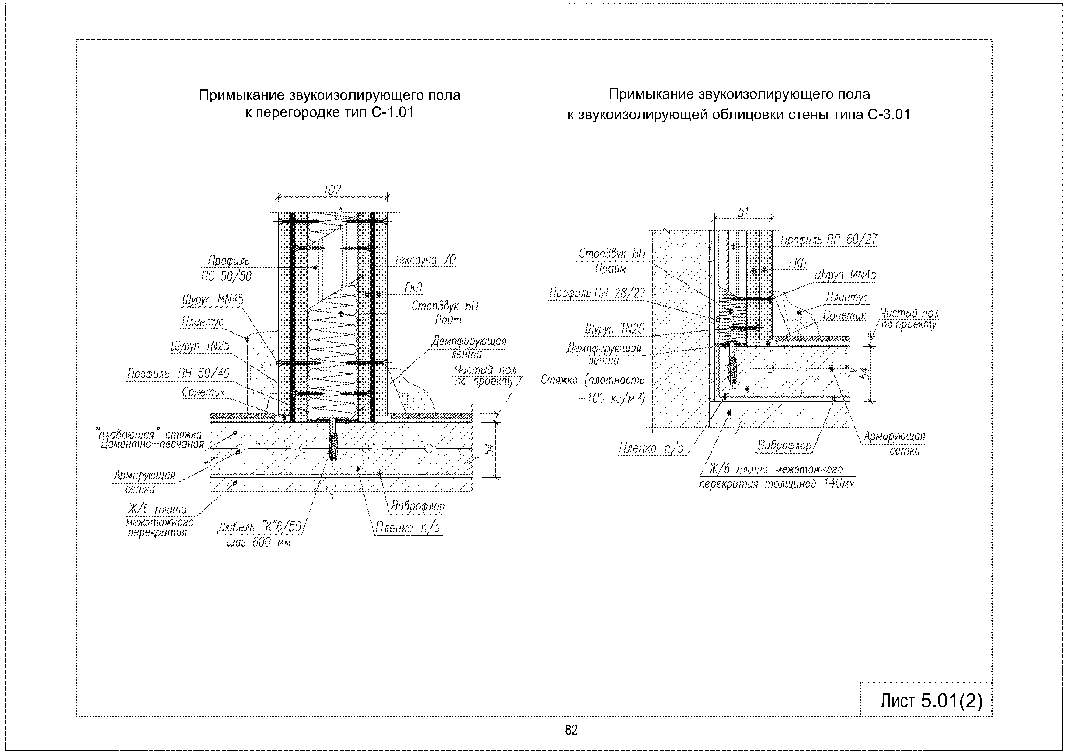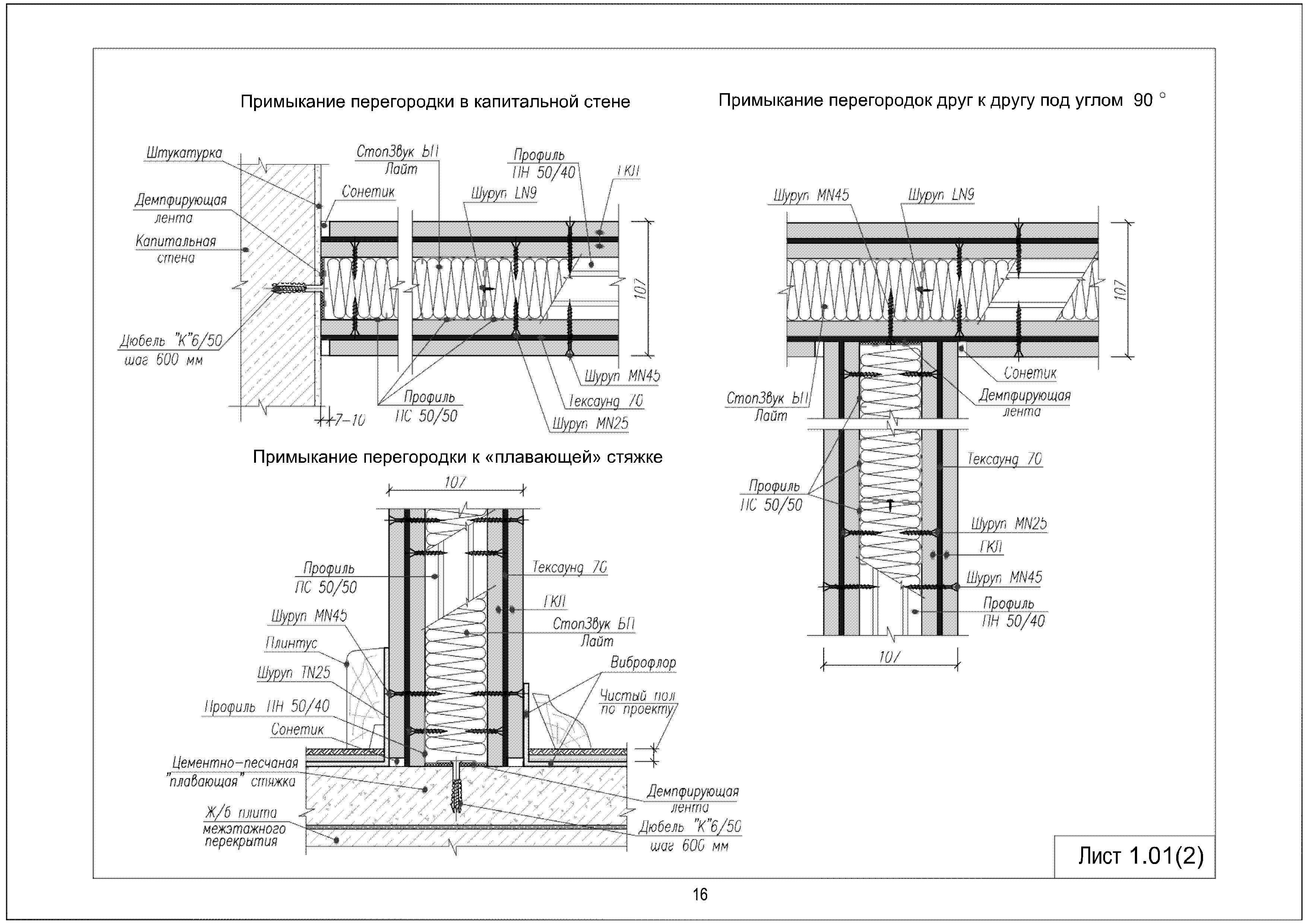 | Оглавление: | Введение Область применения Раздел 1. Общие положения. Нормативы и методики Общие положения Нормативы и методики Перечень схем ограждающих конструкций и помещений для возможного применения Раздел 2. Звукоизолирующие каркасные перегородки Перегородки на одинарном каркасе Перегородки на двойном каркасе Перегородки на специальном каркасе Раздел 3. Бескаркасные перегородки и межквартирные стены Звукоизолирующие межквартирные стены с облицовкой Звукоизолирующие перегородки и межквартирные стены без облицовки Раздел 4. Звукоизолирующие обшивки стен Раздел 5. Звукоизолирующие обшивки потолков Раздел 6. Звукоизолирующие конструкции полов Приложение А. Перечень акустических материалов и конструктивных элементов Приложение Б. Нормативные данные (выписка из СП 51.13330.2011 "СНиП 23-03-2003 "Защита от шума") Приложение В. Методика расчета звукоизоляции внутренних ограждающих конструкций жилых и общественных зданий |