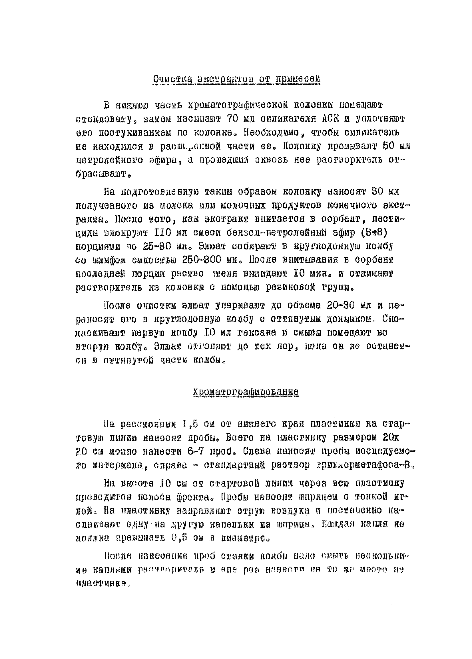 | Оглавление: | Характеристика препарата Принцип метода Реактивы и растворы Приборы и посуда Приготовление пластинок с тонким слоем сорбента Экстракция пестицида и очистка экстрактов Очистка экстрактов от примесей Хроматографирование |