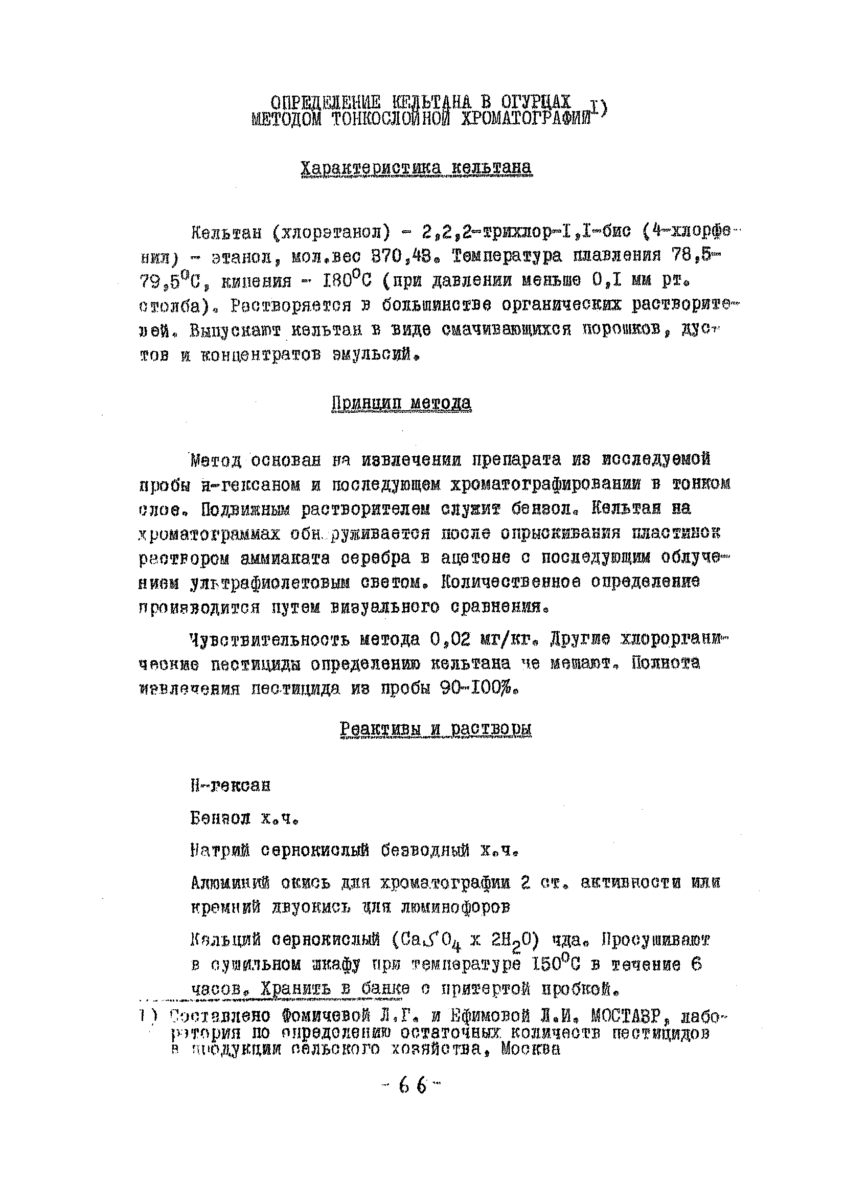 | Название рус.: | Определение кельтана в огурцах методом тонкослойной хроматографии |