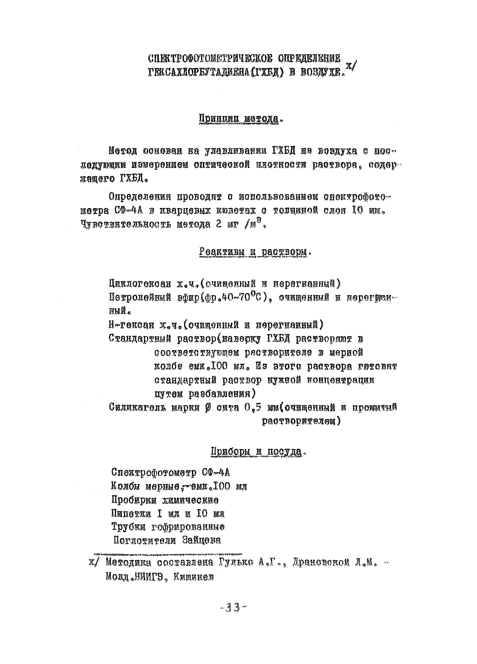 | Название рус.: | Спектрофотометрическое определение гексахлорбутадиена (ГХБД) в воздухе |