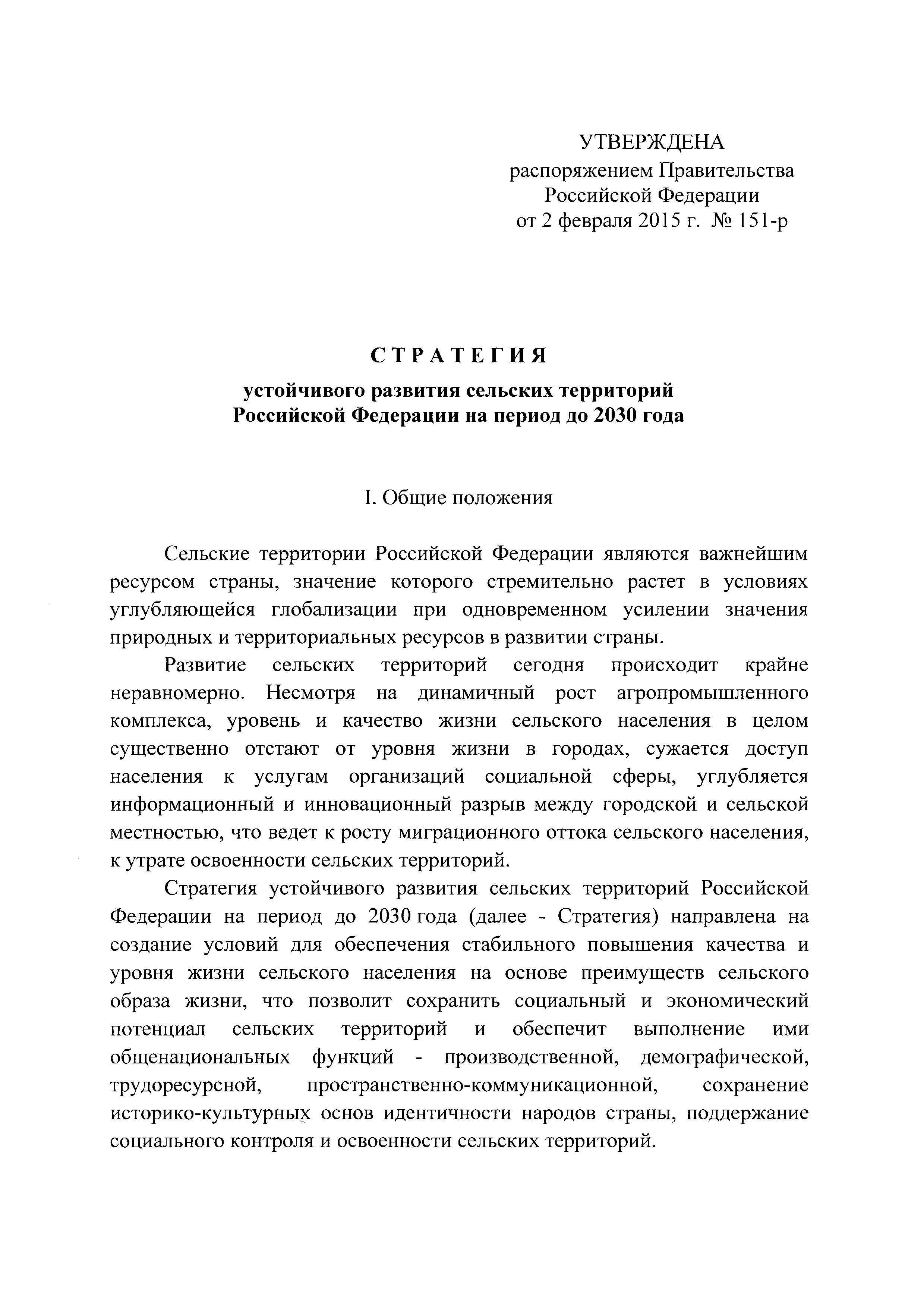 | Название рус.: | Стратегия устойчивого развития сельских территорий Российской Федерации на период до 2030 года |